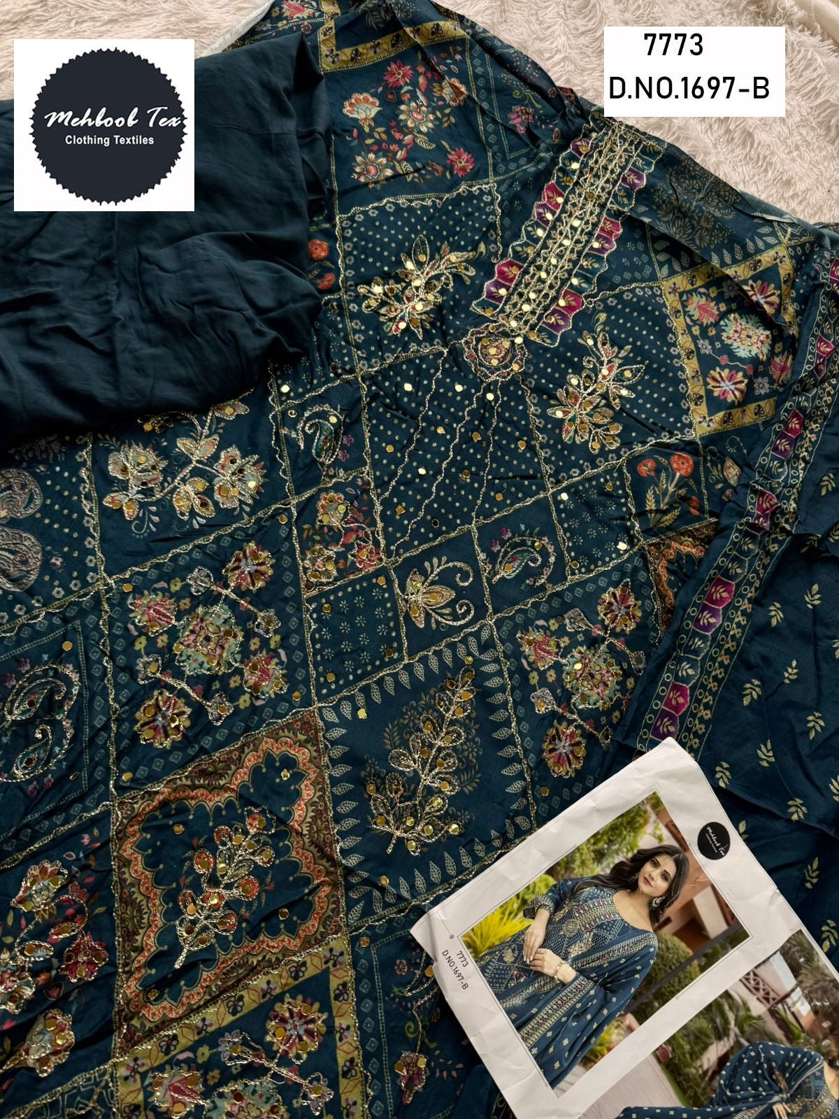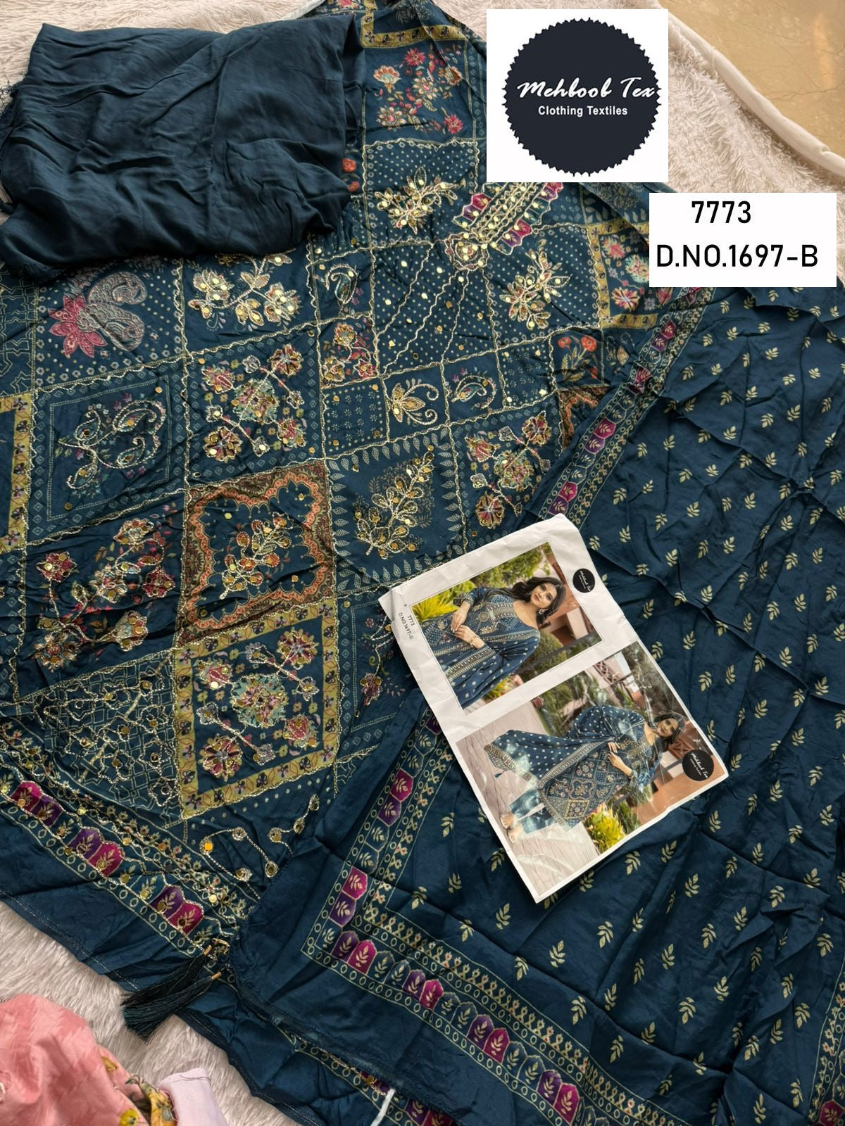 - 1697-B Mehboob Tex Printed Karachi Unstitched Suits Dealer Ahmedabad Surat Wholesale Gujarat India Lowest Price Best Quality Buy Purchase Shipping Kurta Salwaar Kameez Also free Cash on delivery