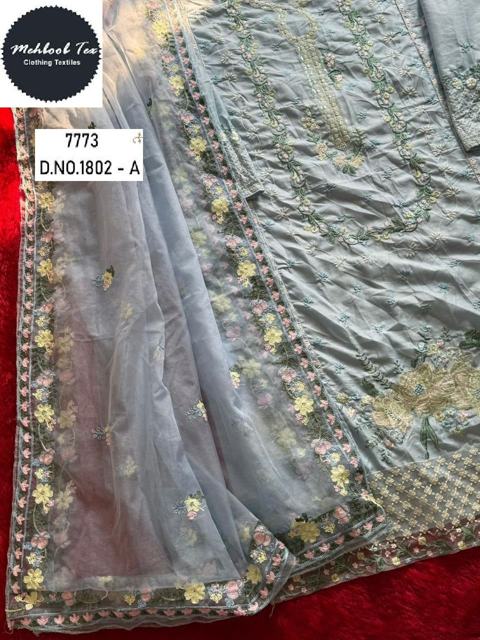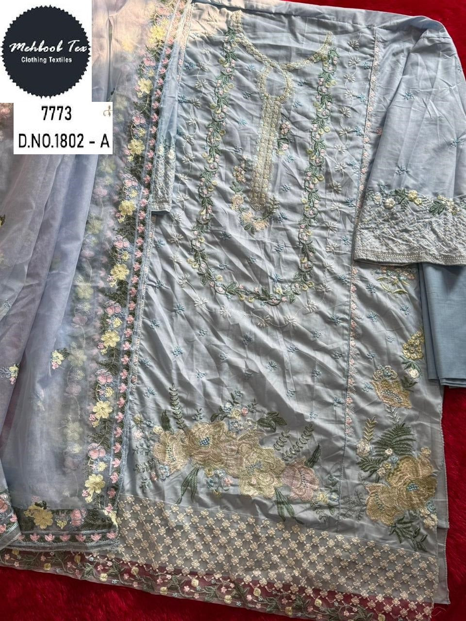 - 1802-A Mehboob Tex Embroidery Pakistani Salwar Suits Dealer Ahmedabad Surat Wholesale Gujarat India Lowest Price Best Quality Buy Purchase Shipping Kurta Salwaar Kameez Also free Cash on delivery