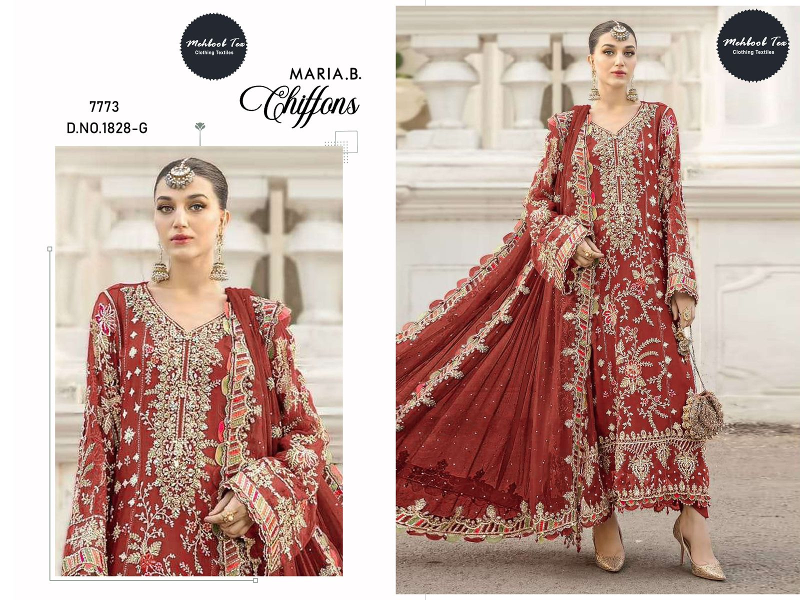1828-G Maria B Chiffons Mehboob Tex Denting Pakistani Salwar Suits