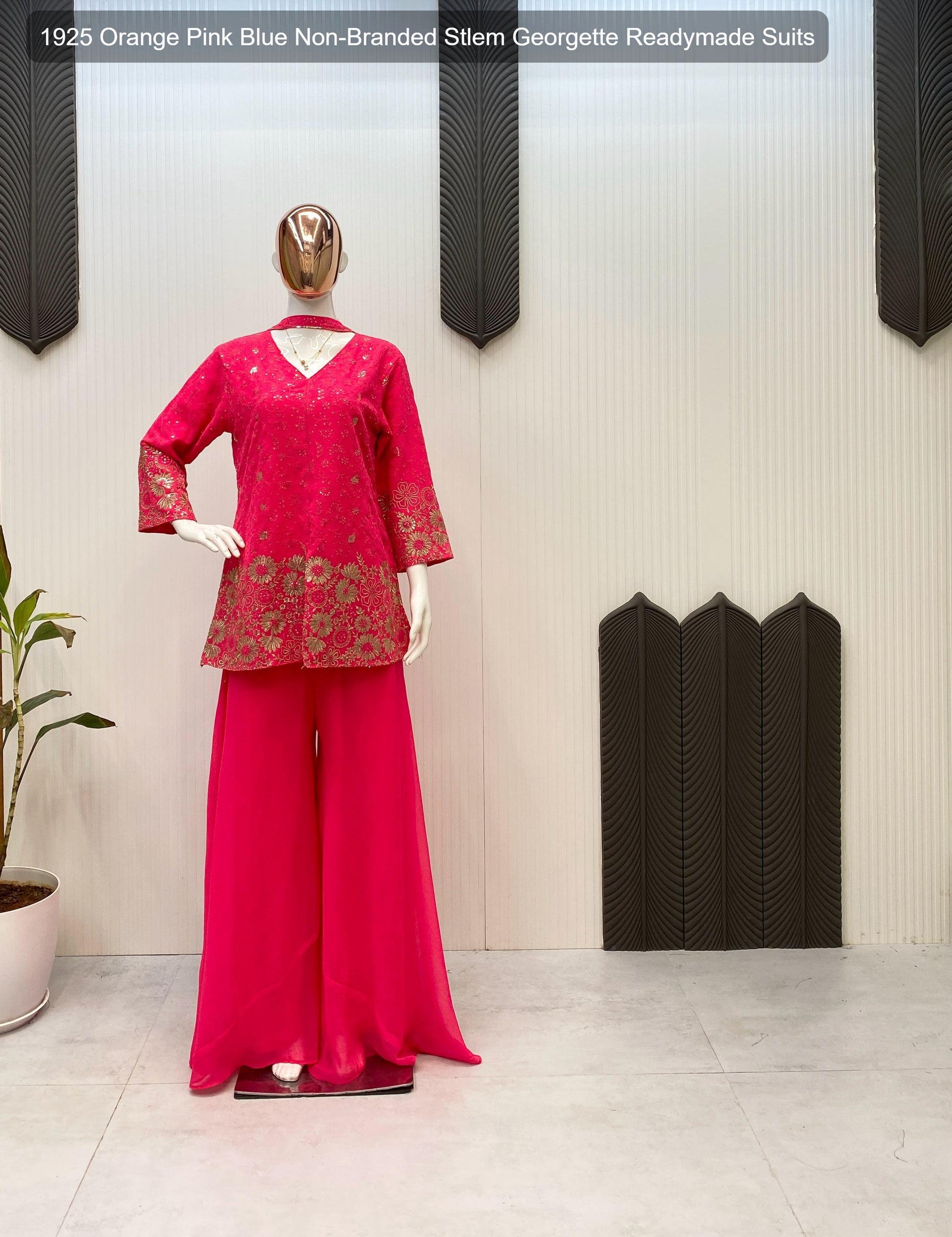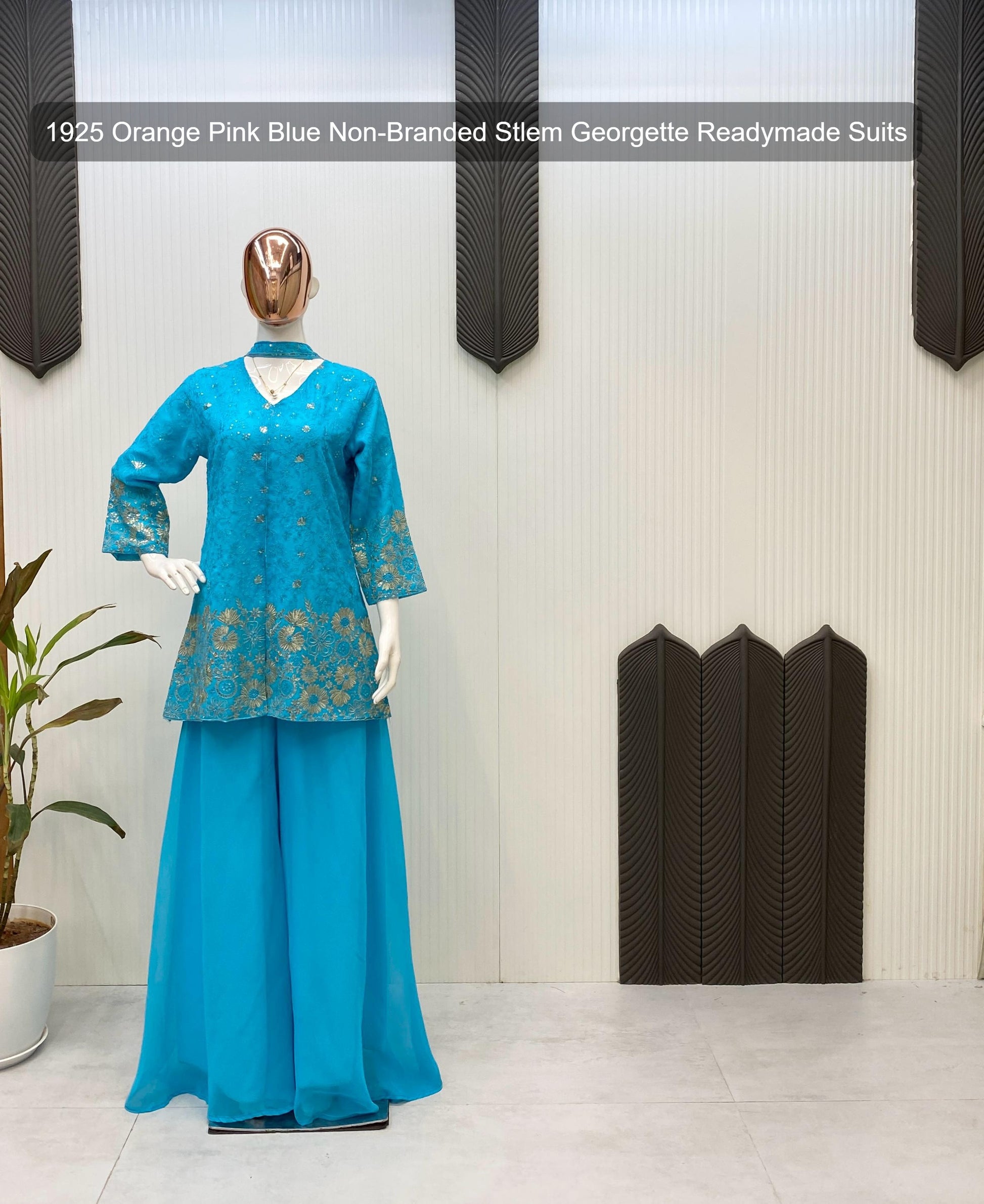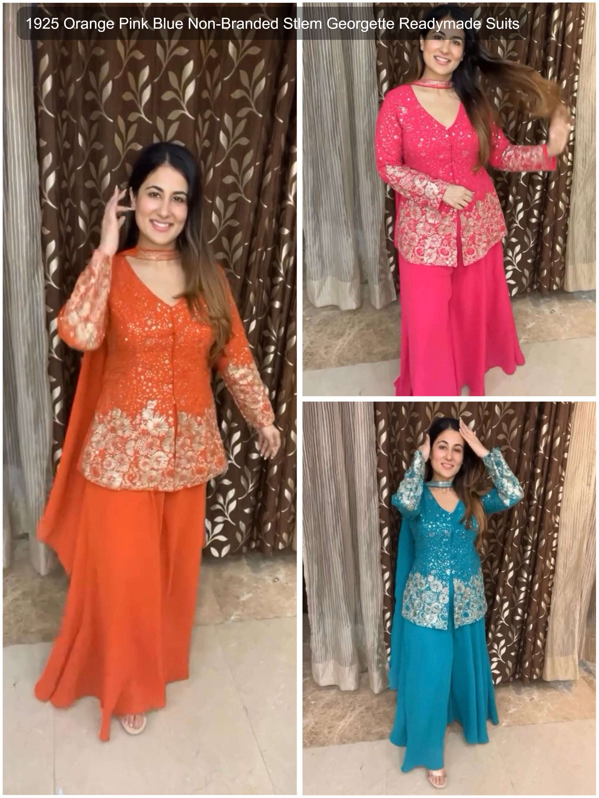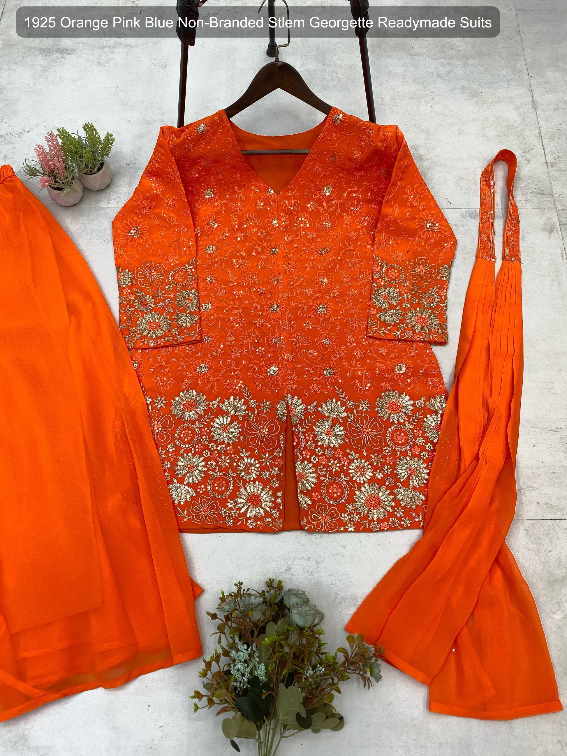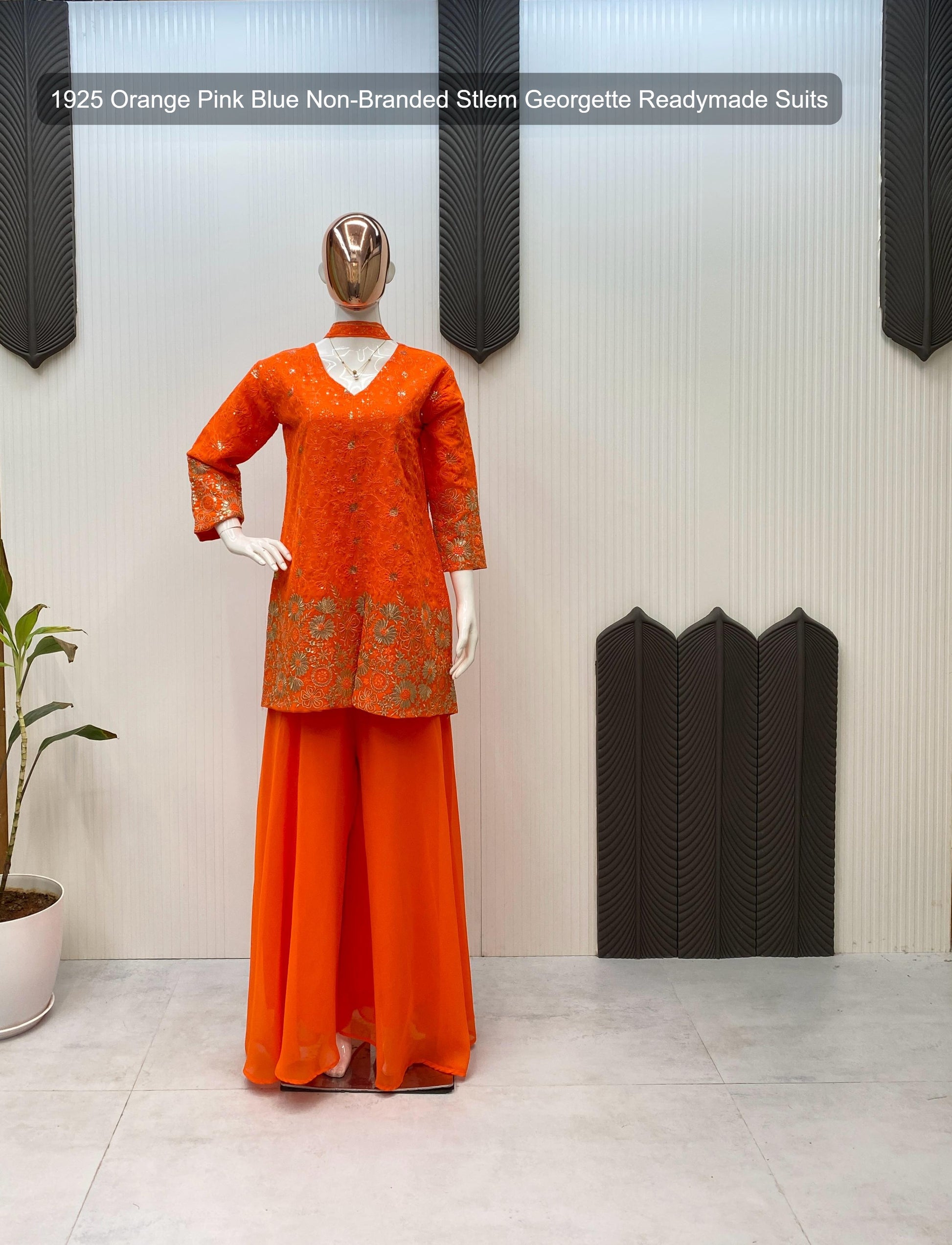 - 1925 Orange Pink Blue Non-Branded Stlem Georgette Readymade Suits Dealer Ahmedabad Surat Wholesale Gujarat India Lowest Price Best Quality Buy Purchase Shipping Kurta Salwaar Kameez Also free Cash on delivery