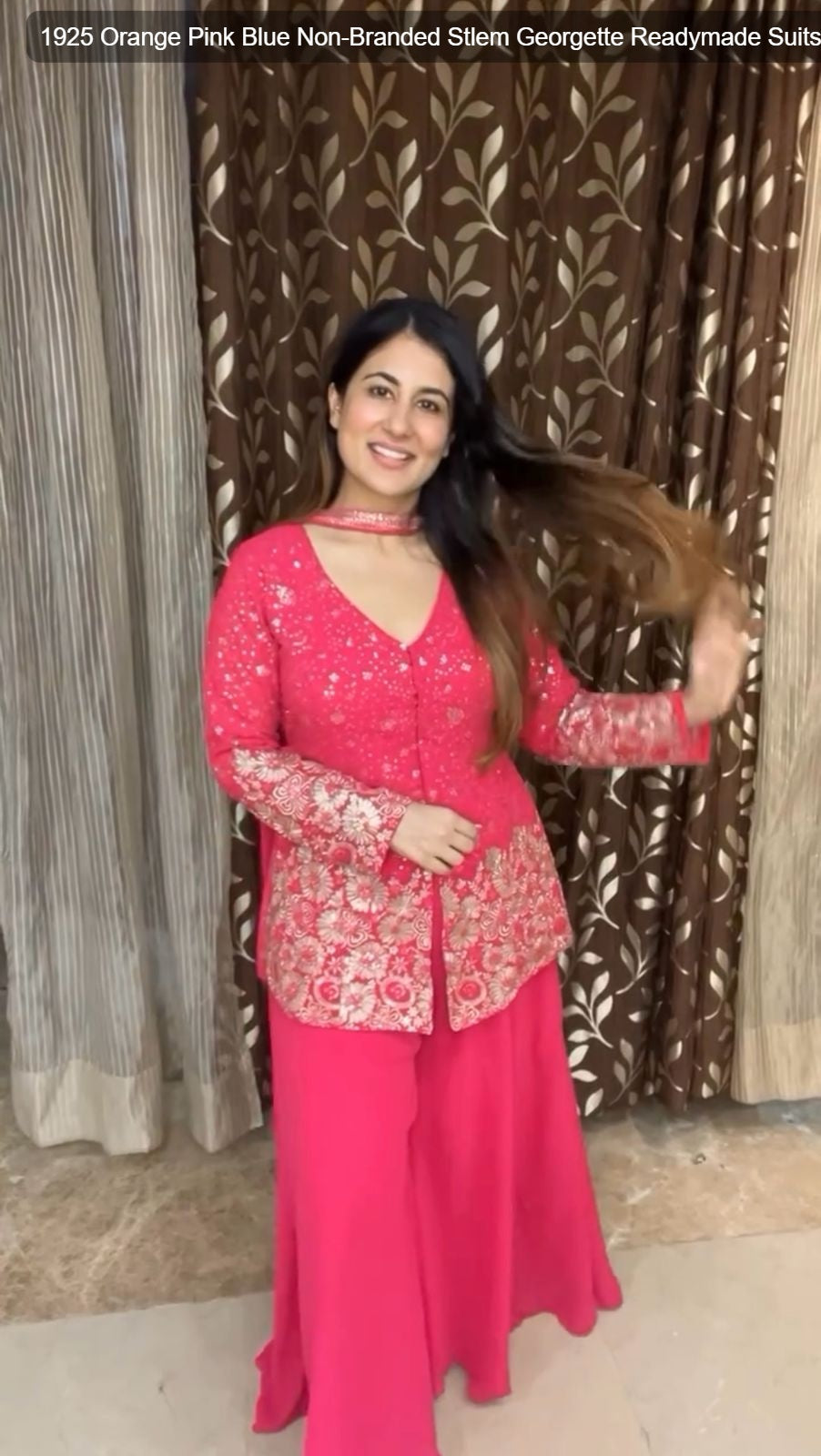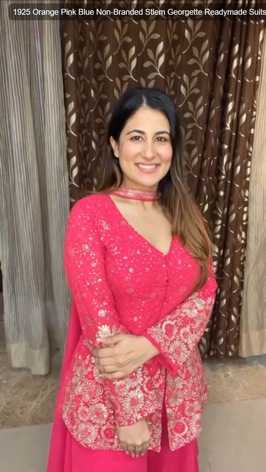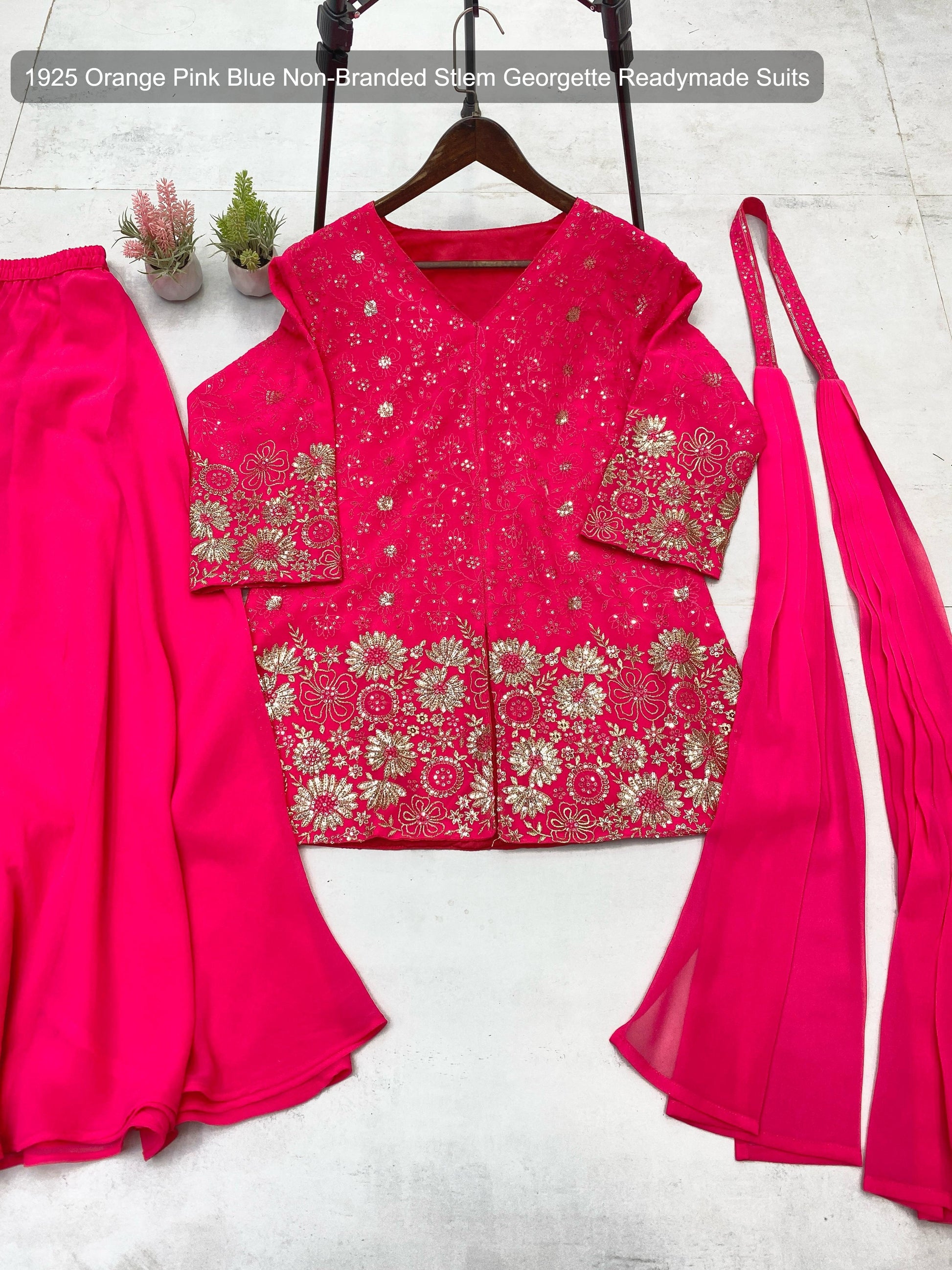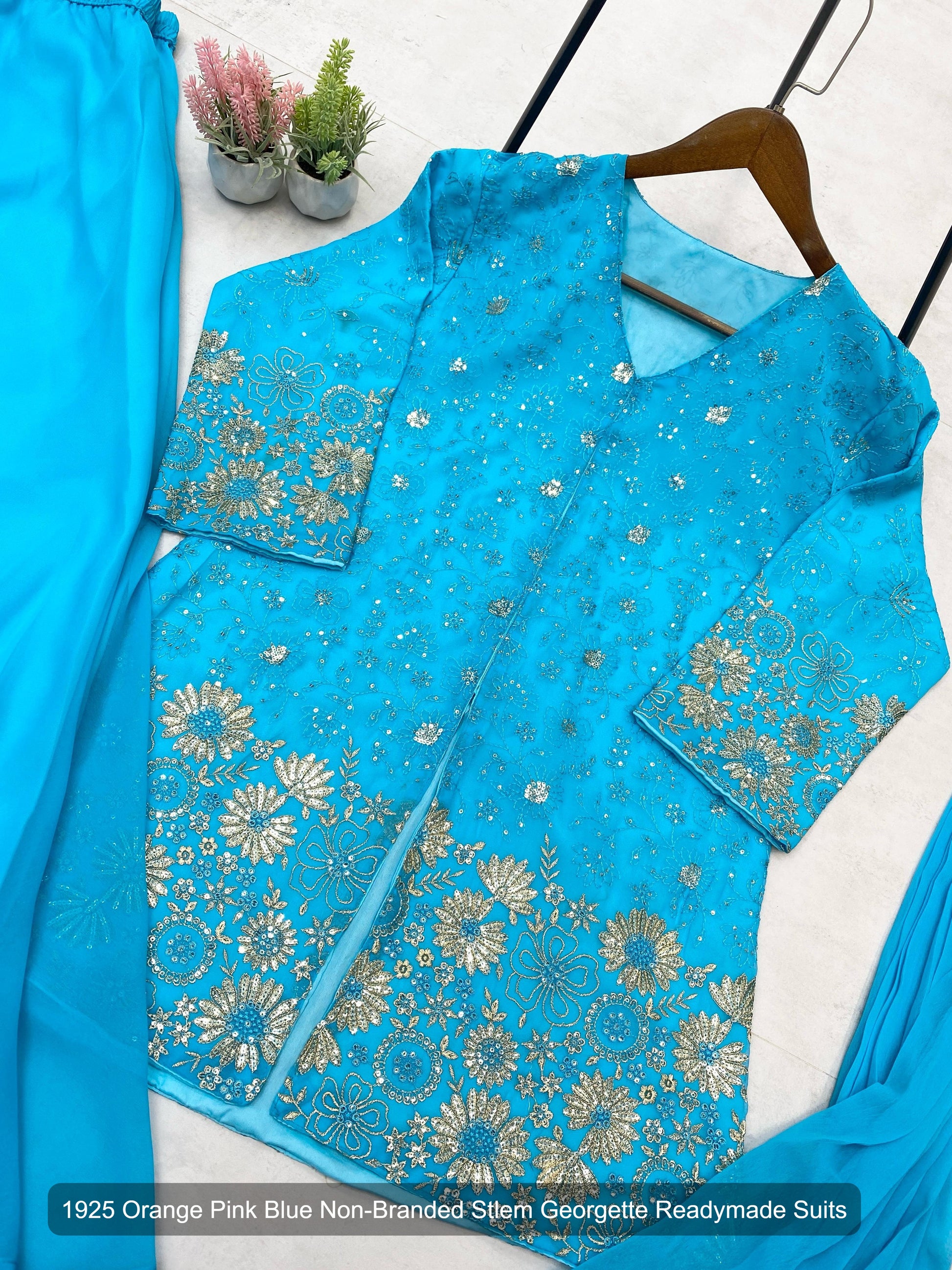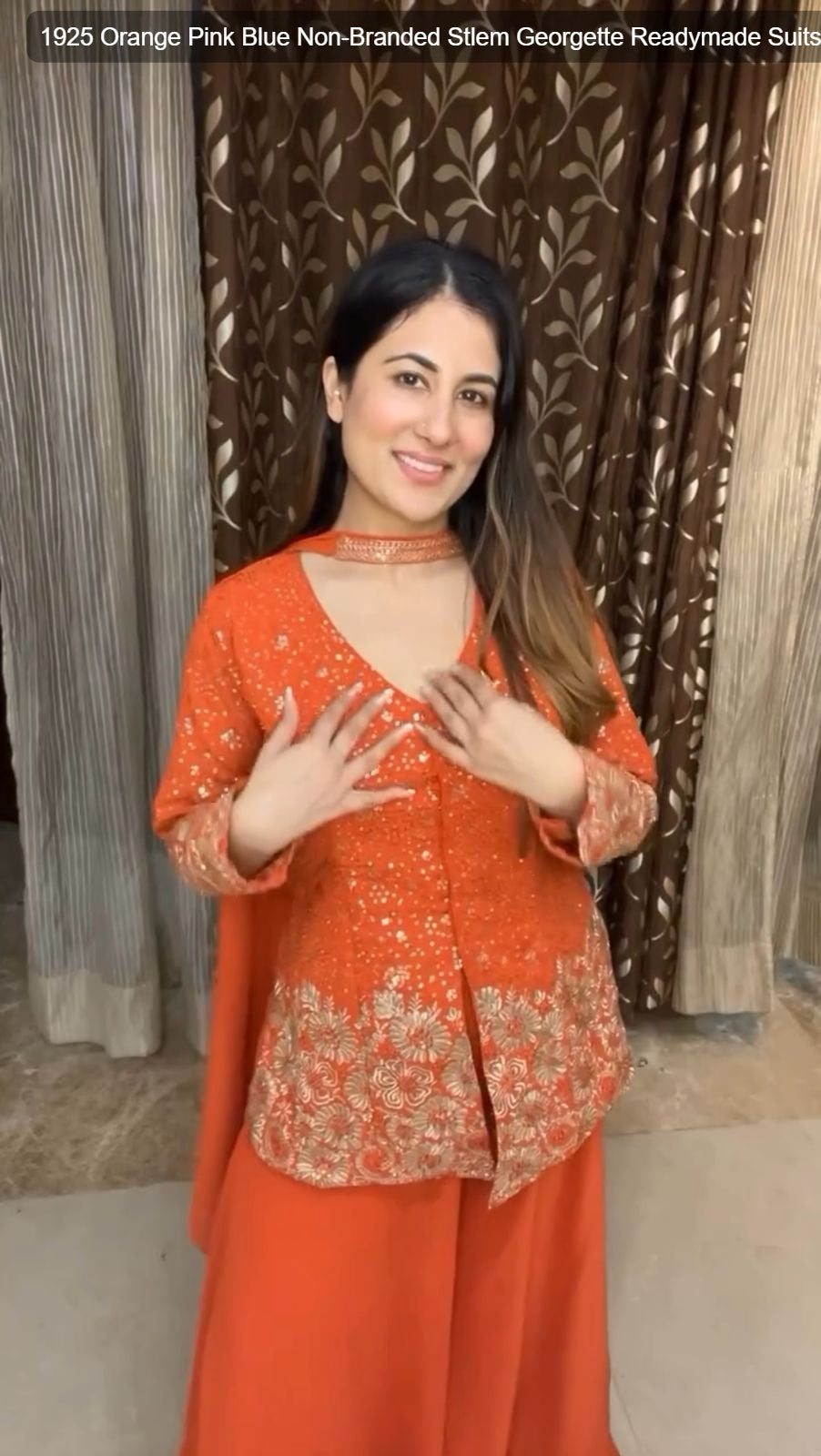 - 1925 Orange Pink Blue Non-Branded Stlem Georgette Readymade Suits Dealer Ahmedabad Surat Wholesale Gujarat India Lowest Price Best Quality Buy Purchase Shipping Kurta Salwaar Kameez Also free Cash on delivery