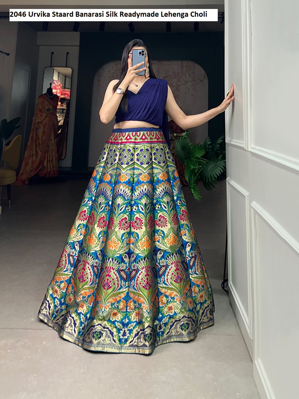 - 2046 Urvika Staard Banarasi Silk Readymade Lehenga Choli Dealer Ahmedabad Surat Wholesale Gujarat India Lowest Price Best Quality Buy Purchase Shipping Kurta Salwaar Kameez Also free Cash on delivery