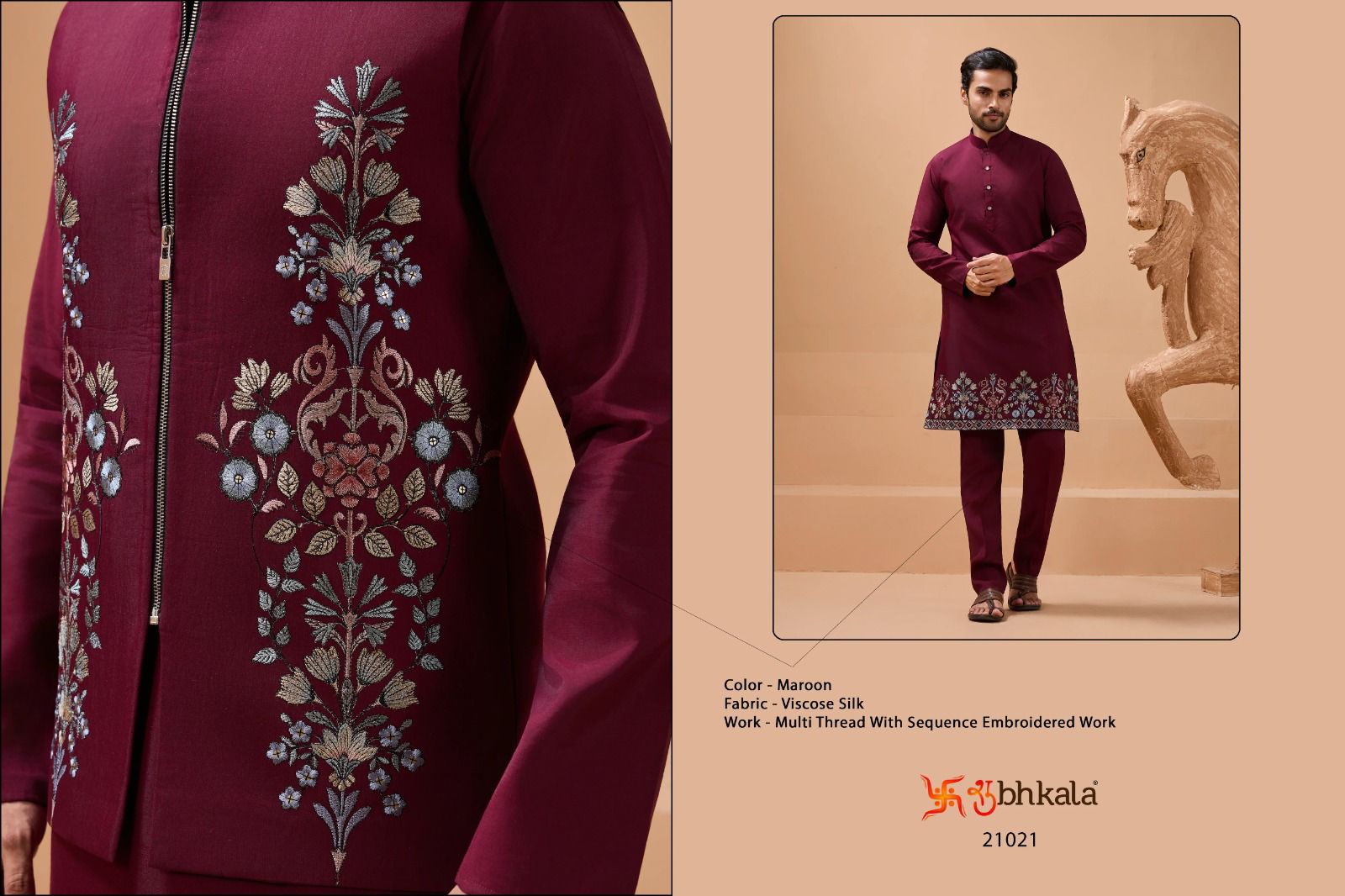 21021 The Classic Man Shubhkala With Koti Mens Kurta Pyjama