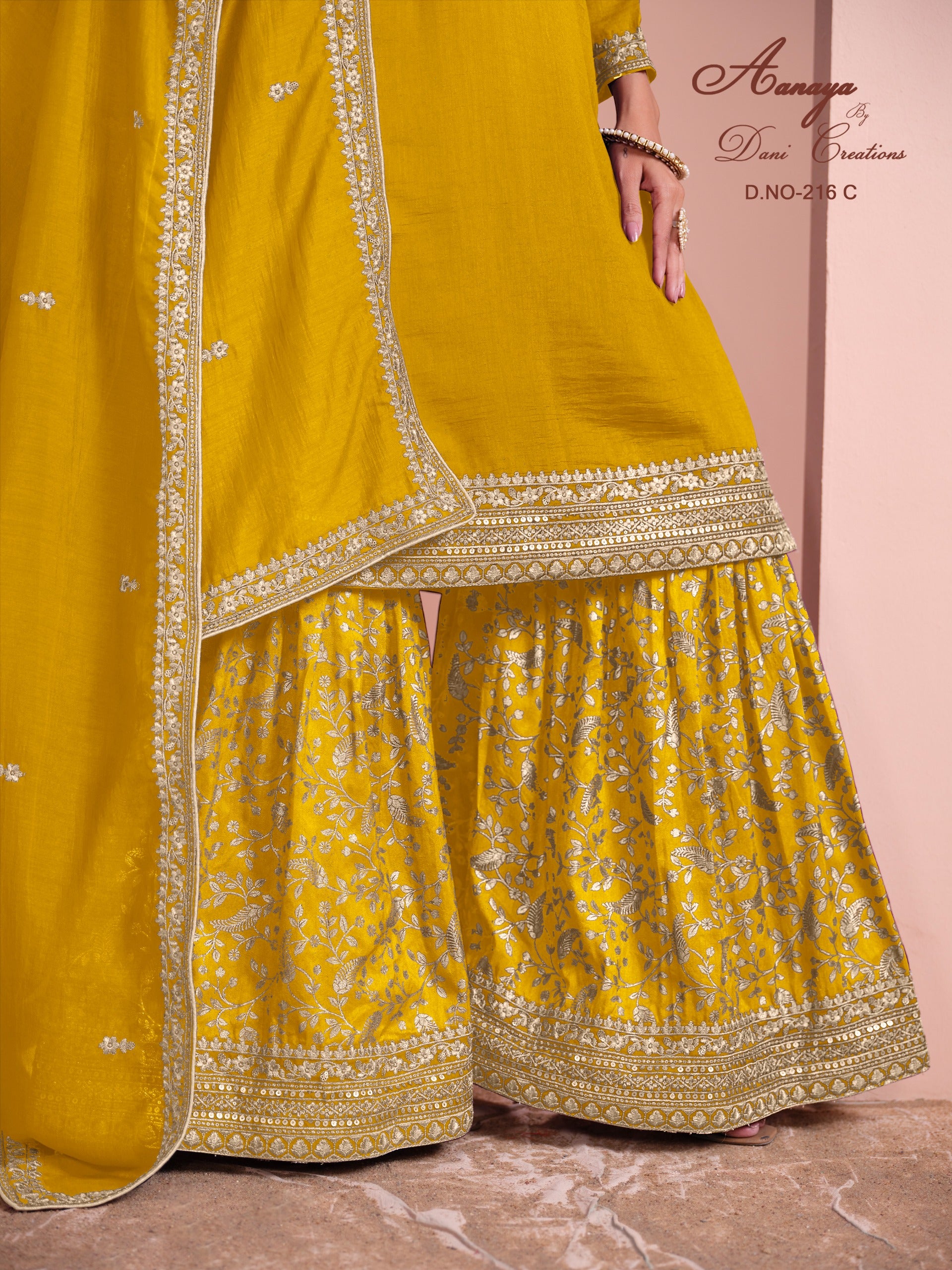 - 216C Aanaya Vol 216 Dani Creation Art Silk Unstitched Suits Dealer Ahmedabad Surat Wholesale Gujarat India Lowest Price Best Quality Buy Purchase Shipping Kurta Salwaar Kameez Also free Cash on delivery