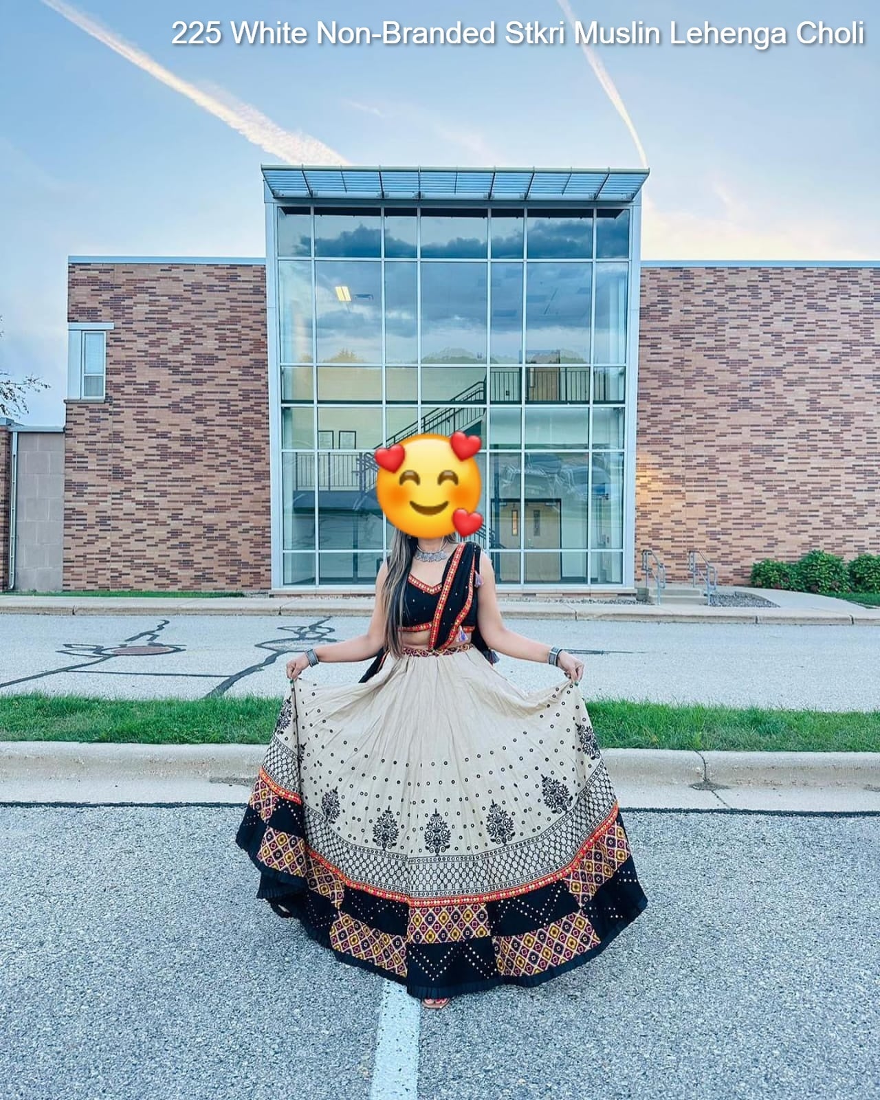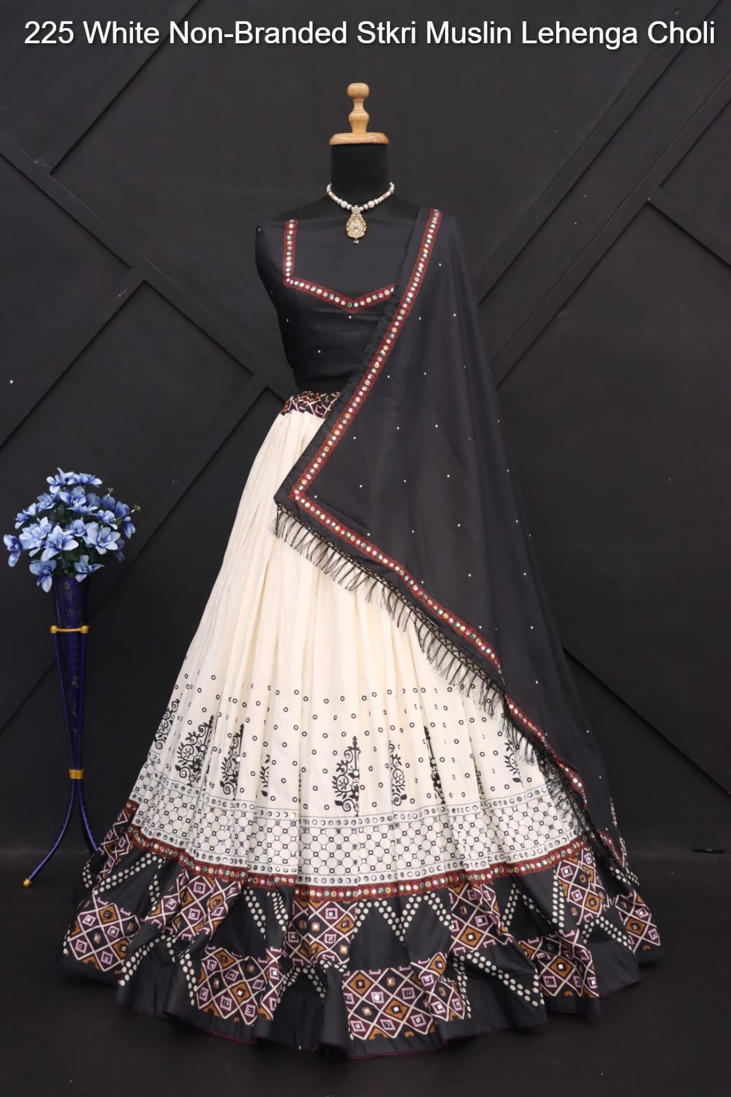 - 225 White Non-Branded Stkri Muslin Lehenga Choli Dealer Ahmedabad Surat Wholesale Gujarat India Lowest Price Best Quality Buy Purchase Shipping Kurta Salwaar Kameez Also free Cash on delivery