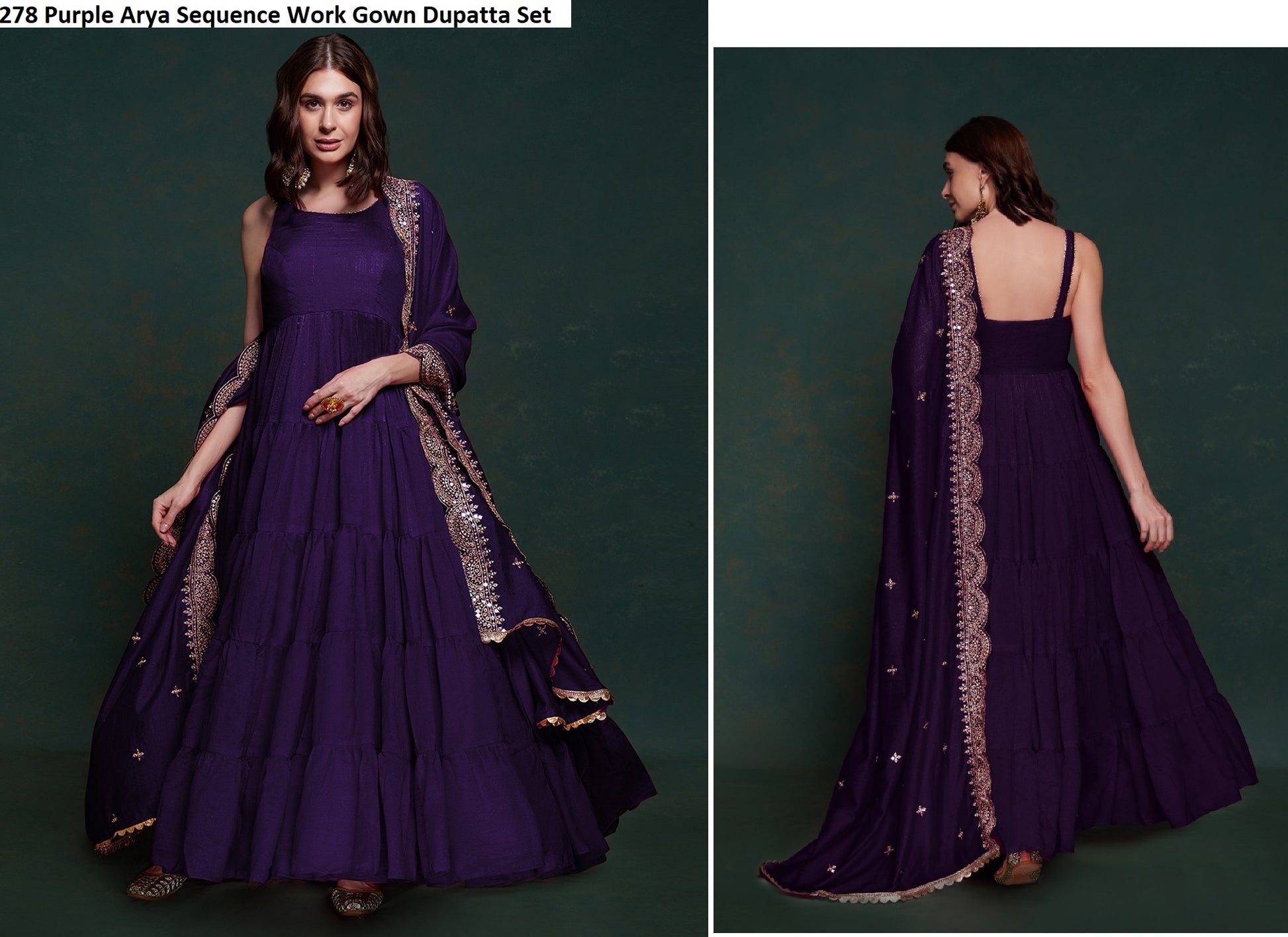 - 278 Purple Arya Sequence Work Gown Dupatta Set Dealer Ahmedabad Surat Wholesale Gujarat India Lowest Price Best Quality Buy Purchase Shipping Kurta Salwaar Kameez Also free Cash on delivery