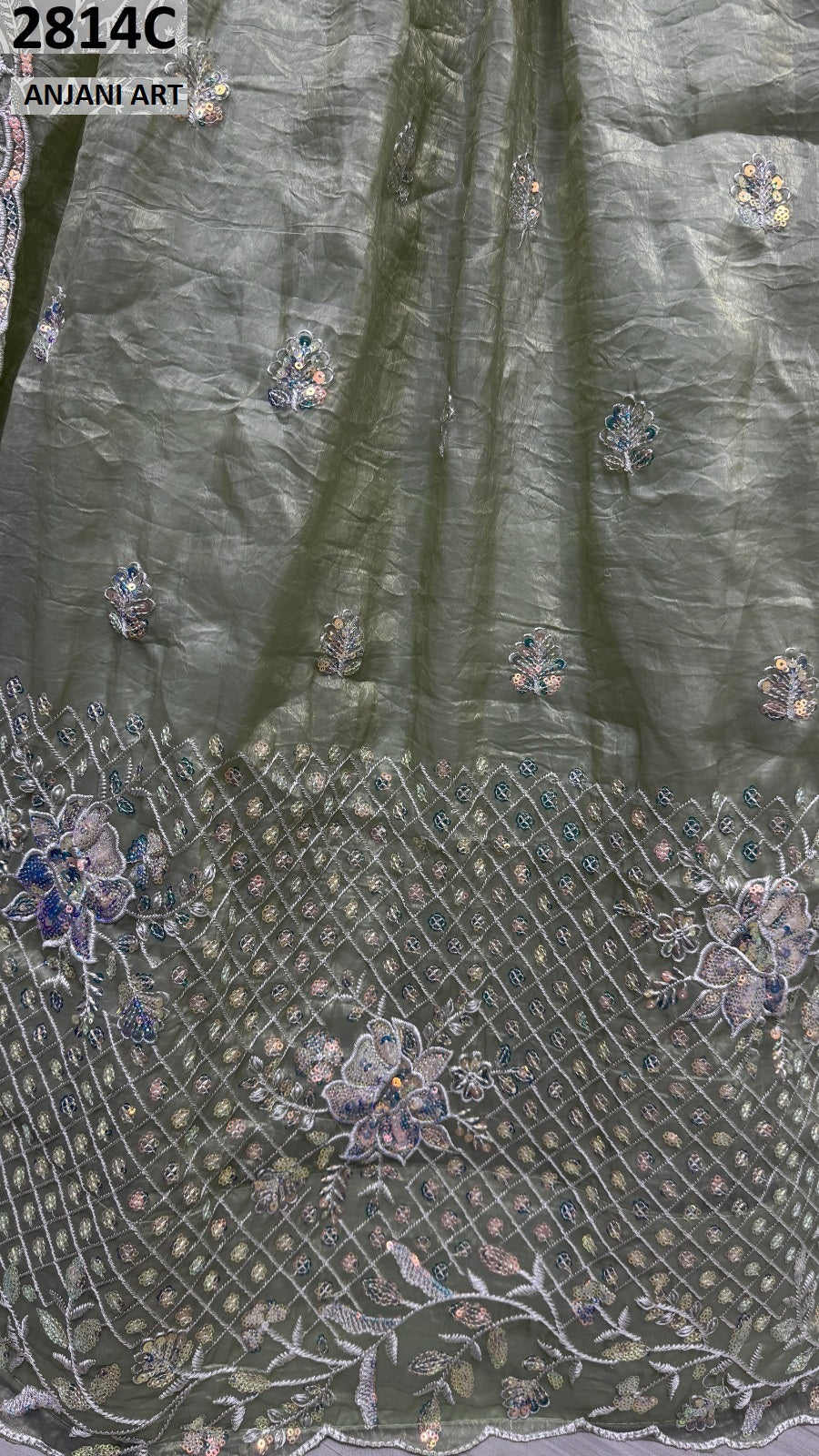 - Fabric Detail: Lehenga : Gold Crush, Sequins Work, Zari Embroidery, Fancy Pattern, Multi Thread Work, Flair-Free Size Upto 42 Waist, Standard Cancan And Canvas Attached, Blouse : Gold Crush, 1 Mtr Unstitched, Dupatta : Gold Crush, Four Side Beautiful Lace And Work ,