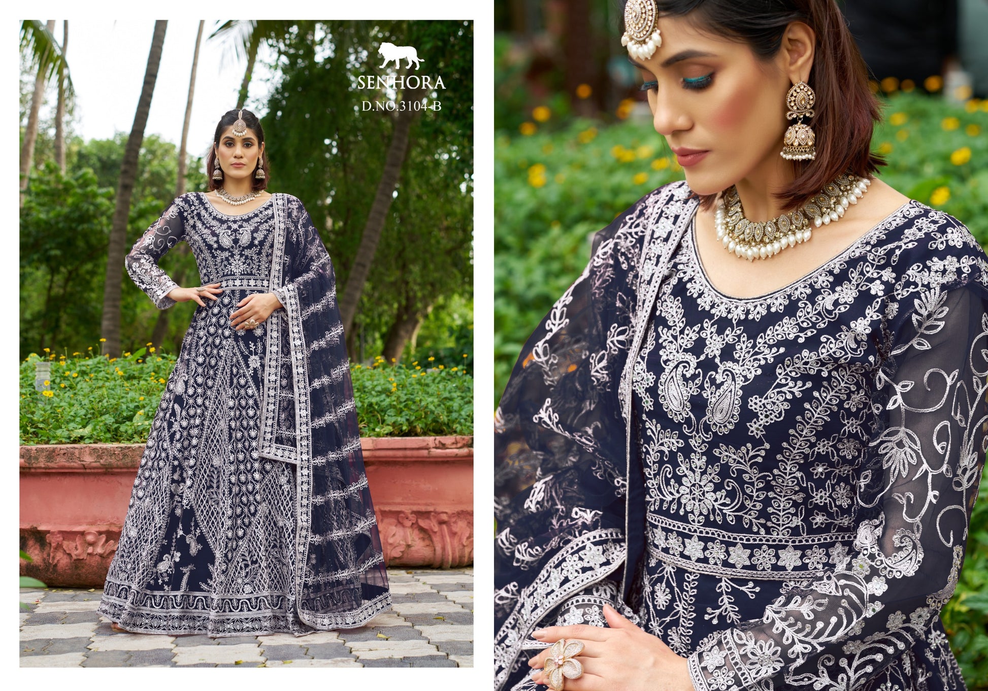 - 3104-A Blue Senhora Anarkali Gown Dupatta Set Dealer Ahmedabad Surat Wholesale Gujarat India Lowest Price Best Quality Buy Purchase Shipping Kurta Salwaar Kameez Also free Cash on delivery