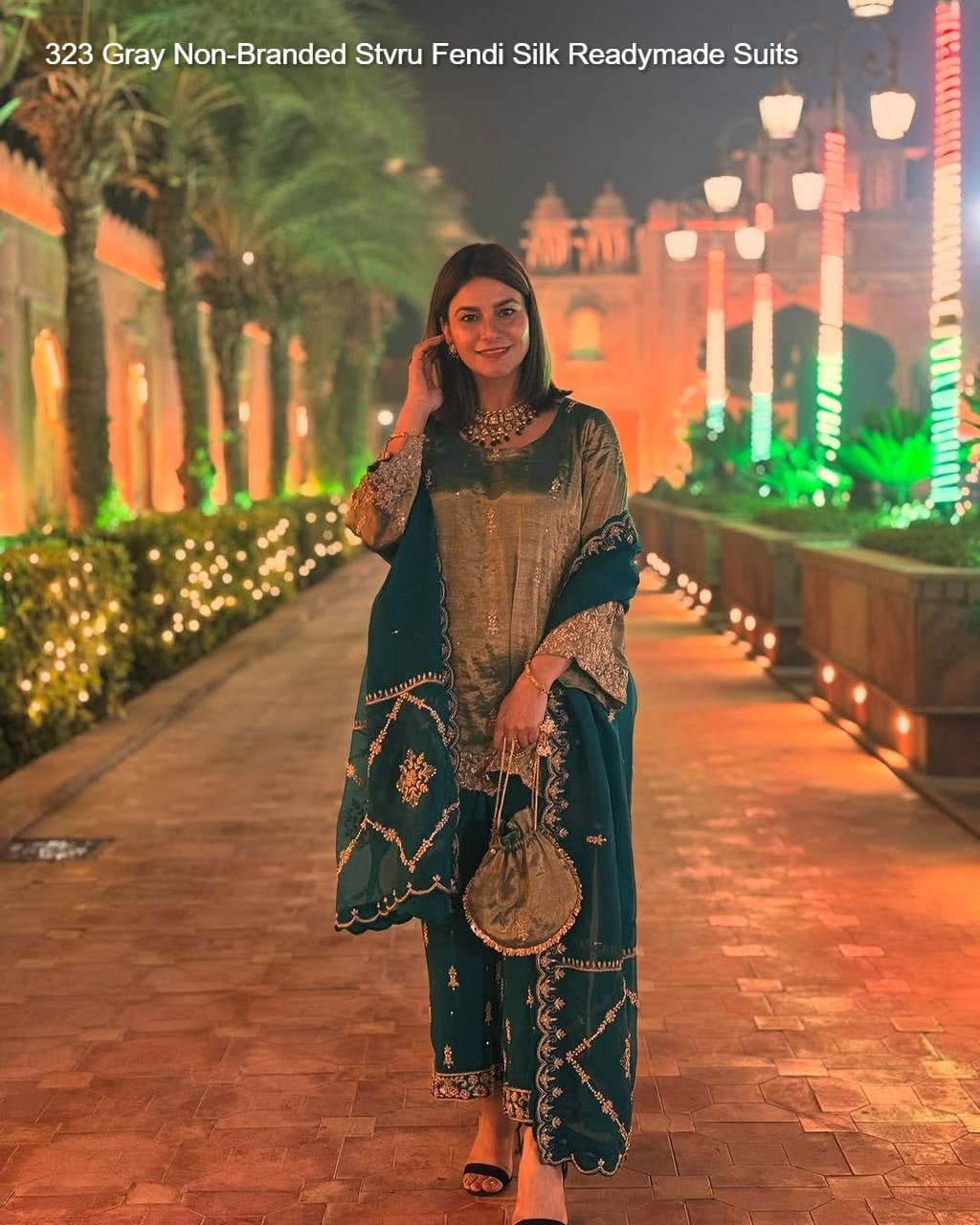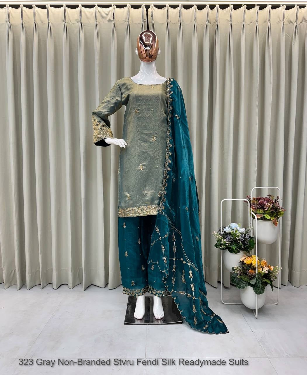 - 323 Gray Non-Branded Stvru Fendi Silk Readymade Suits Dealer Ahmedabad Surat Wholesale Gujarat India Lowest Price Best Quality Buy Purchase Shipping Kurta Salwaar Kameez Also free Cash on delivery