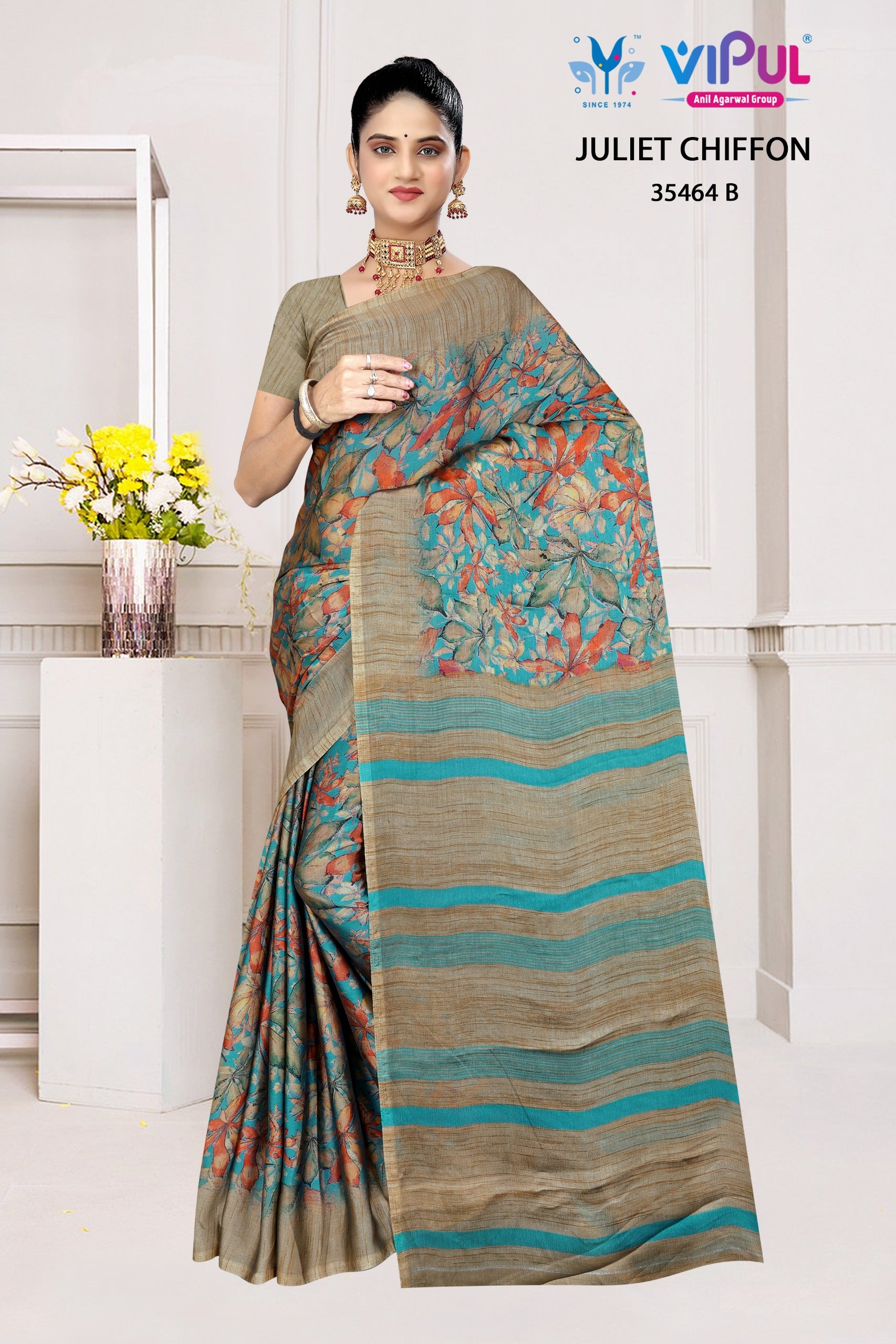 - 35464-B Juliet Vipul Chiffon Sarees Dealer Ahmedabad Surat Wholesale Gujarat India Lowest Price Best Quality Buy Purchase Shipping Kurta Salwaar Kameez Also free Cash on delivery