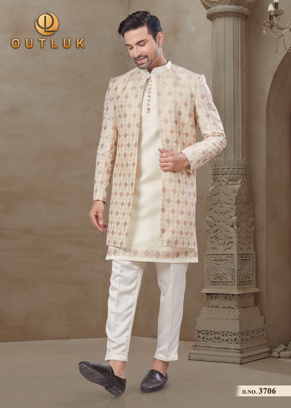 3706 Wedding Collection Vol 37 Outluk Jacket Mens Kurta Pyjama