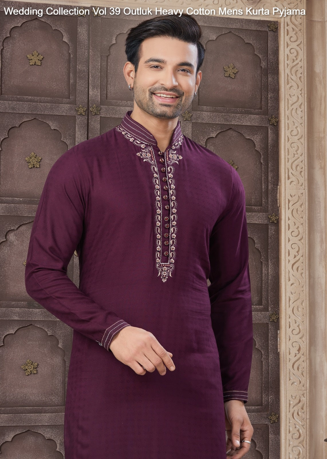 3906 Wedding Collection Vol 39 Outluk Heavy Cotton Mens Kurta Pyjama