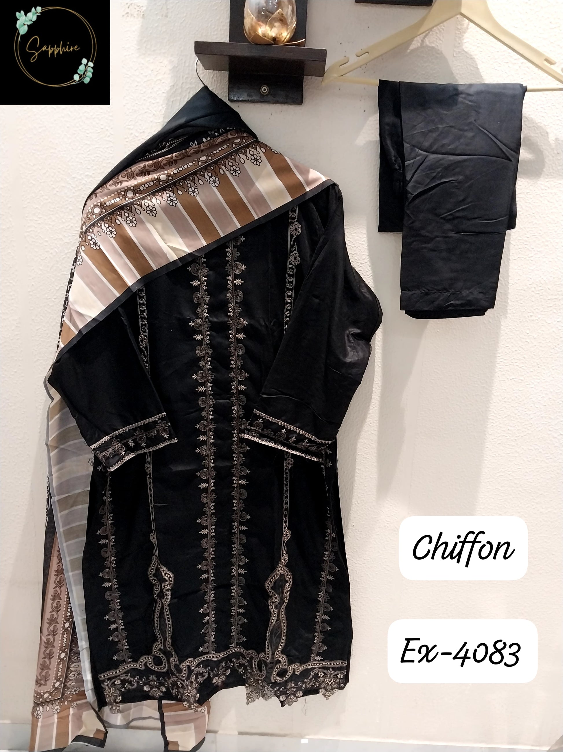 4083 Black Sapphire Patches Pakistani Readymade Suits
