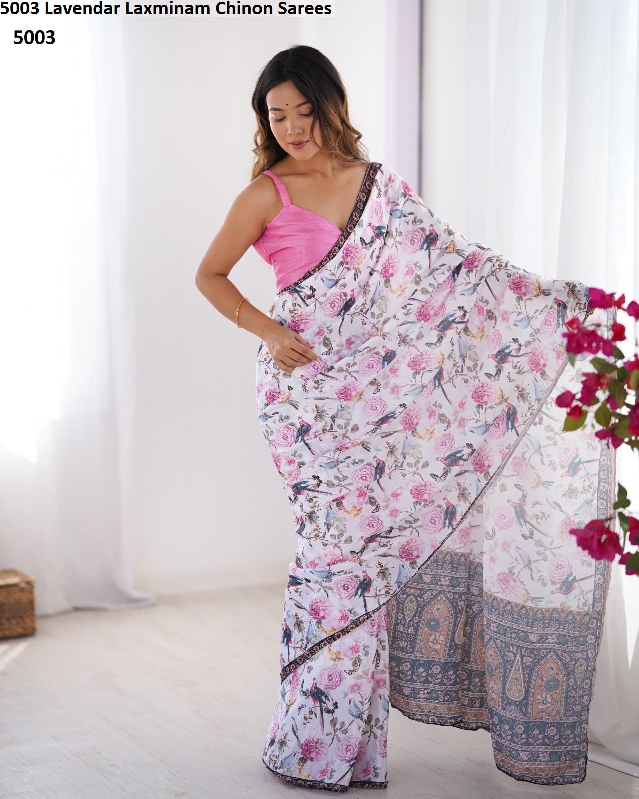 - 5003 Lavendar Laxminam Chinon Sarees Dealer Ahmedabad Surat Wholesale Gujarat India Lowest Price Best Quality Buy Purchase Shipping Kurta Salwaar Kameez Also free Cash on delivery