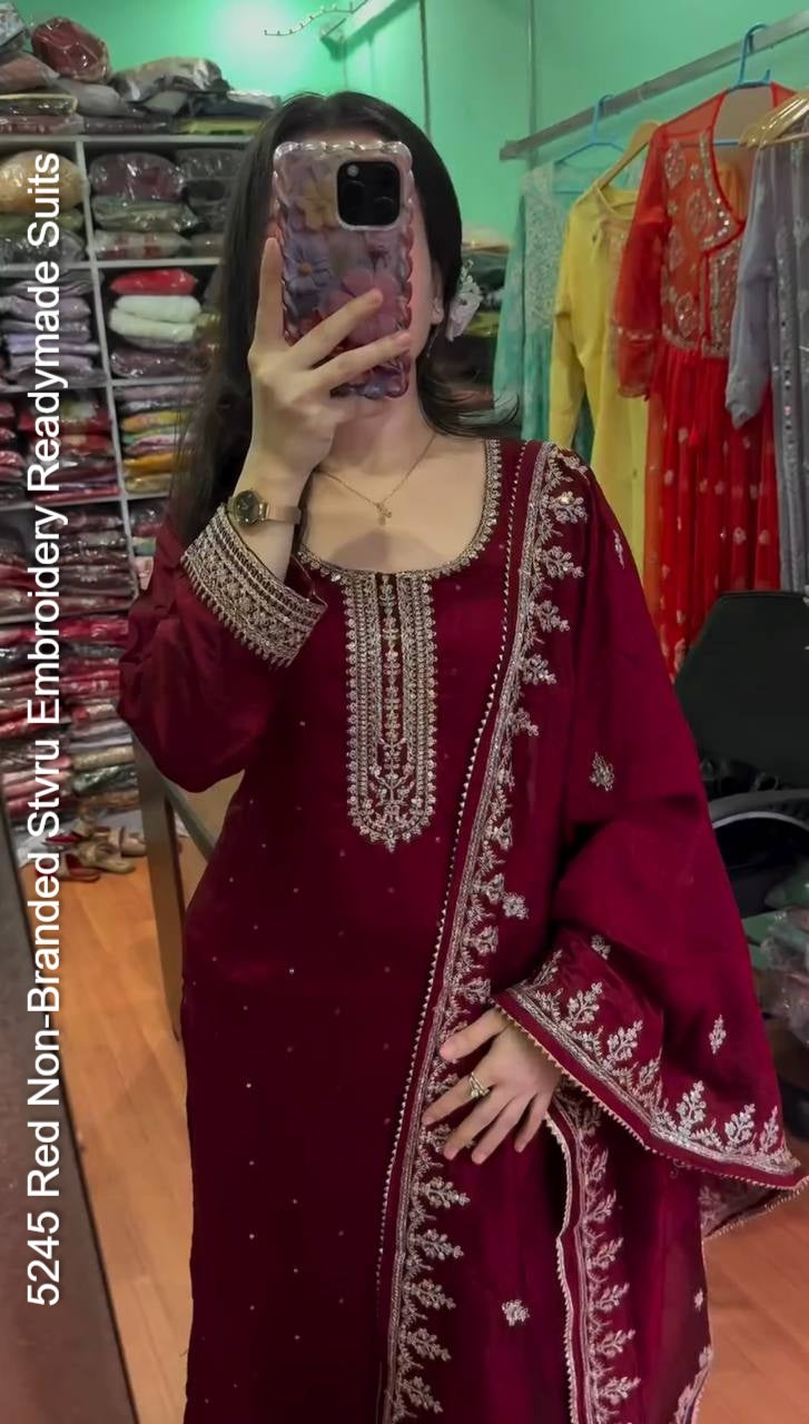 5245 Red Non-Branded Stvru Embroidery Readymade Suits