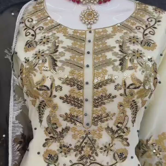 - Fabric Detail: Top : Heavy Pure Fox Georgette With Embroidered Very Beautiful Design And Sequence Work Moti Work Semi Stitched, Inner : Dull Santoon , Bottom : Unstitched Heavy Dull Santoon , Dupatta : Very Beautiful Pure Zimmy Chu Fancy With Heavy Embroidery And Moti Work , Size : Top : Fullystitched Up To 44 Free Size, Plazzo : Fully Stitched Up To 2Xl ( Free Size )
