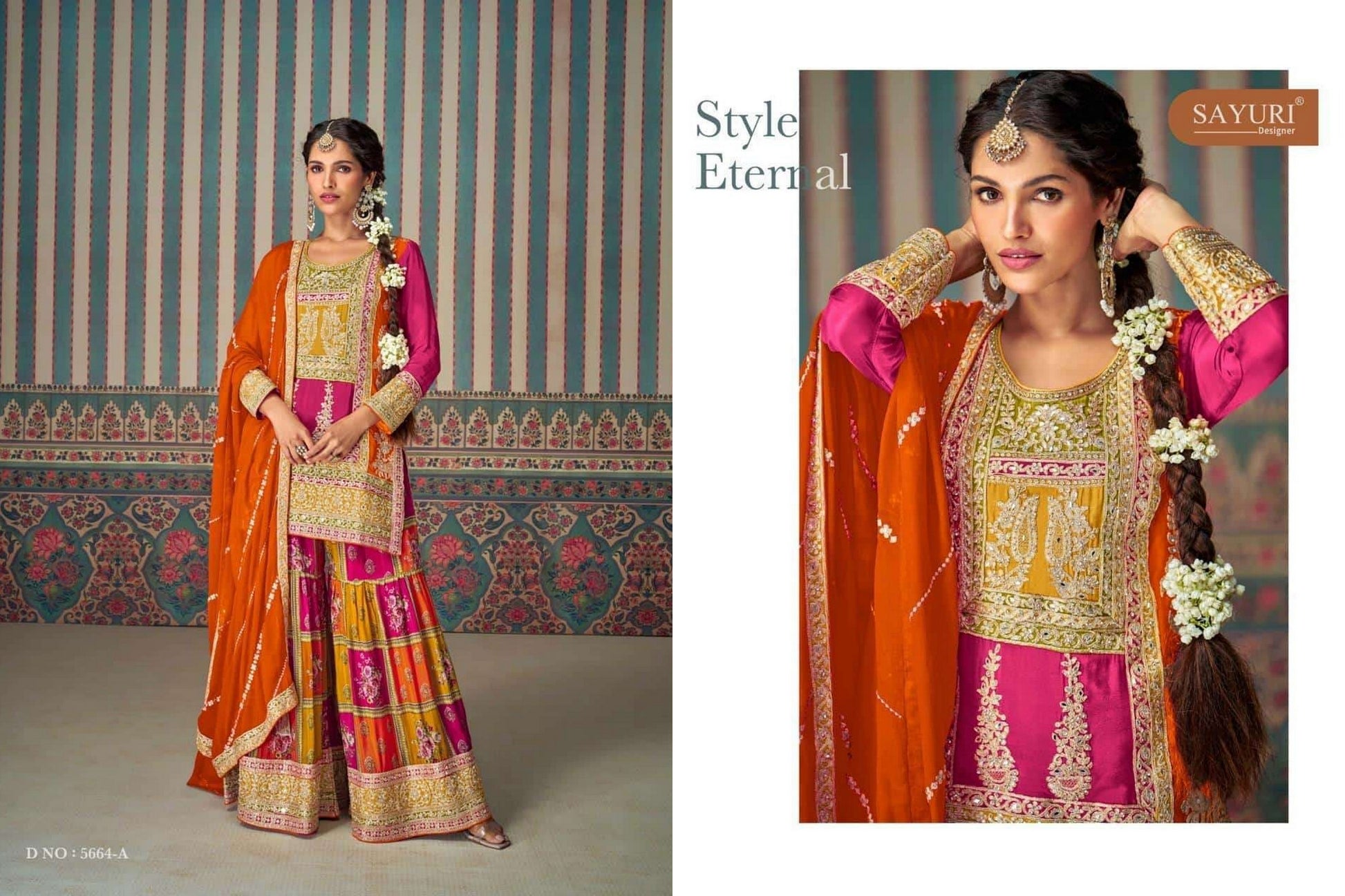 - 5664-A Mahi Pro Sayuri Chinon Silk Pakistani Readymade Suits Dealer Ahmedabad Surat Wholesale Gujarat India Lowest Price Best Quality Buy Purchase Shipping Kurta Salwaar Kameez Also free Cash on delivery