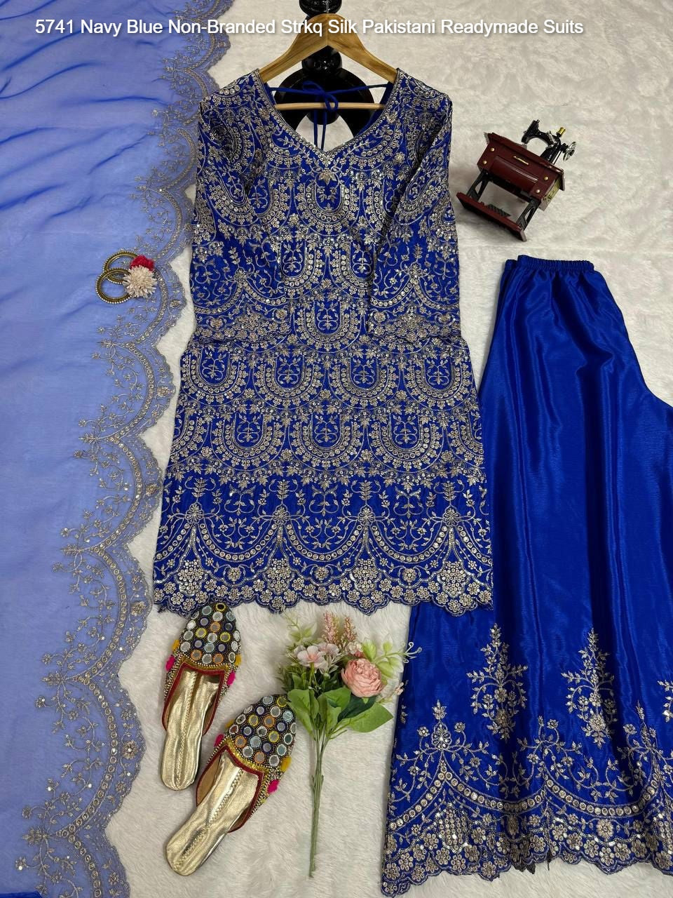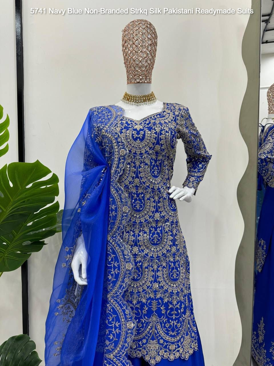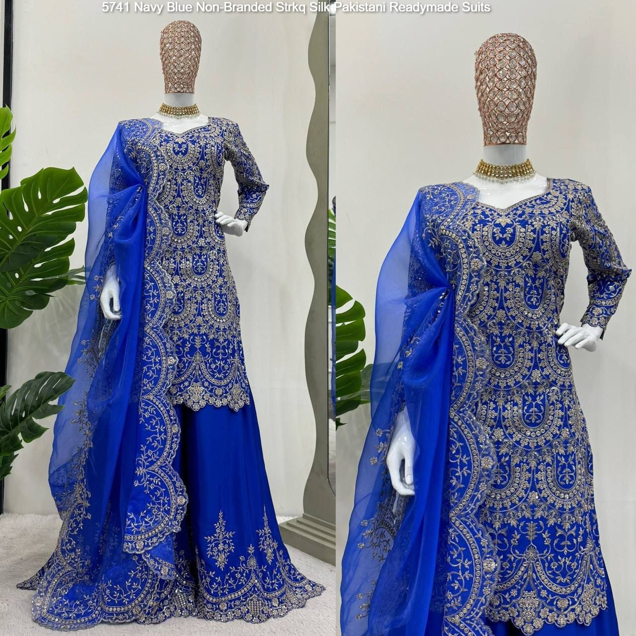 - 5741 Navy Blue Non-Branded Strkq Silk Pakistani Readymade Suits Dealer Ahmedabad Surat Wholesale Gujarat India Lowest Price Best Quality Buy Purchase Shipping Kurta Salwaar Kameez Also free Cash on delivery