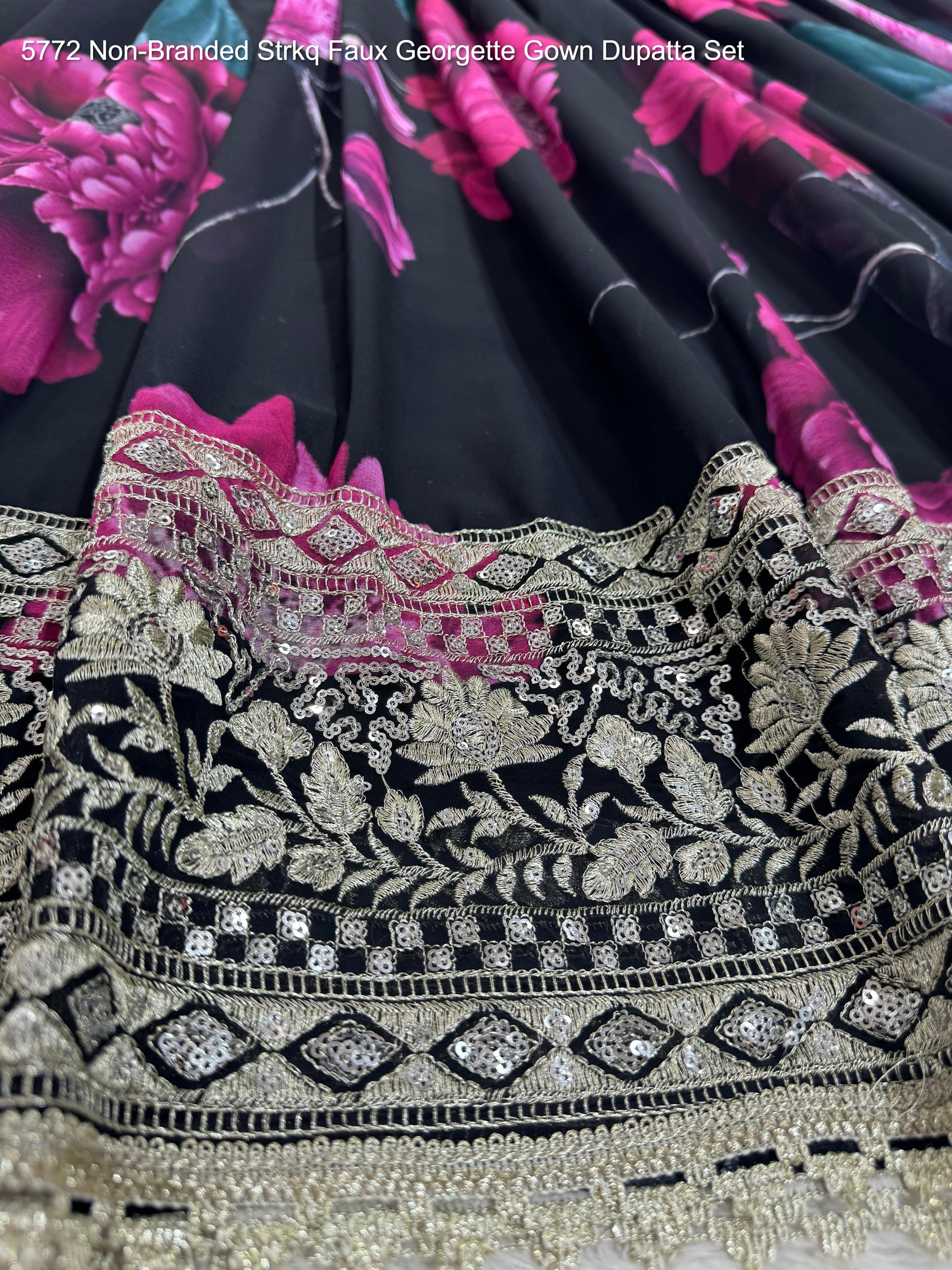 - 5772 Non-Branded Strkq Faux Georgette Gown Dupatta Set Dealer Ahmedabad Surat Wholesale Gujarat India Lowest Price Best Quality Buy Purchase Shipping Kurta Salwaar Kameez Also free Cash on delivery