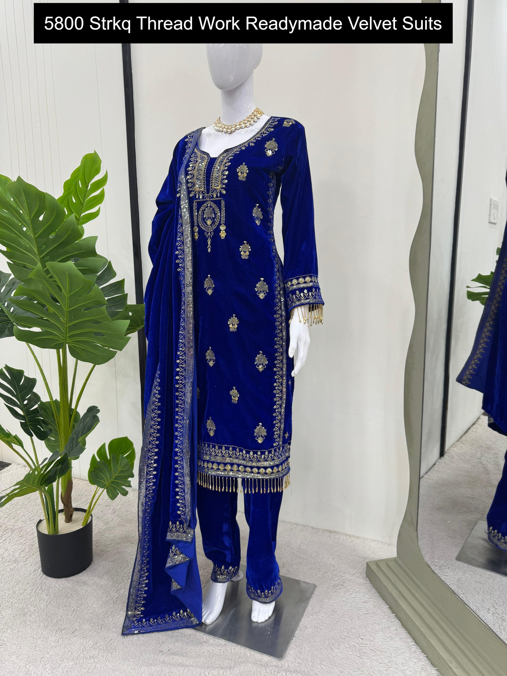 - 5800 Strkq Thread Work Readymade Velvet Suits Dealer Ahmedabad Surat Wholesale Gujarat India Lowest Price Best Quality Buy Purchase Shipping Kurta Salwaar Kameez Also free Cash on delivery
