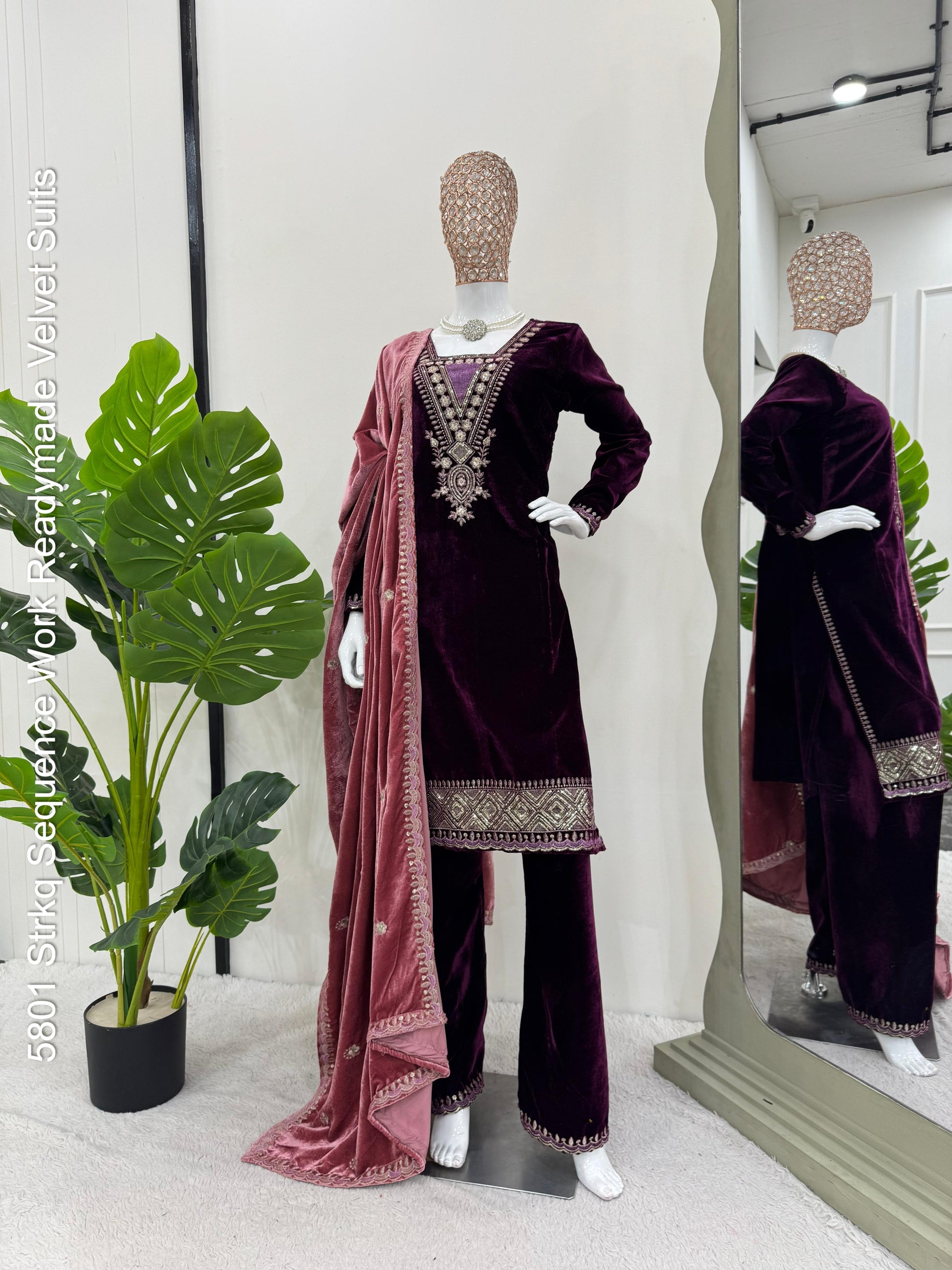 - 5801 Strkq Sequence Work Readymade Velvet Suits Dealer Ahmedabad Surat Wholesale Gujarat India Lowest Price Best Quality Buy Purchase Shipping Kurta Salwaar Kameez Also free Cash on delivery