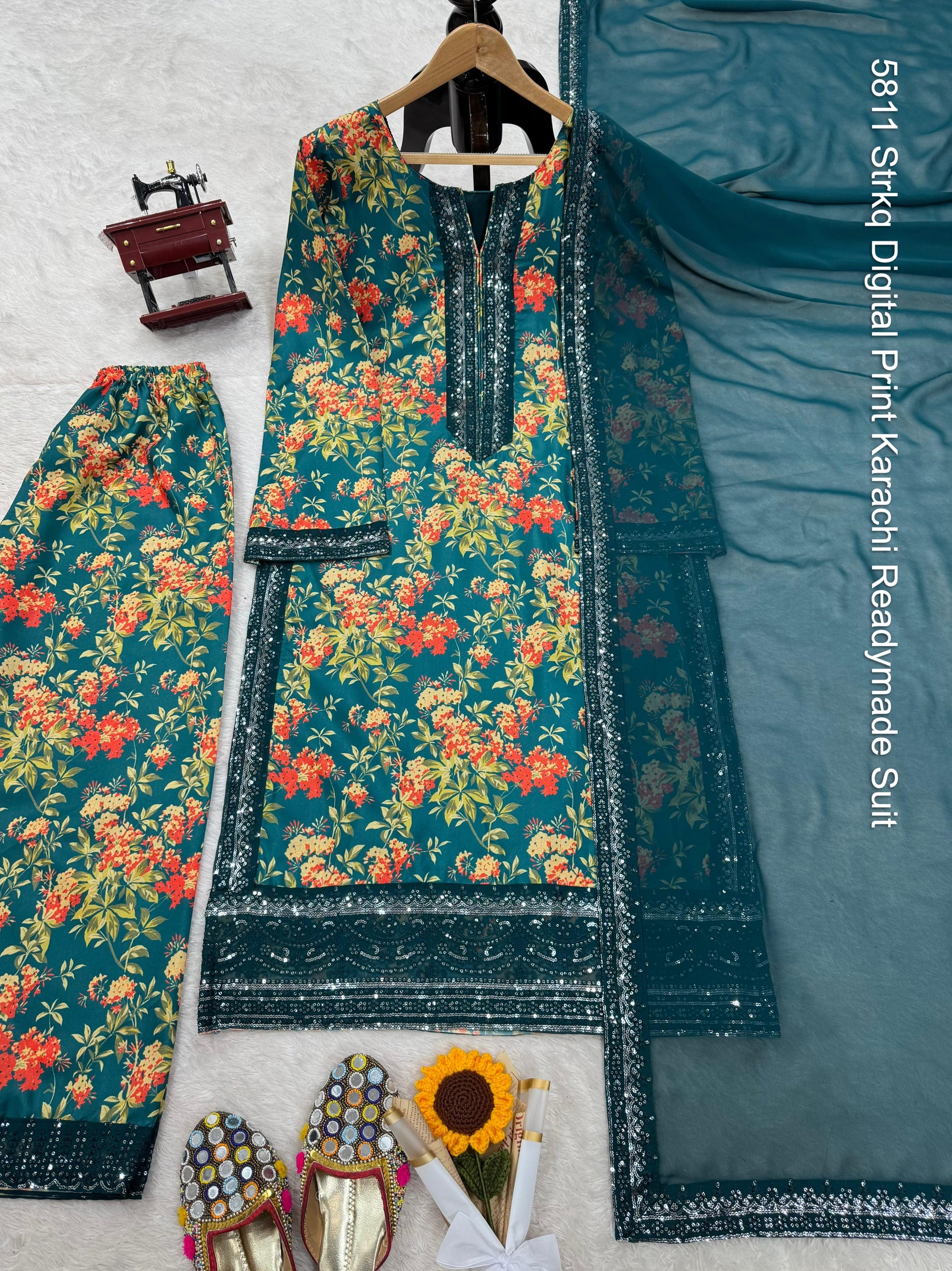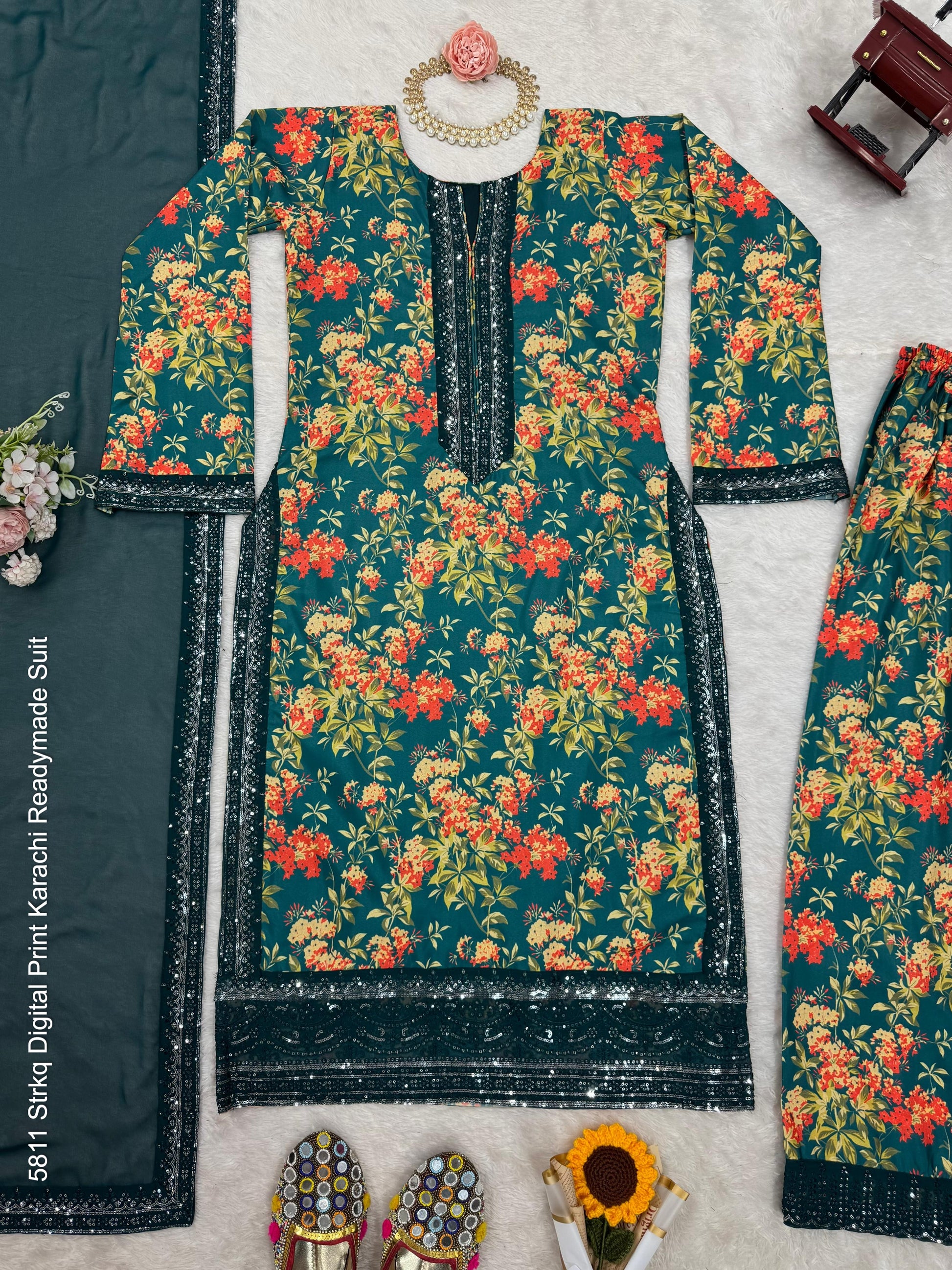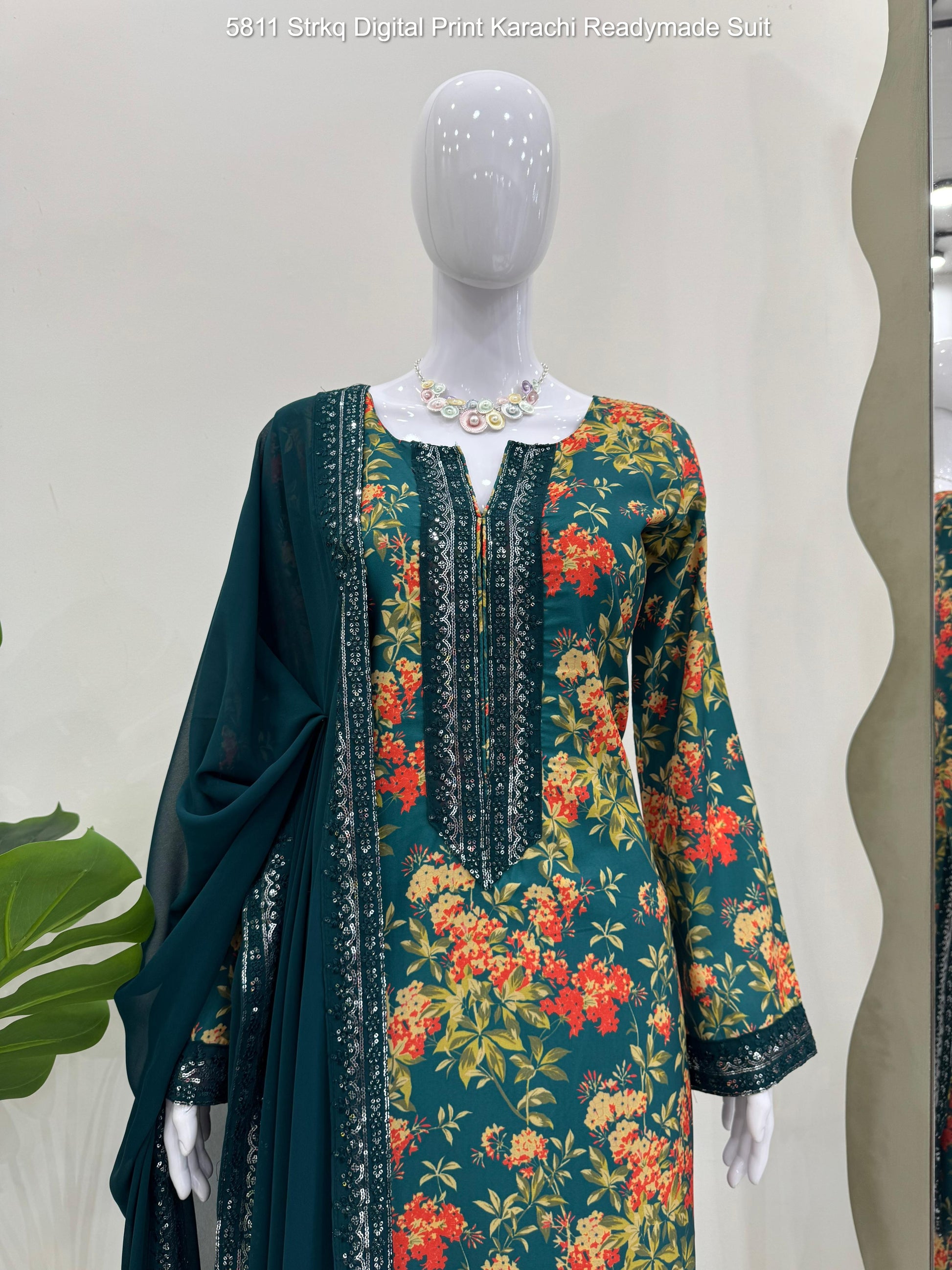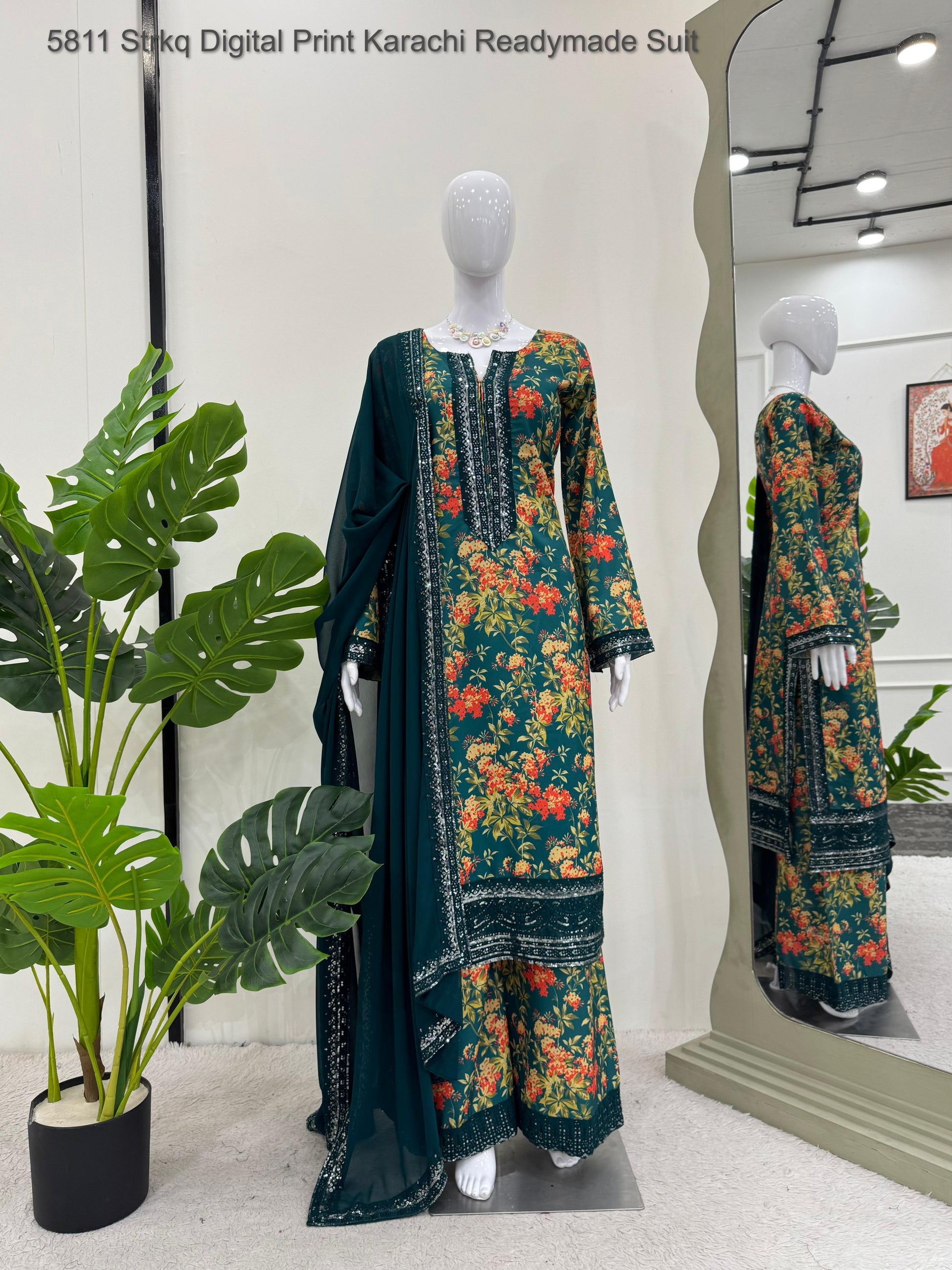 - 5811 Strkq Digital Print Karachi Readymade Suit Dealer Ahmedabad Surat Wholesale Gujarat India Lowest Price Best Quality Buy Purchase Shipping Kurta Salwaar Kameez Also free Cash on delivery