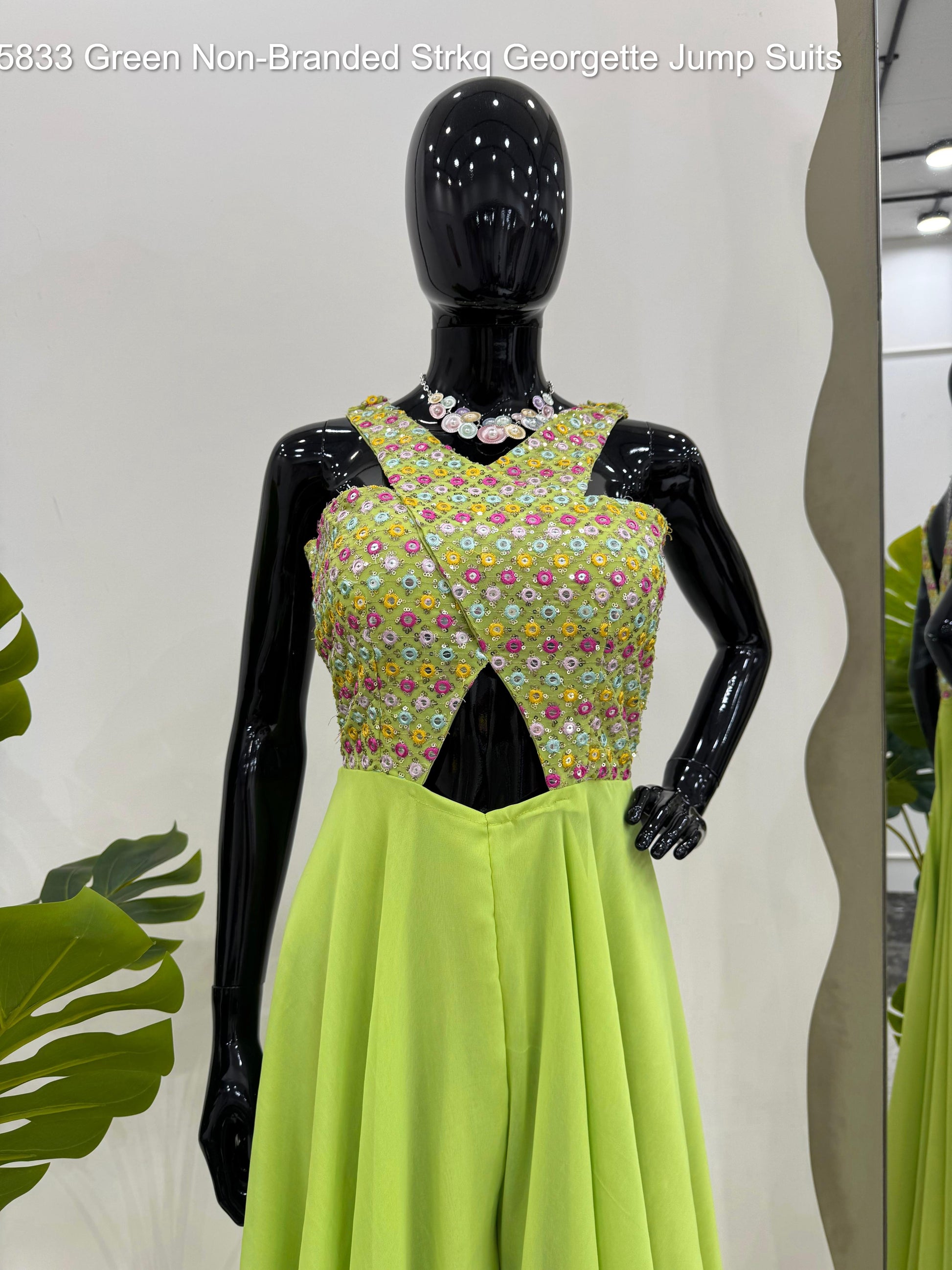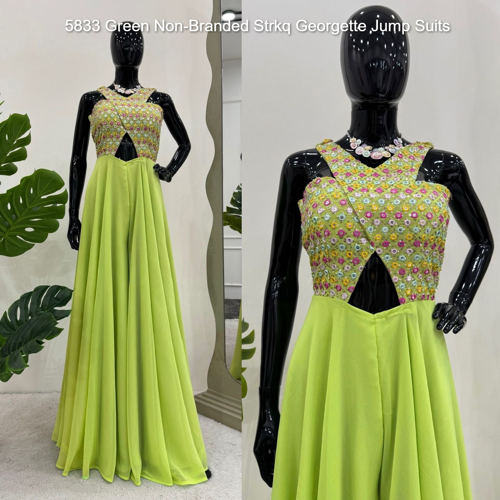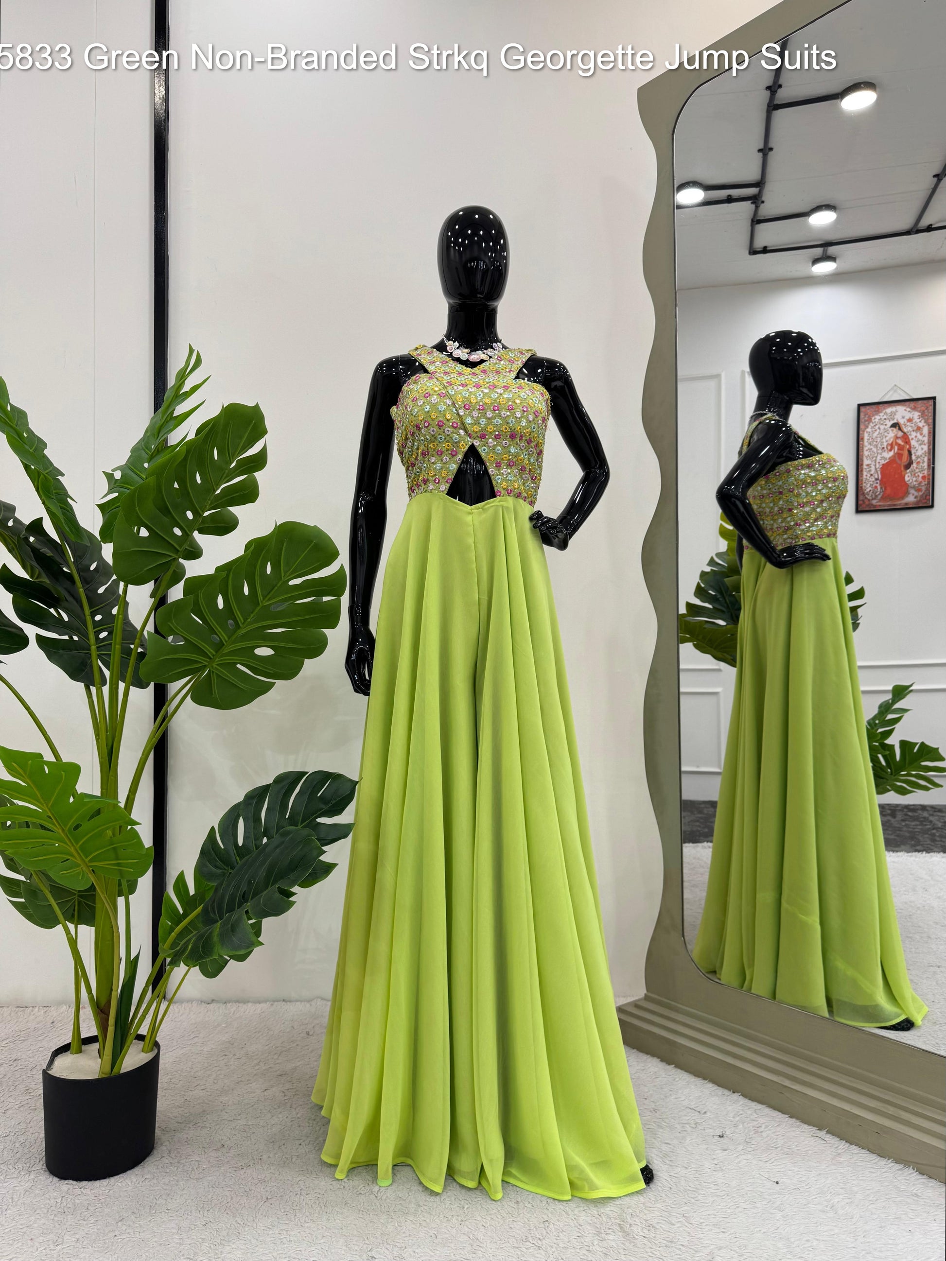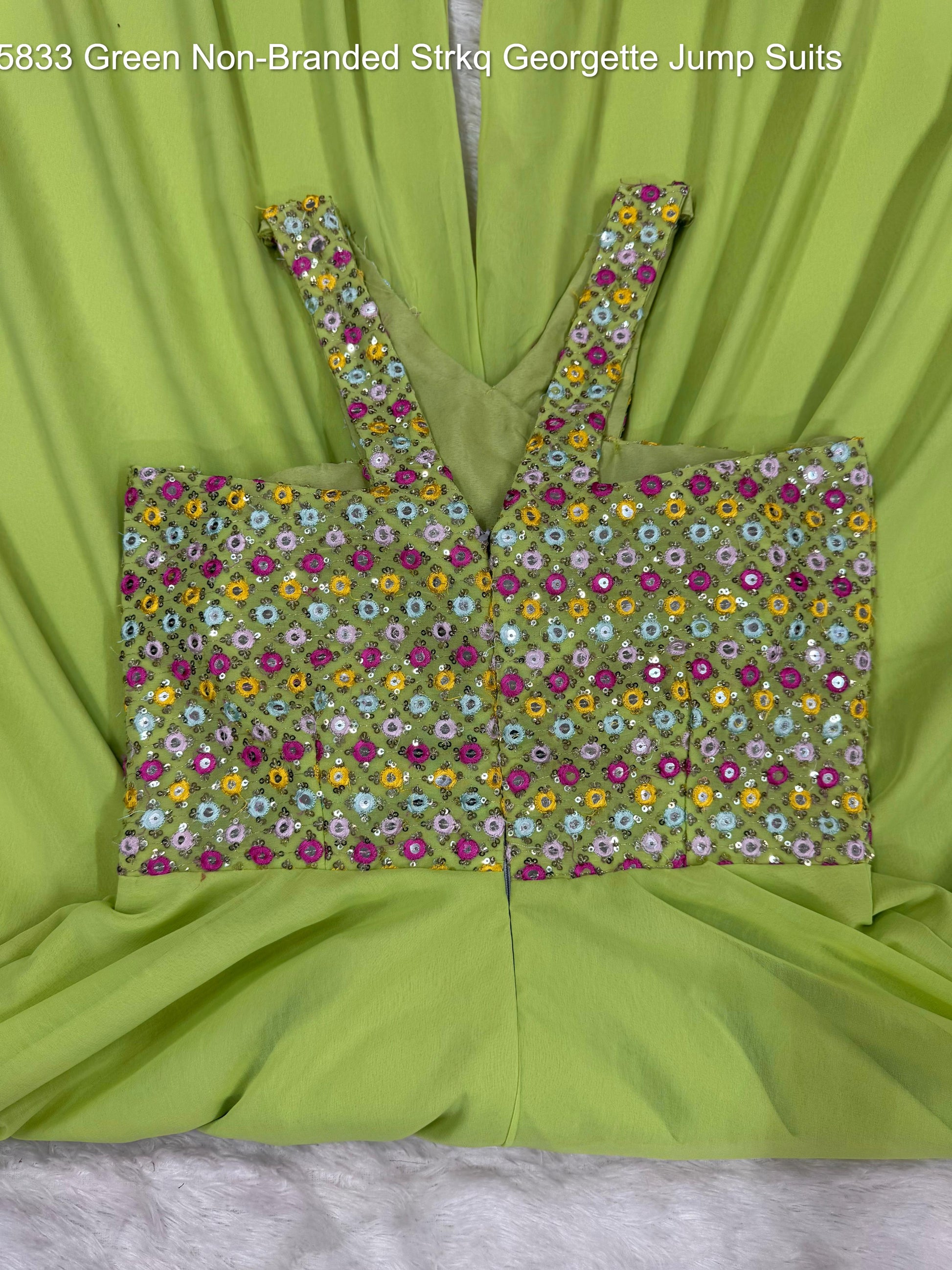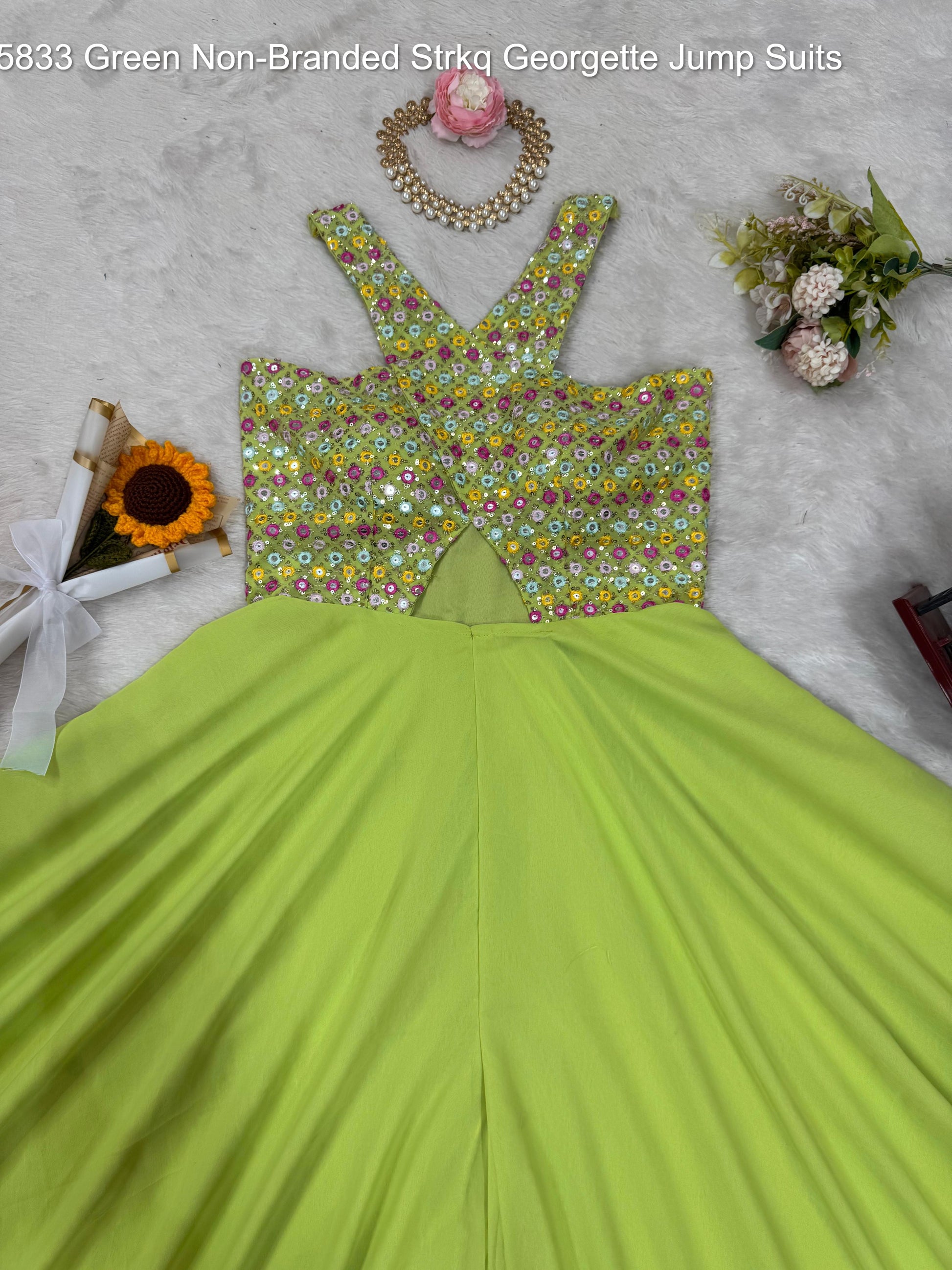 - 5833 Green Non-Branded Strkq Georgette Jump Suits Dealer Ahmedabad Surat Wholesale Gujarat India Lowest Price Best Quality Buy Purchase Shipping Kurta Salwaar Kameez Also free Cash on delivery