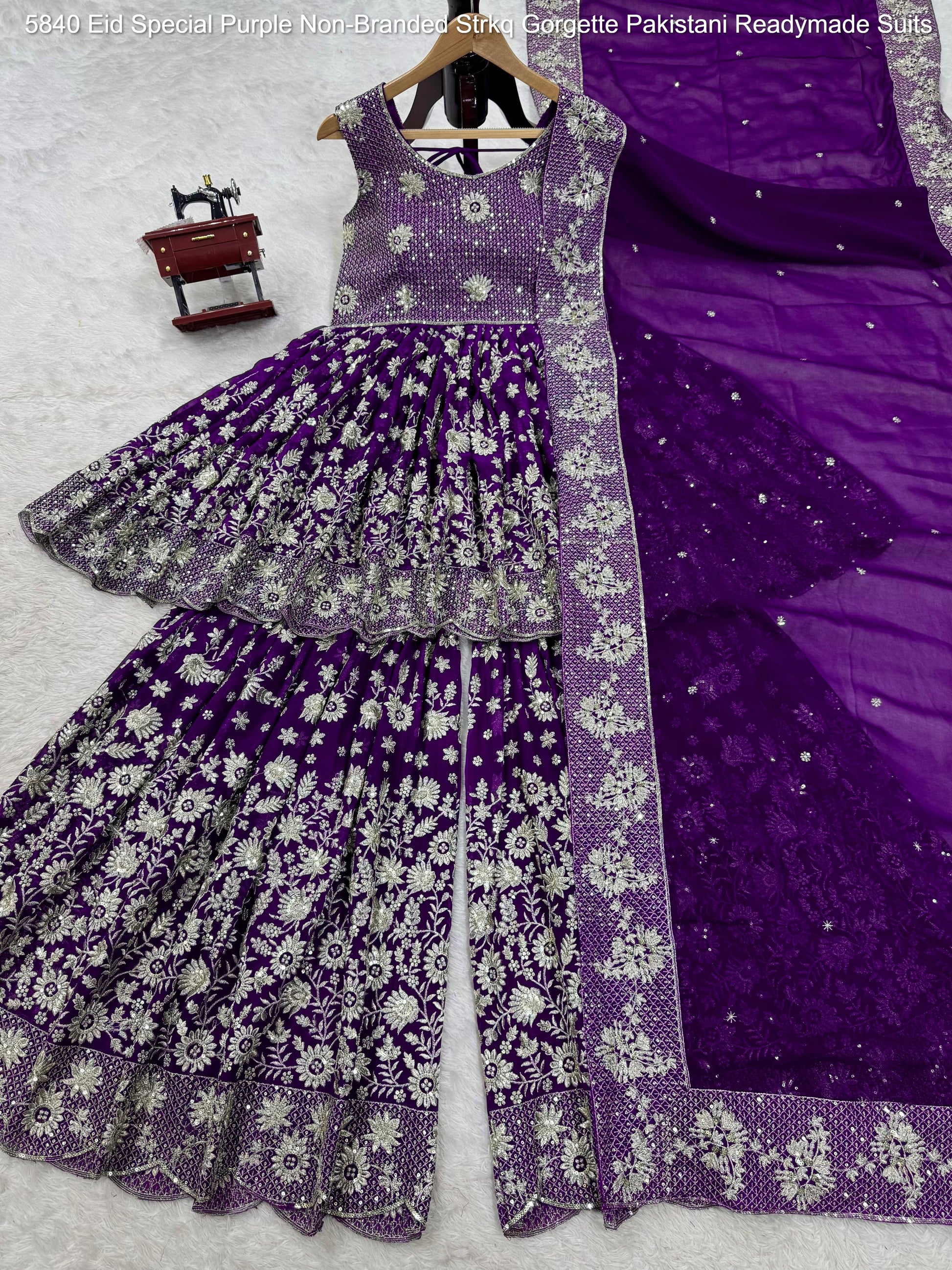 5840 Eid Special Purple Non-Branded Strkq Gorgette Pakistani Readymade Suits