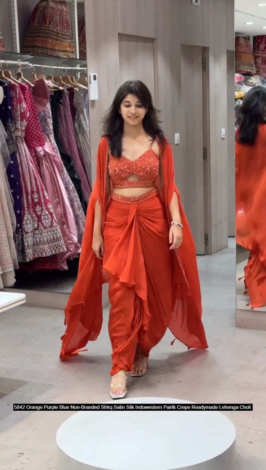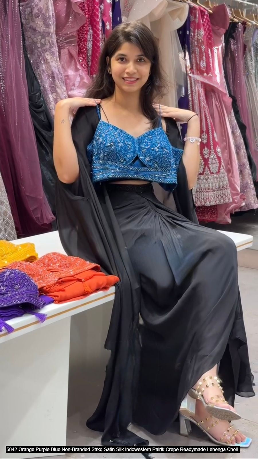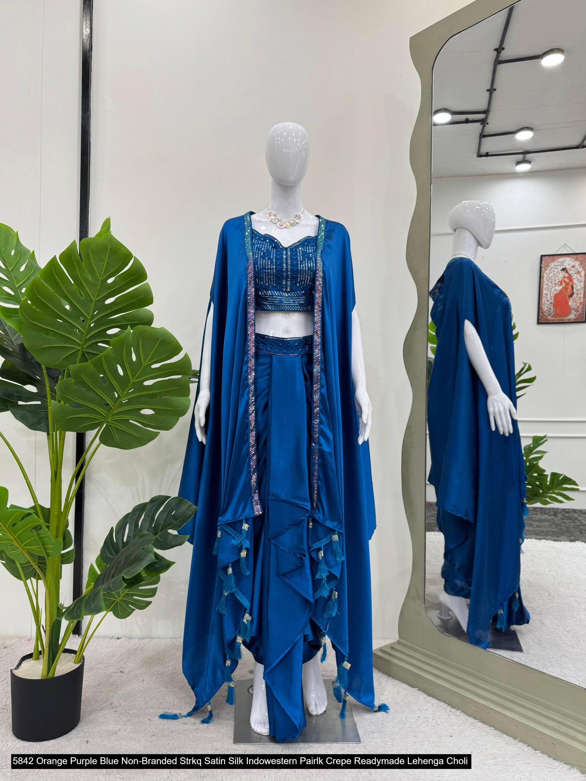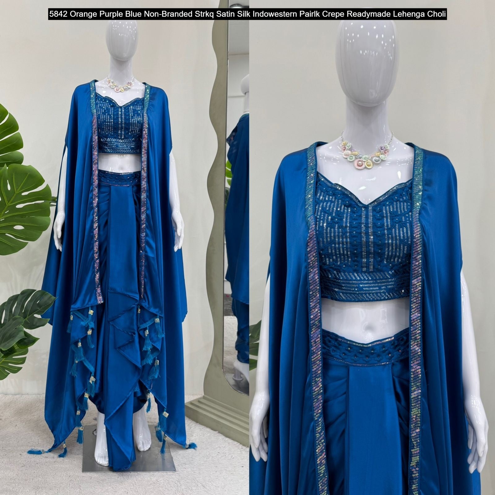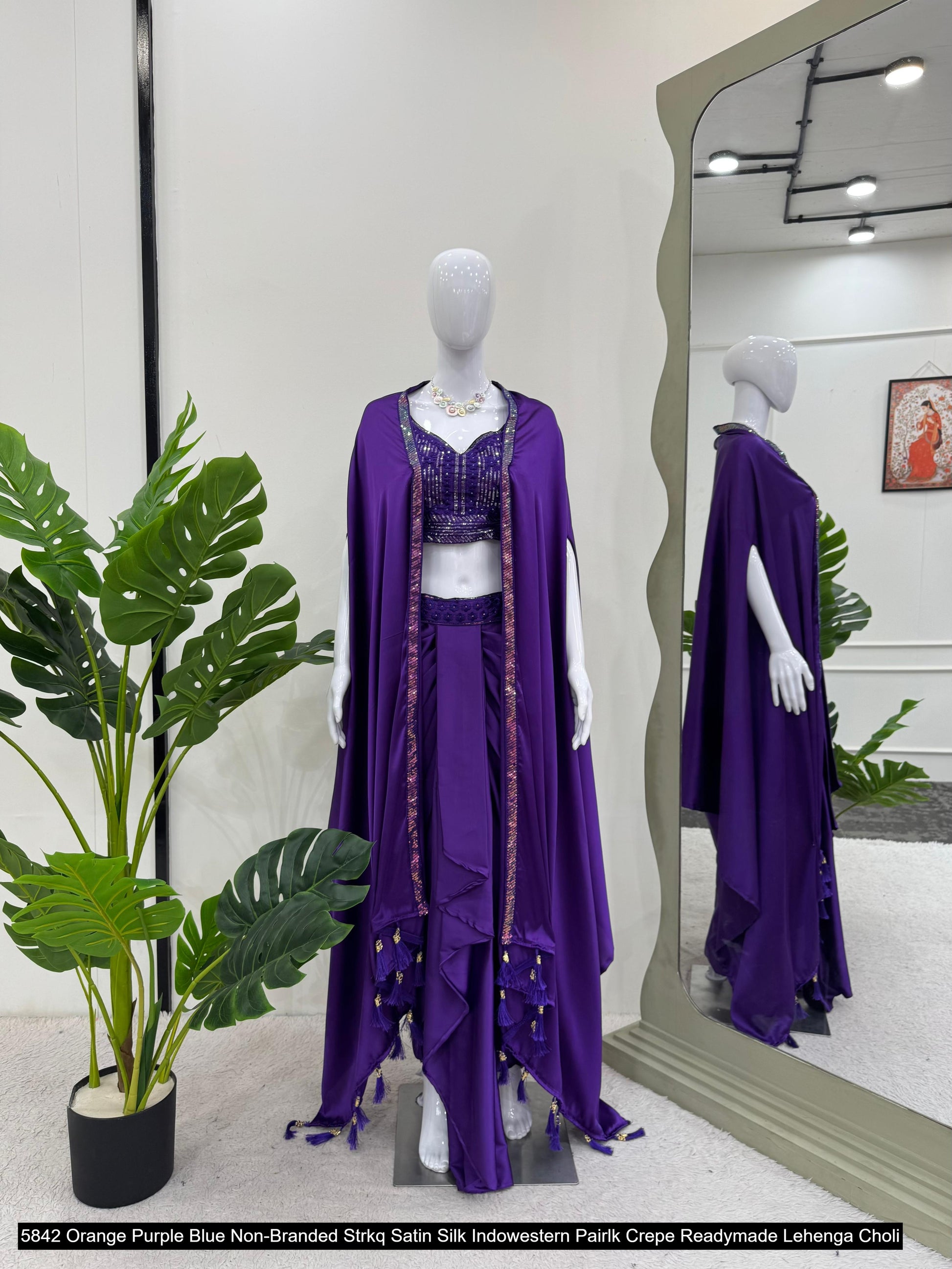 - 5842 Orange Purple Blue Non-Branded Strkq Satin Silk Indowestern Pair Dealer Ahmedabad Surat Wholesale Gujarat India Lowest Price Best Quality Buy Purchase Shipping Kurta Salwaar Kameez Also free Cash on delivery