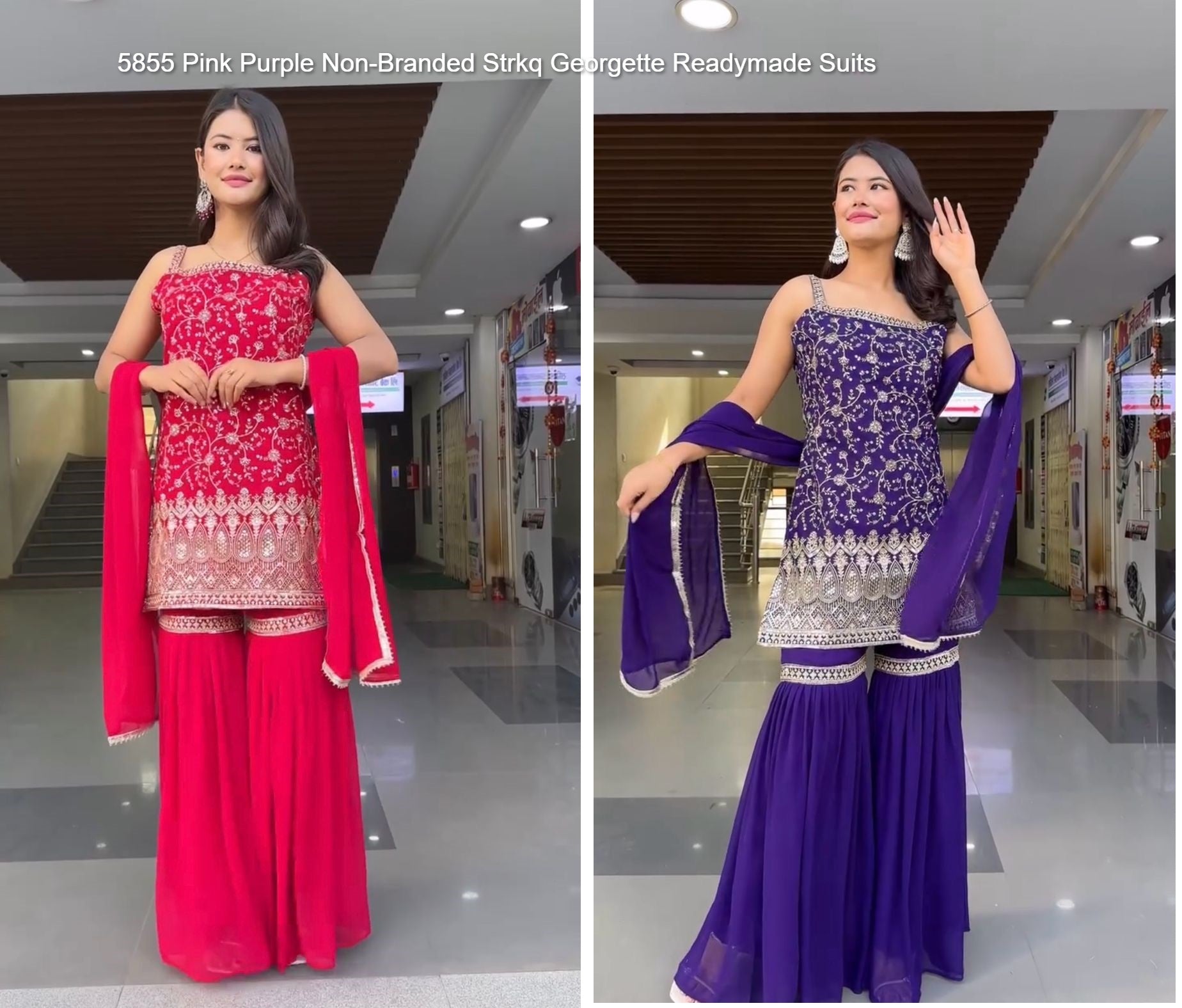 5855 Pink Purple Non-Branded Strkq Georgette Readymade Suits