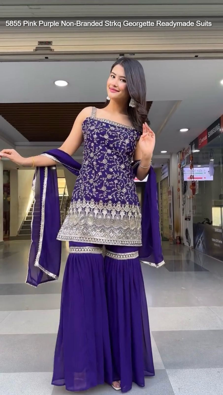 - 5855 Pink Purple Non-Branded Strkq Georgette Readymade Suits Dealer Ahmedabad Surat Wholesale Gujarat India Lowest Price Best Quality Buy Purchase Shipping Kurta Salwaar Kameez Also free Cash on delivery