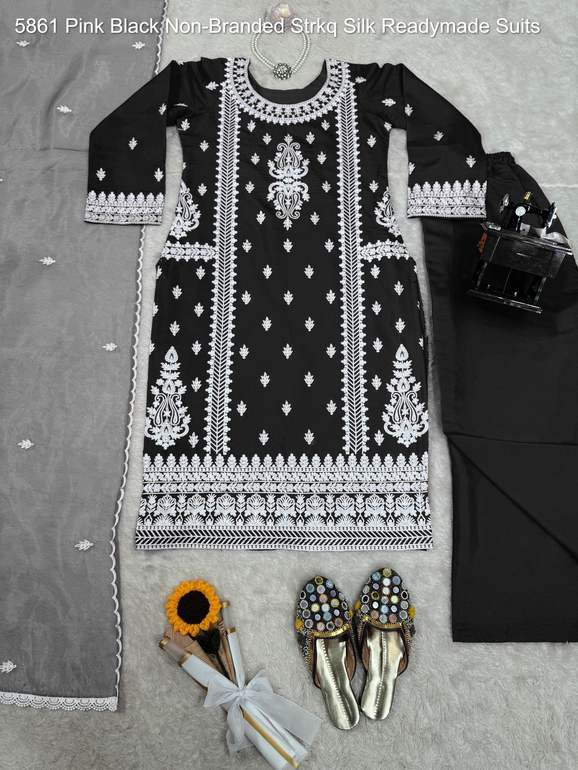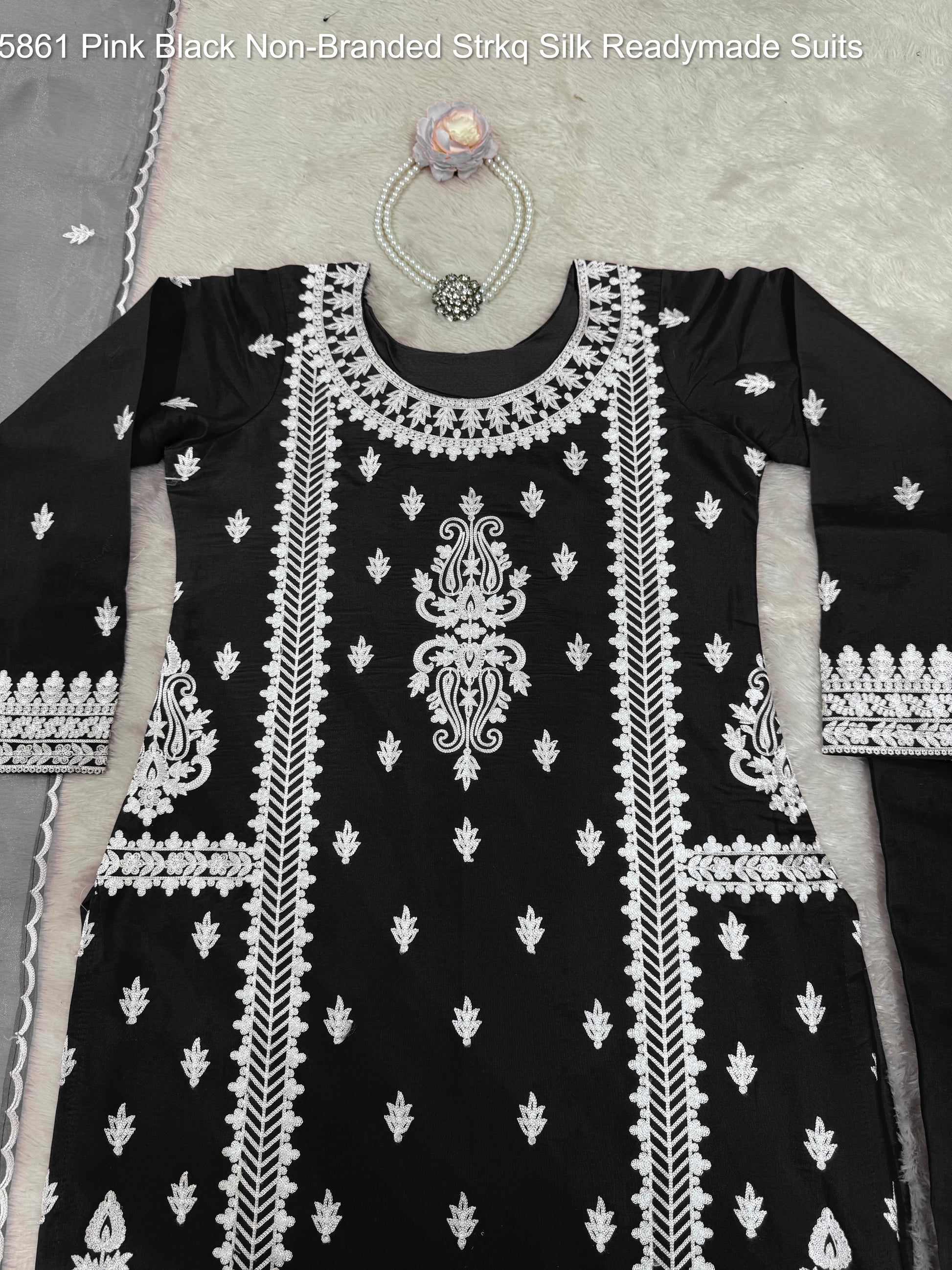 5861 Pink Black Non-Branded Strkq Silk Readymade Suits