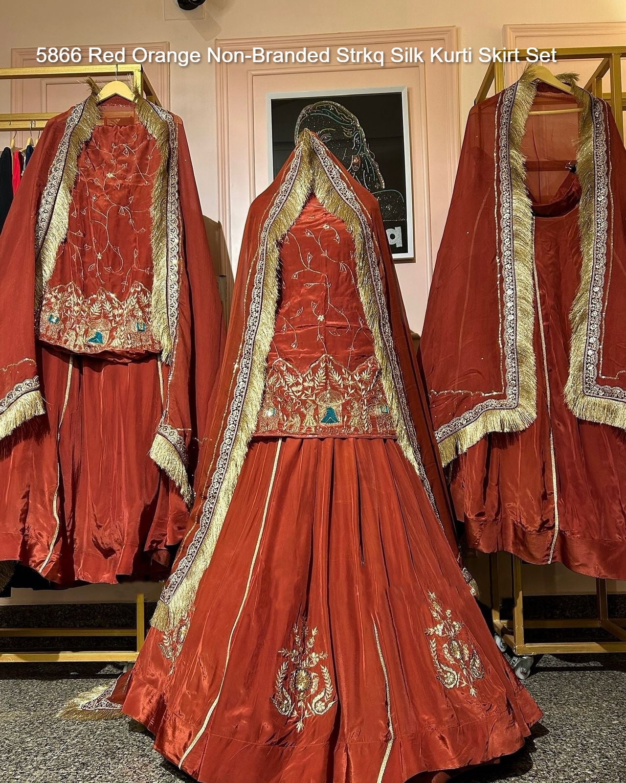 - 5866 Red Orange Non-Branded Strkq Silk Kurti Skirt Set Dealer Ahmedabad Surat Wholesale Gujarat India Lowest Price Best Quality Buy Purchase Shipping Kurta Salwaar Kameez Also free Cash on delivery