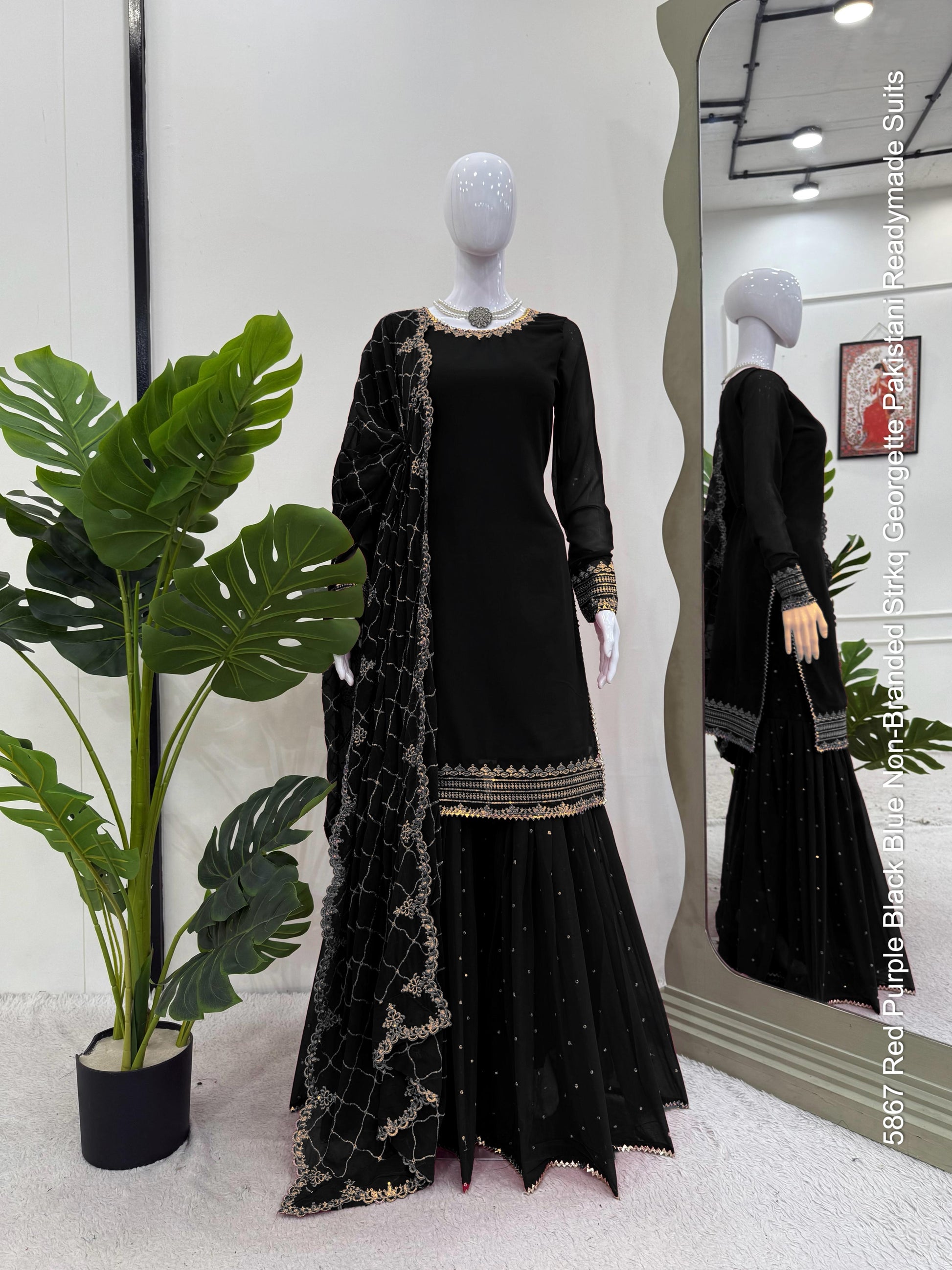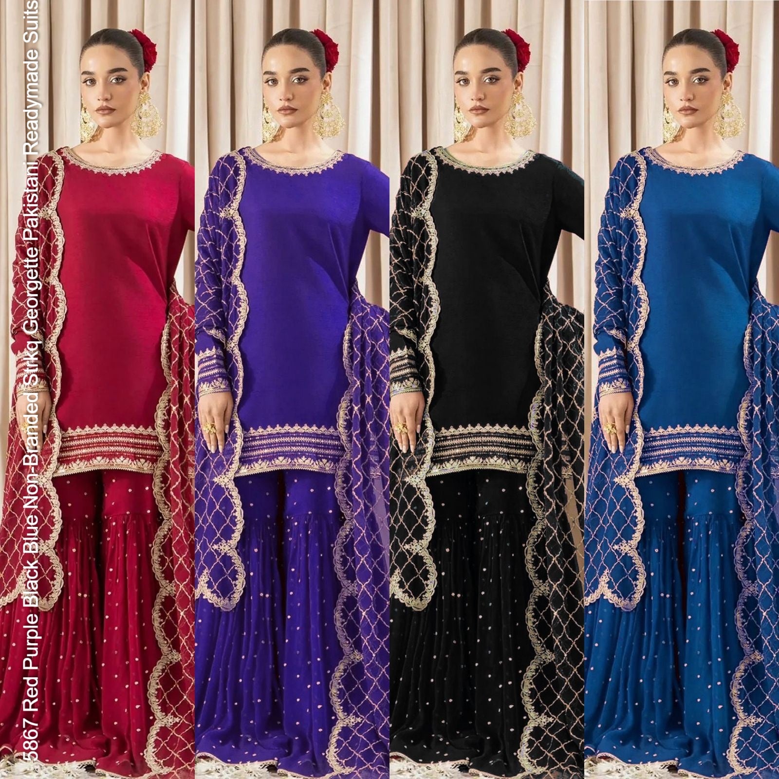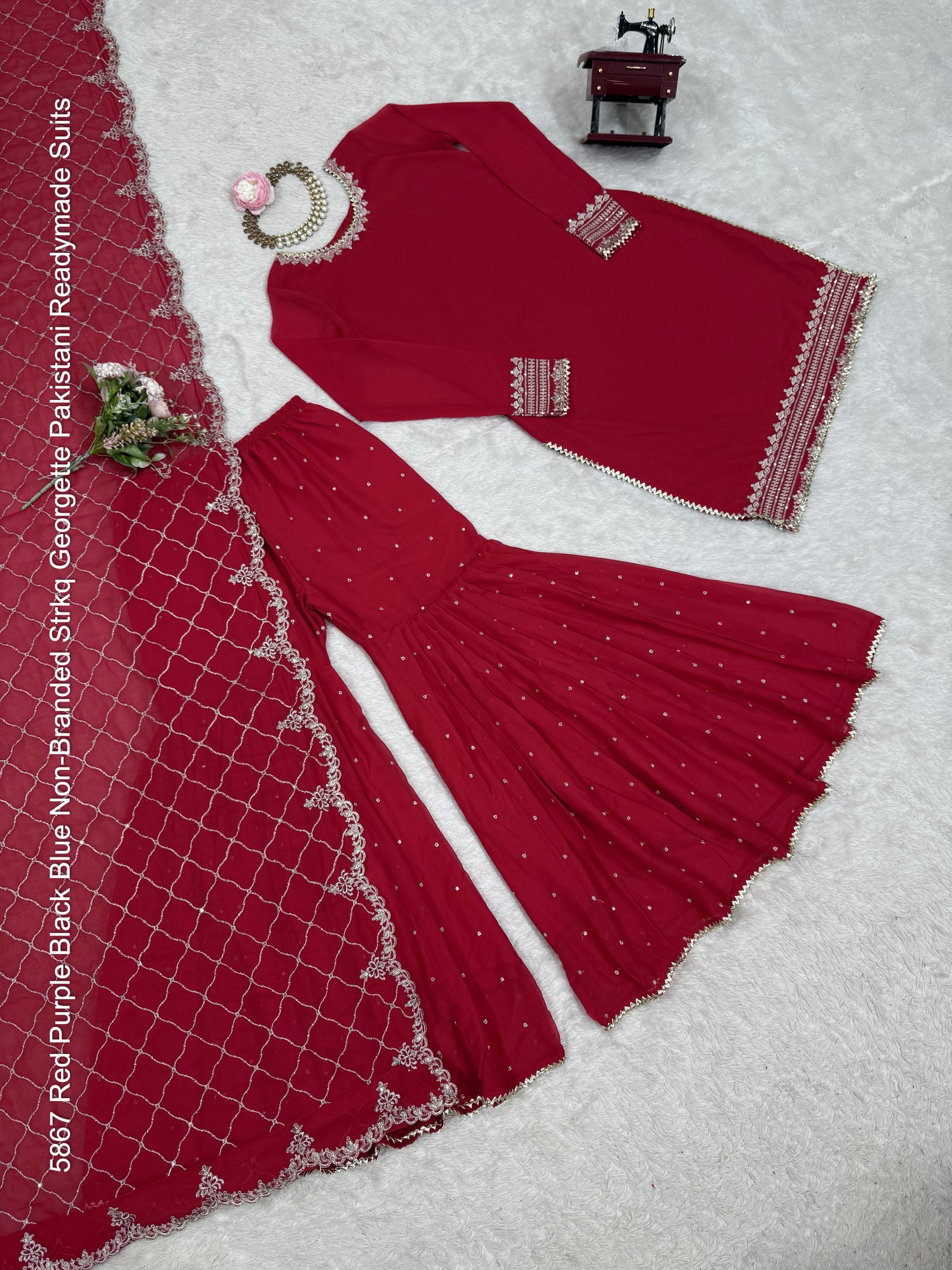 - 5867 Red Purple Black Blue Non-Branded Strkq Georgette Pakistani Readymade Suits Dealer Ahmedabad Surat Wholesale Gujarat India Lowest Price Best Quality Buy Purchase Shipping Kurta Salwaar Kameez Also free Cash on delivery