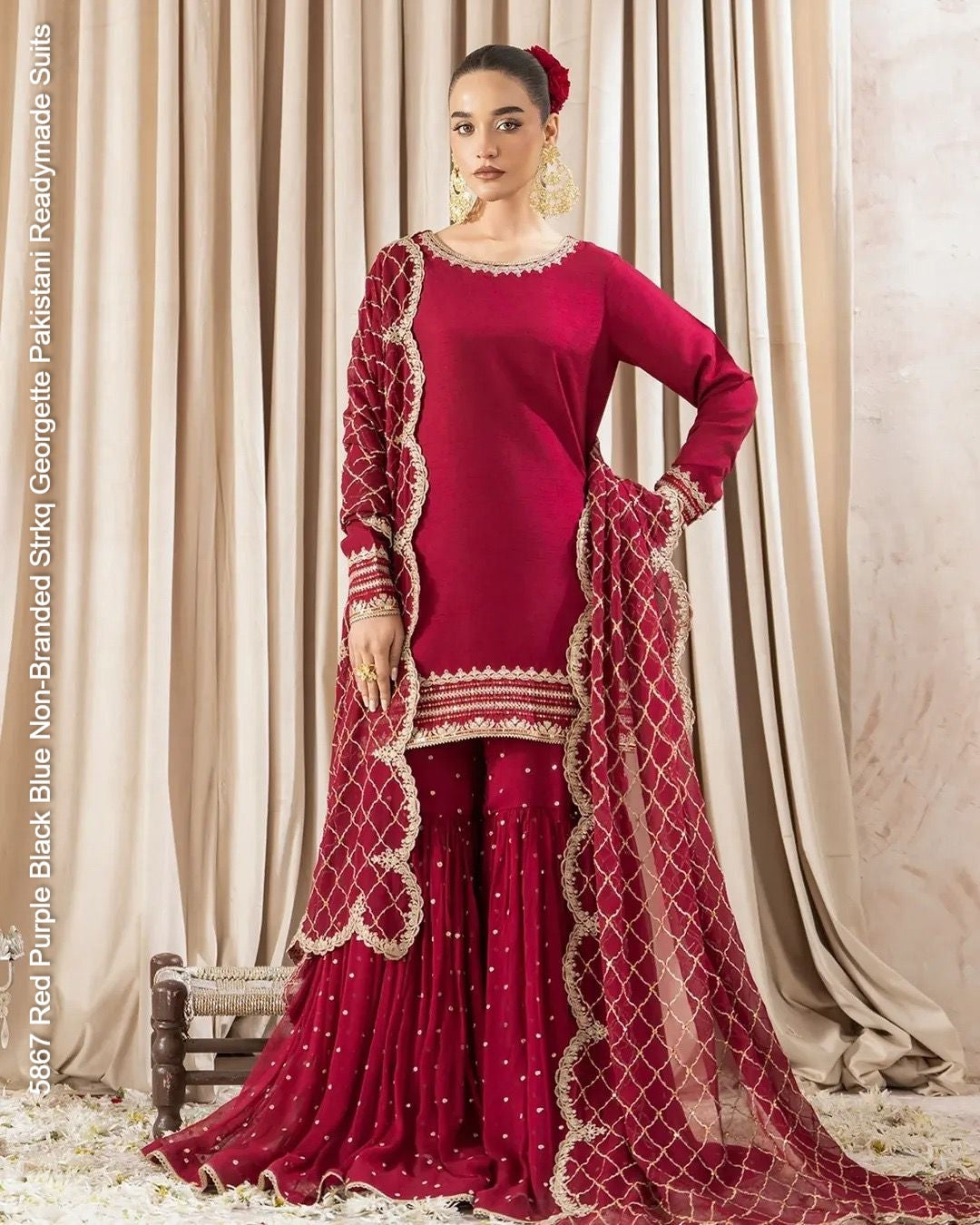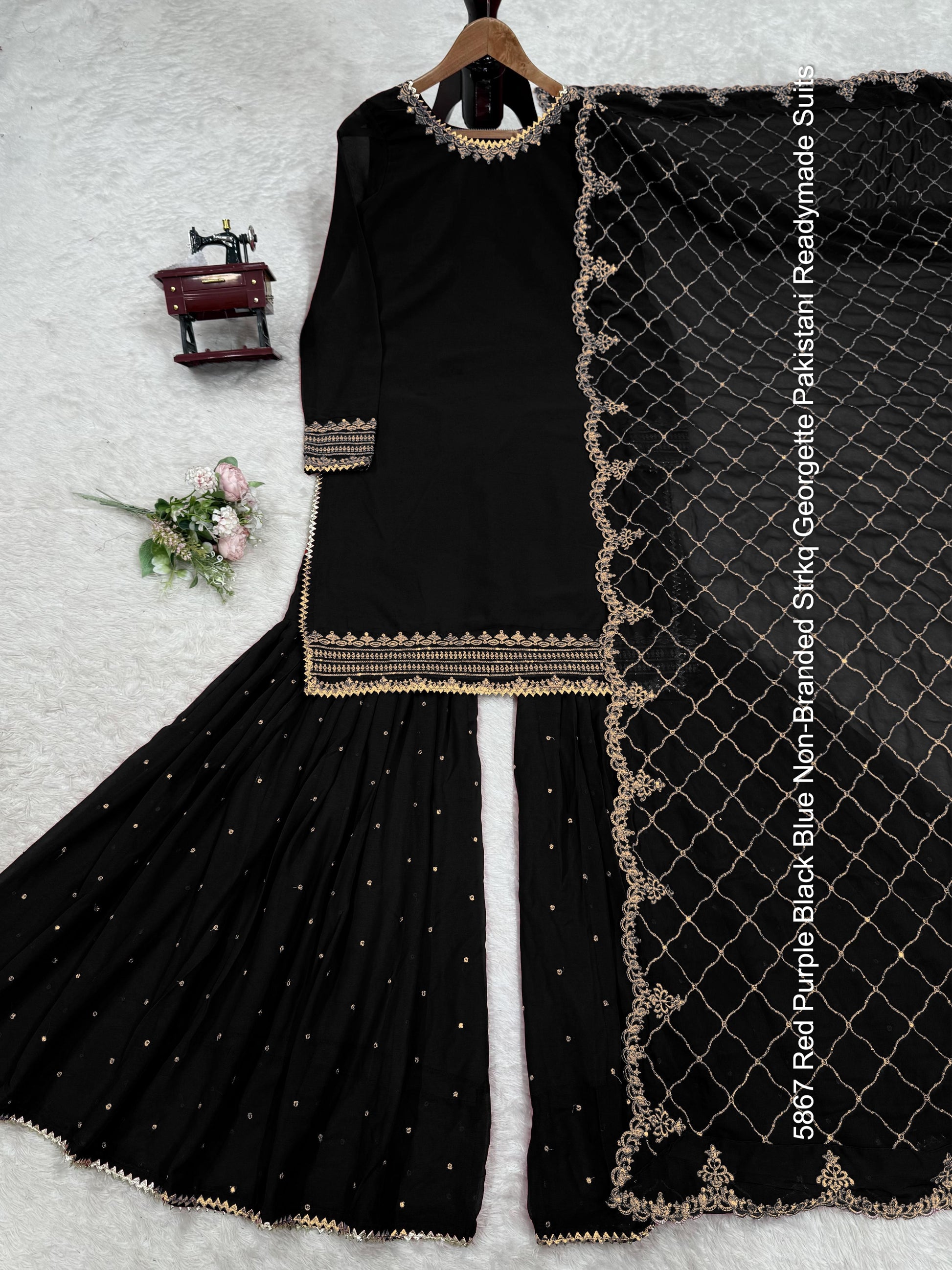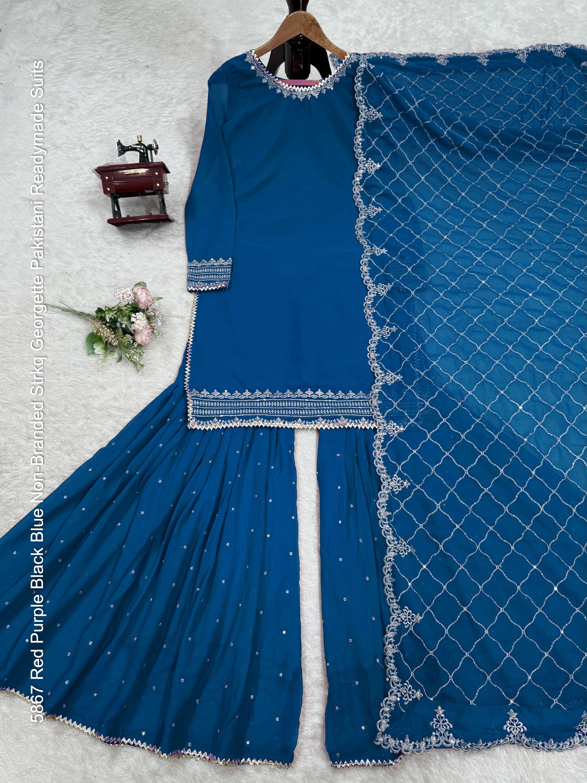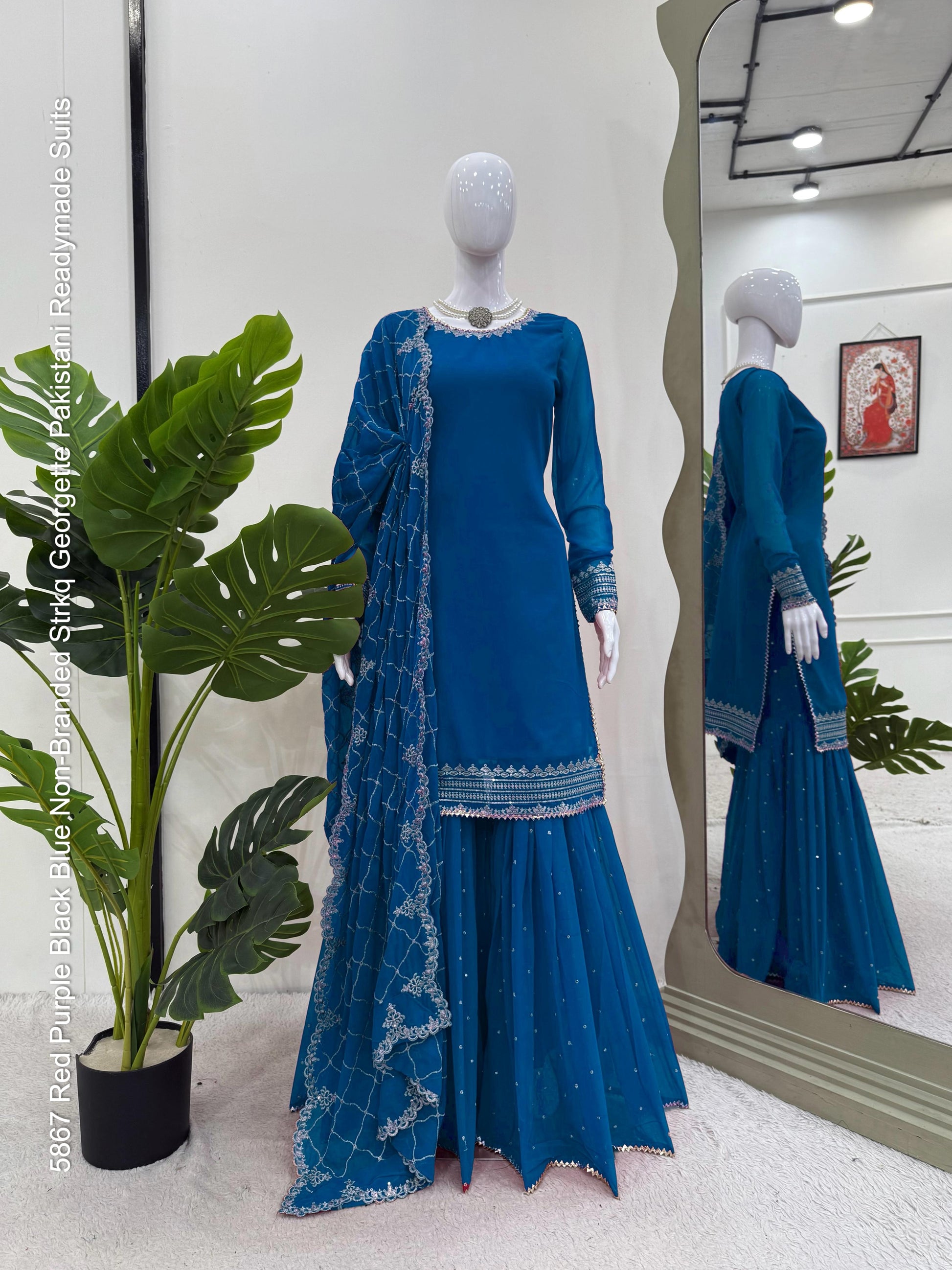 - 5867 Red Purple Black Blue Non-Branded Strkq Georgette Pakistani Readymade Suits Dealer Ahmedabad Surat Wholesale Gujarat India Lowest Price Best Quality Buy Purchase Shipping Kurta Salwaar Kameez Also free Cash on delivery
