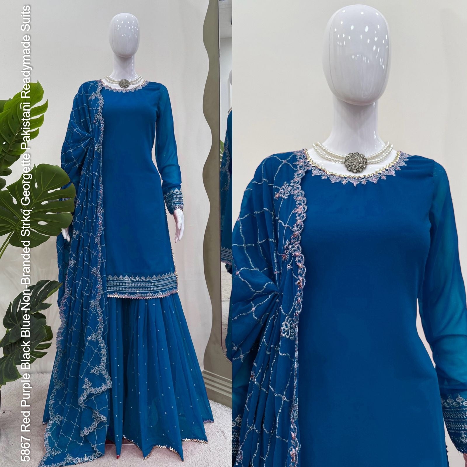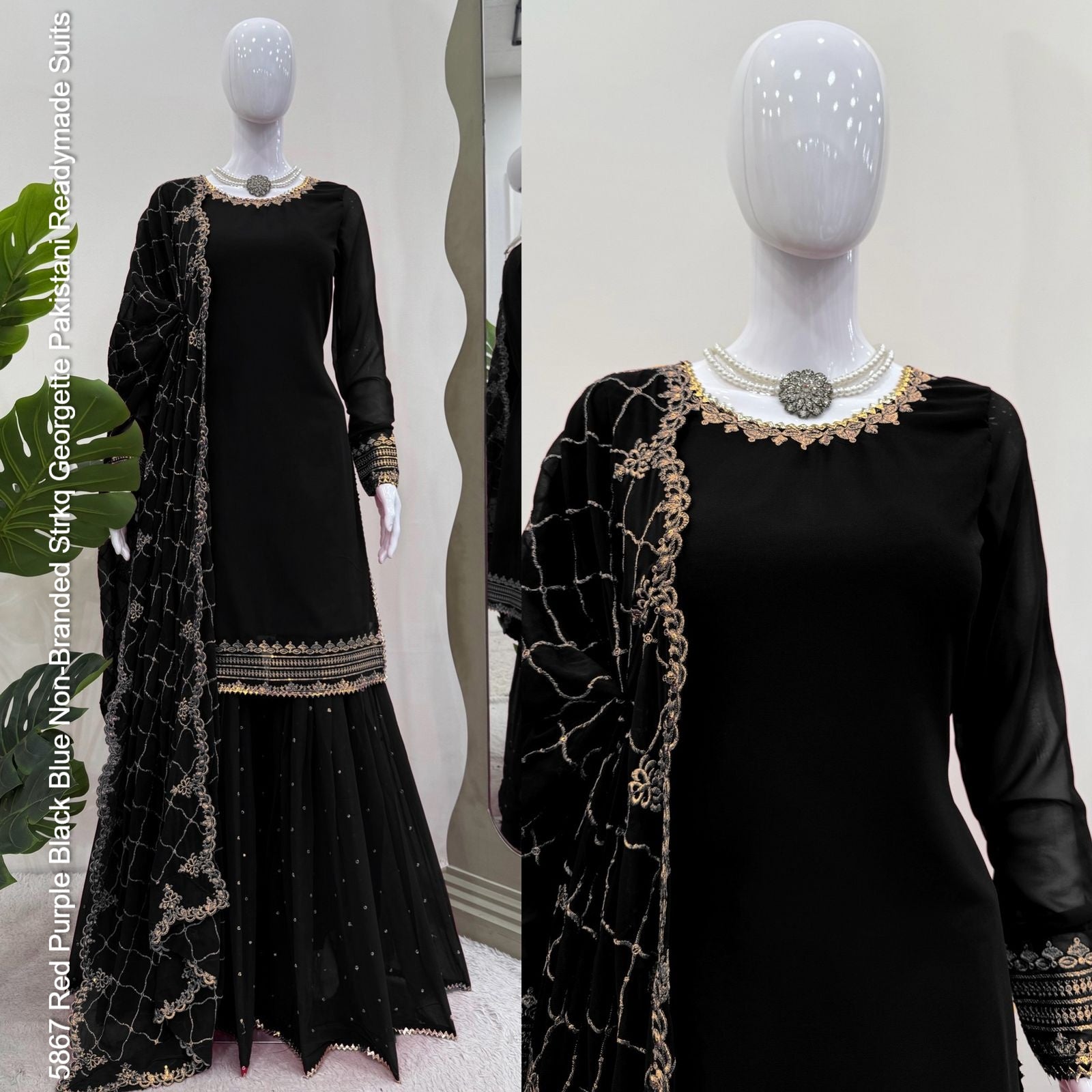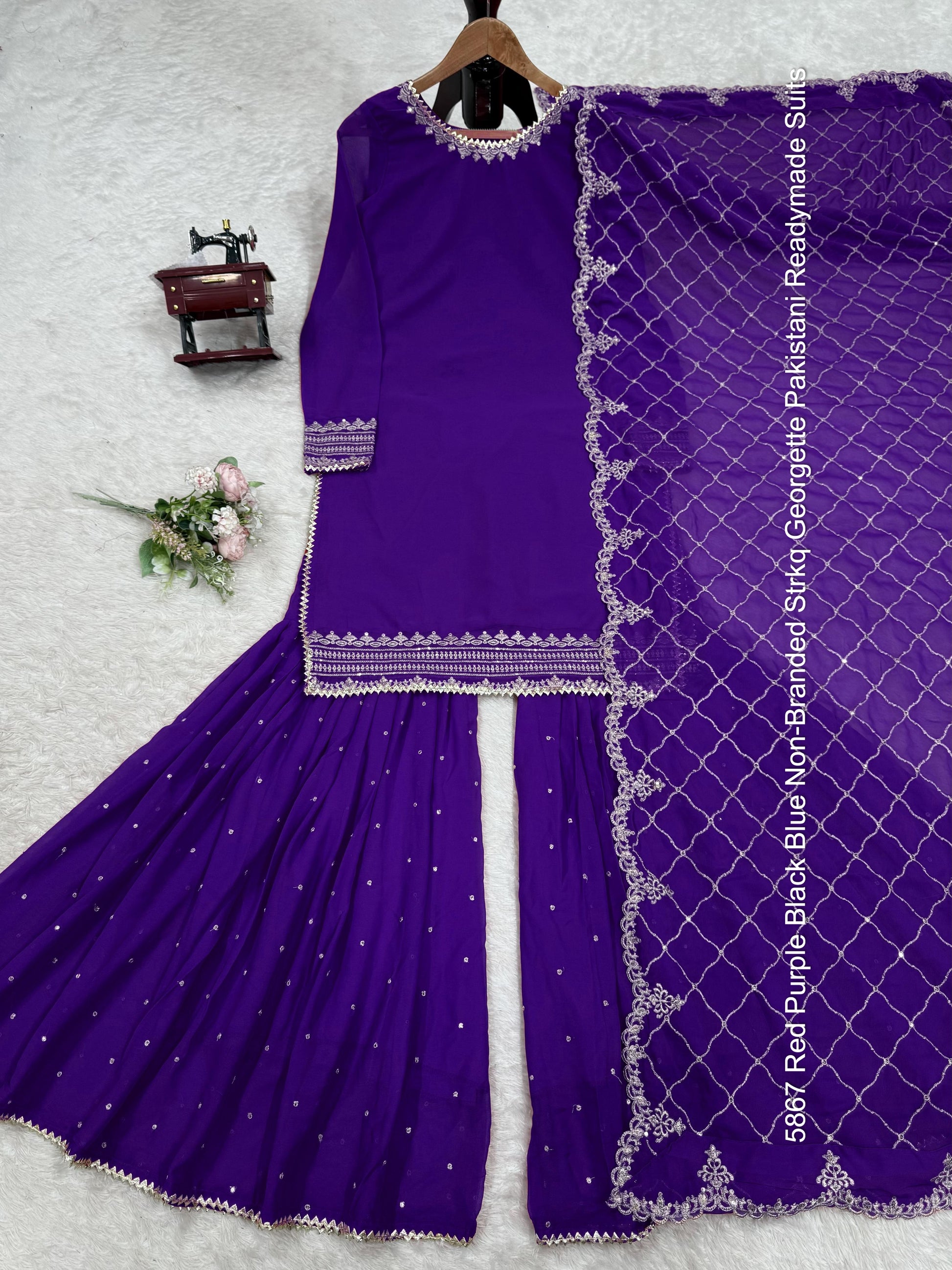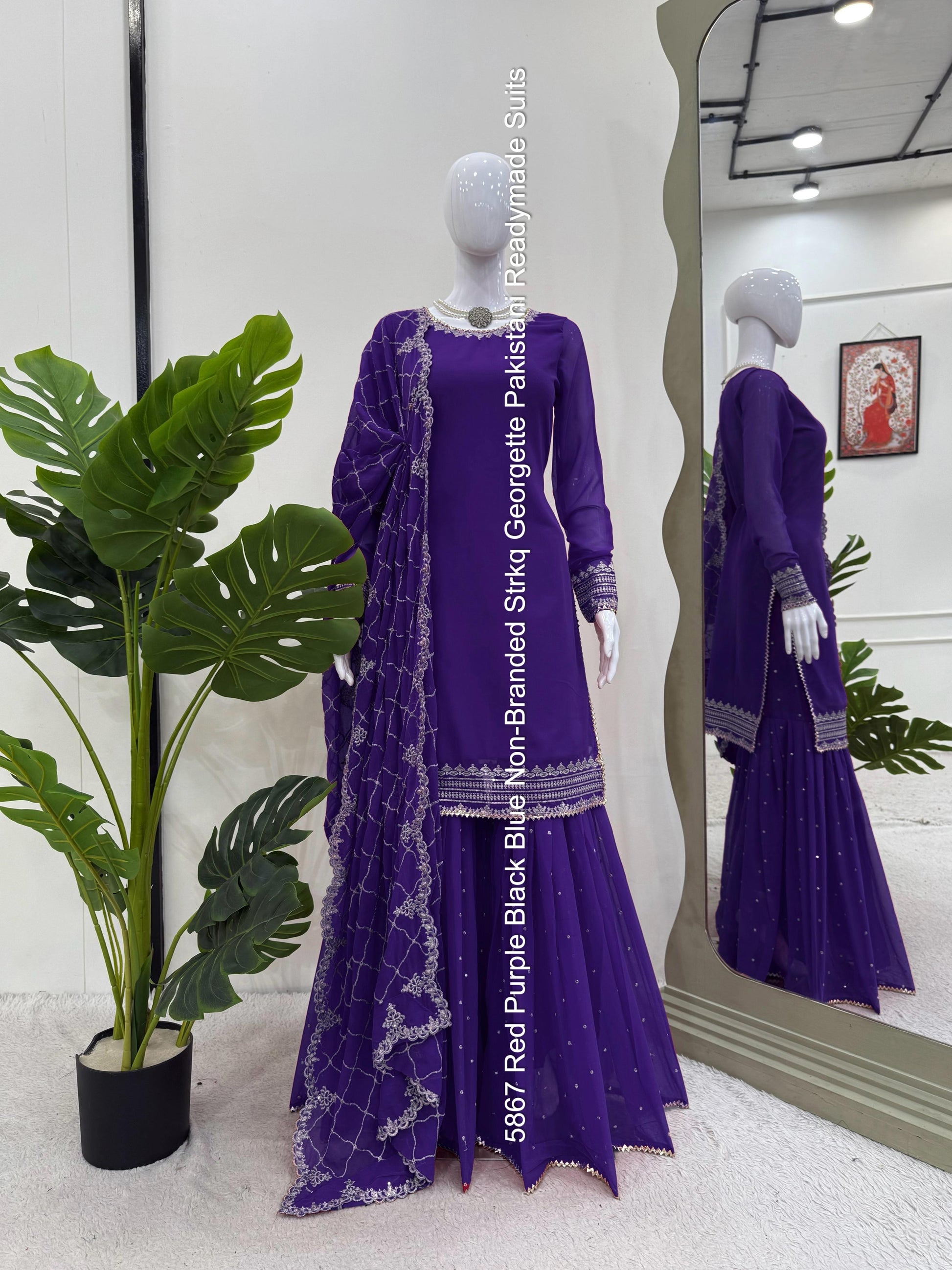 5867 Red Purple Black Blue Non-Branded Strkq Georgette Pakistani Readymade Suits