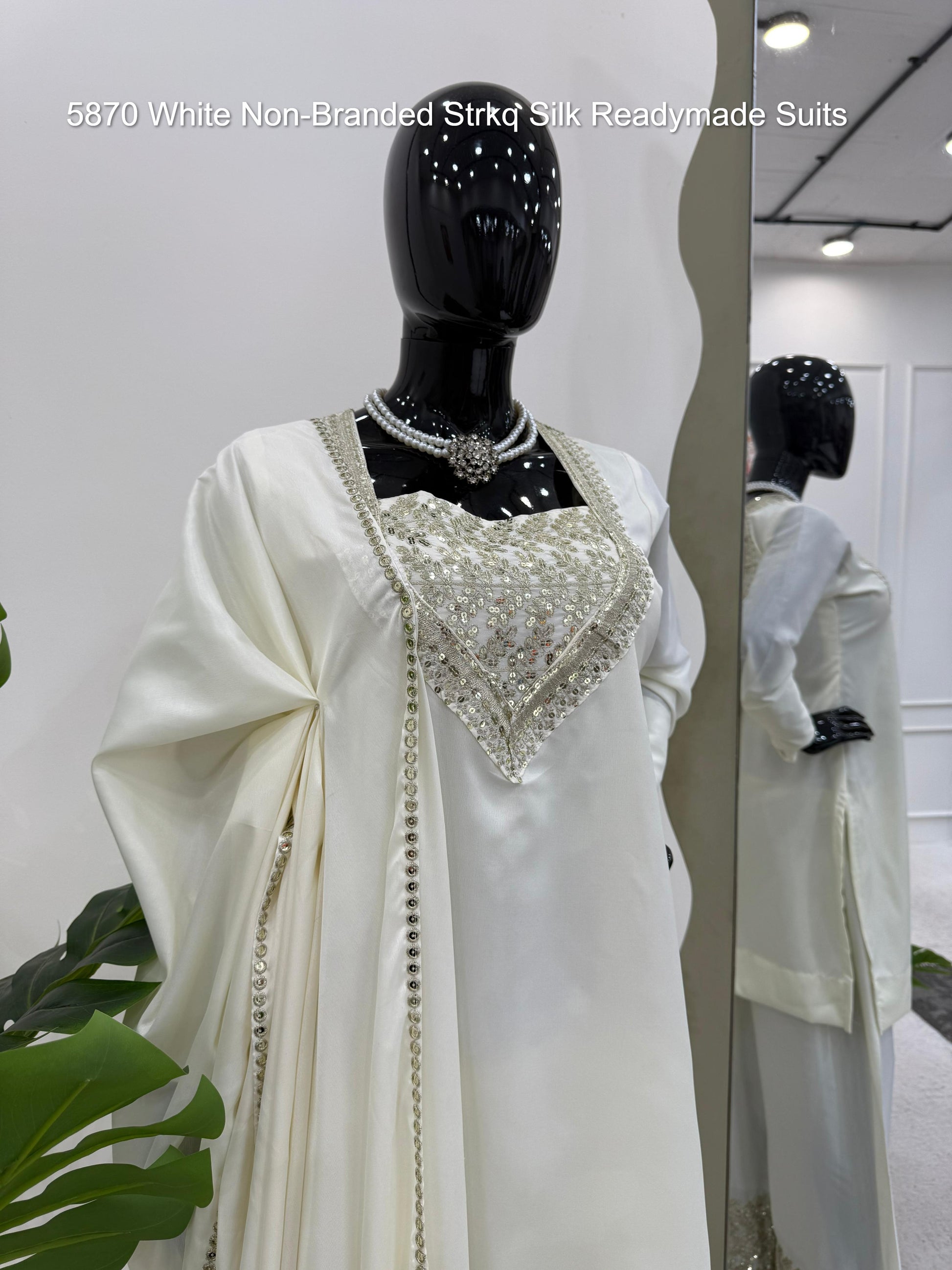 5870 White Non-Branded Strkq Silk Readymade Suits