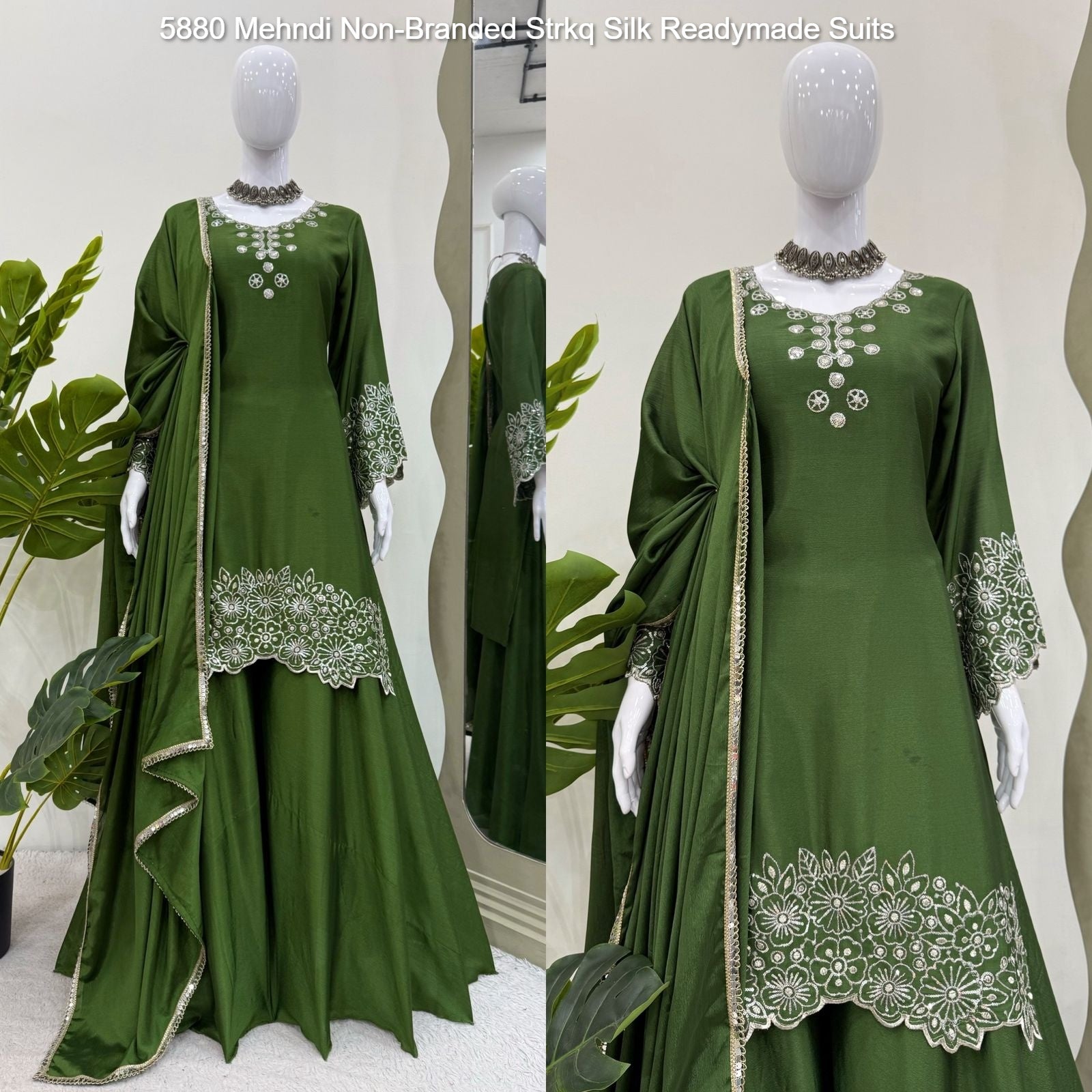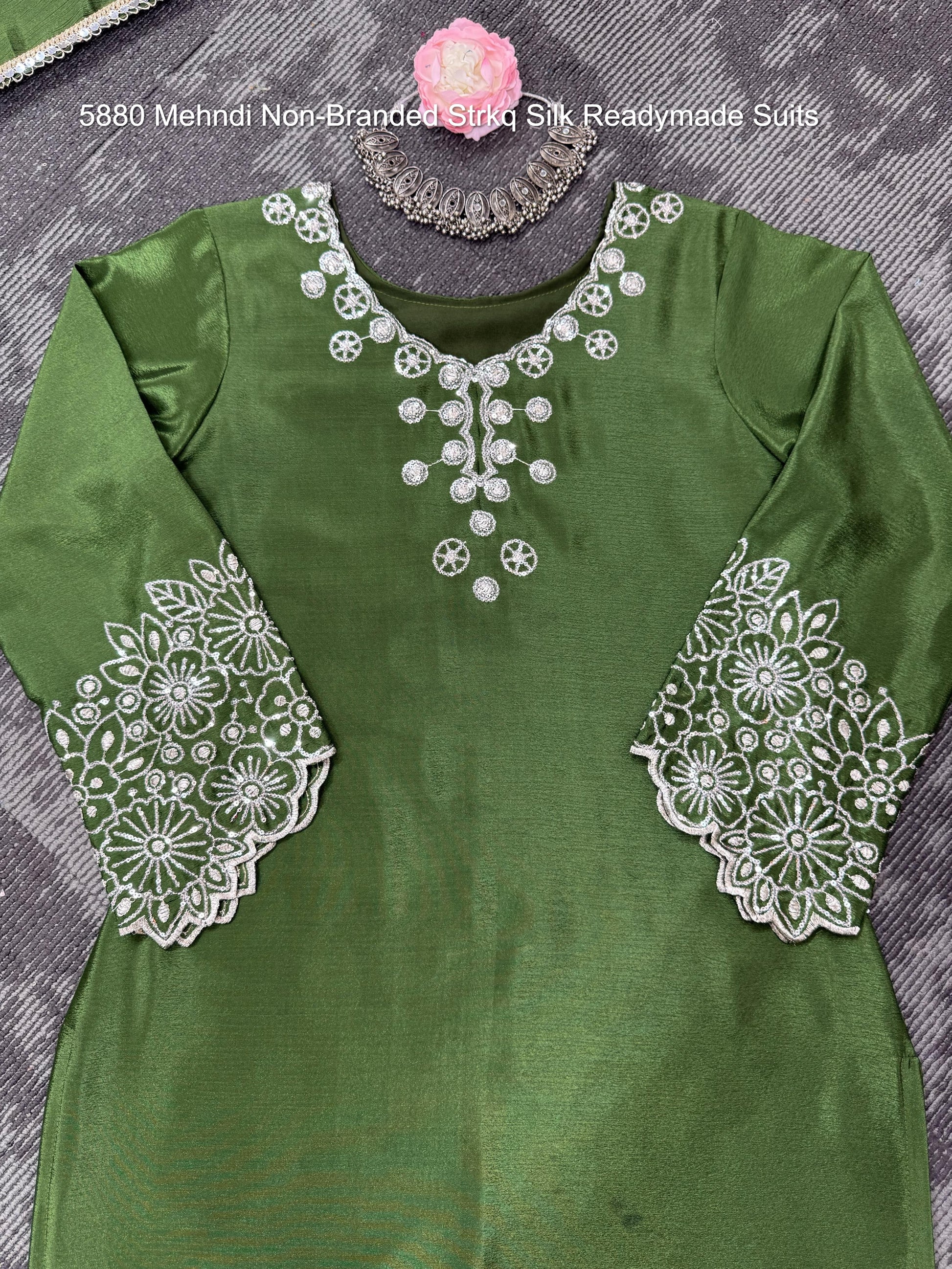 5880 Mehndi Non-Branded Strkq Silk Readymade Suits