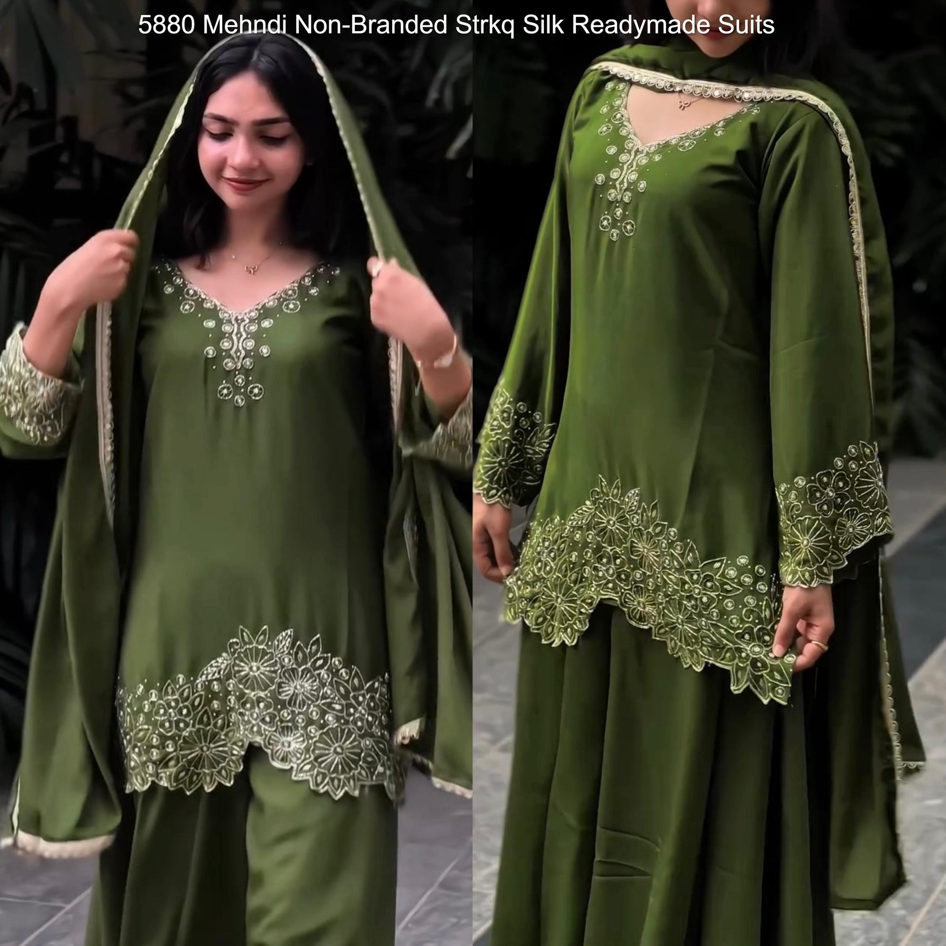 - 5880 Mehndi Non-Branded Strkq Silk Readymade Suits Dealer Ahmedabad Surat Wholesale Gujarat India Lowest Price Best Quality Buy Purchase Shipping Kurta Salwaar Kameez Also free Cash on delivery