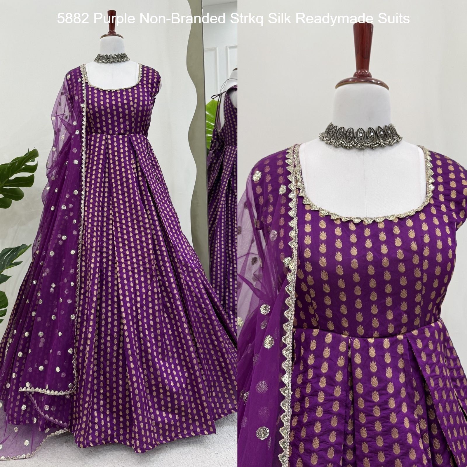 5882 Purple Non-Branded Strkq Silk Readymade Suits