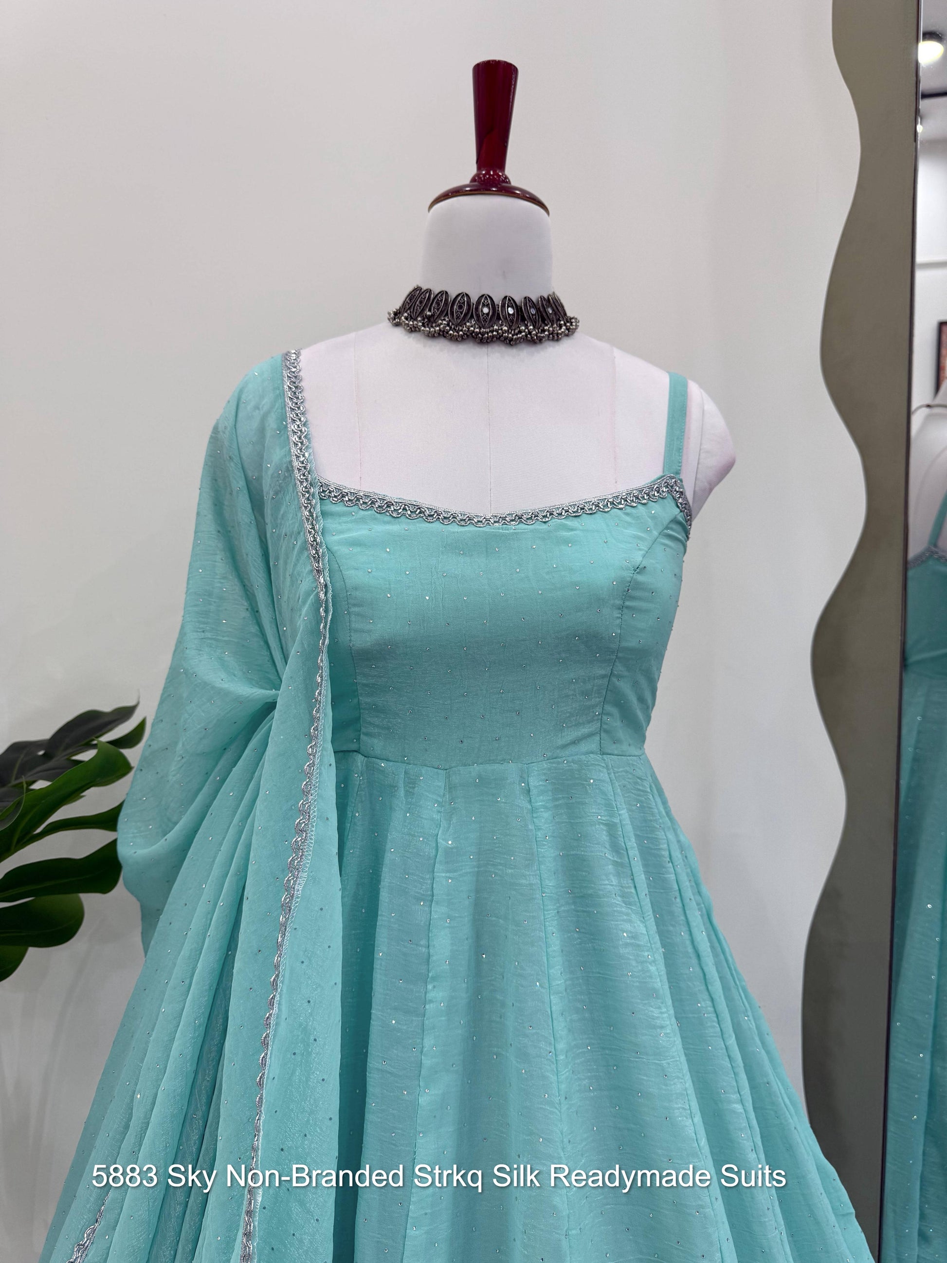 5883 Sky Non-Branded Strkq Silk Readymade Suits