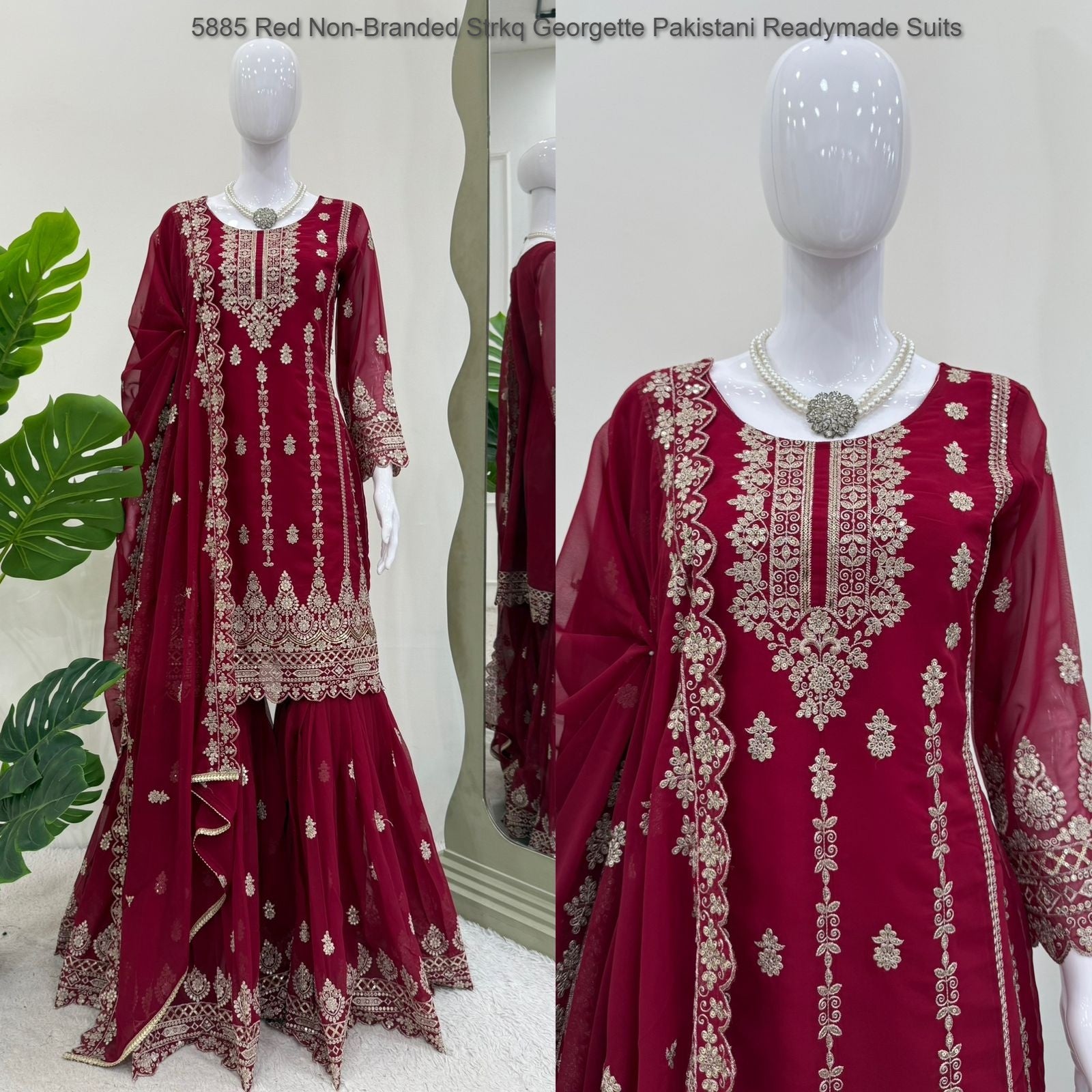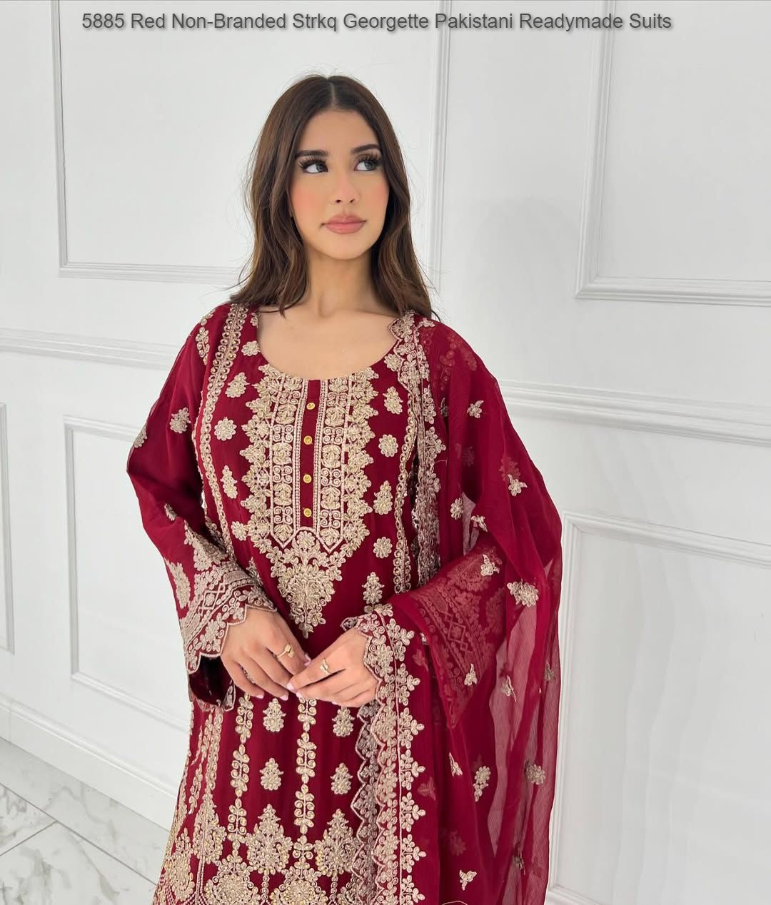5885 Red Non-Branded Strkq Georgette Pakistani Readymade Suits