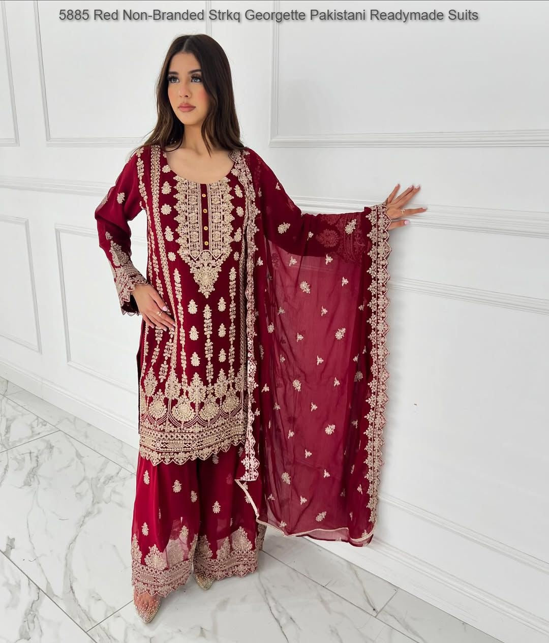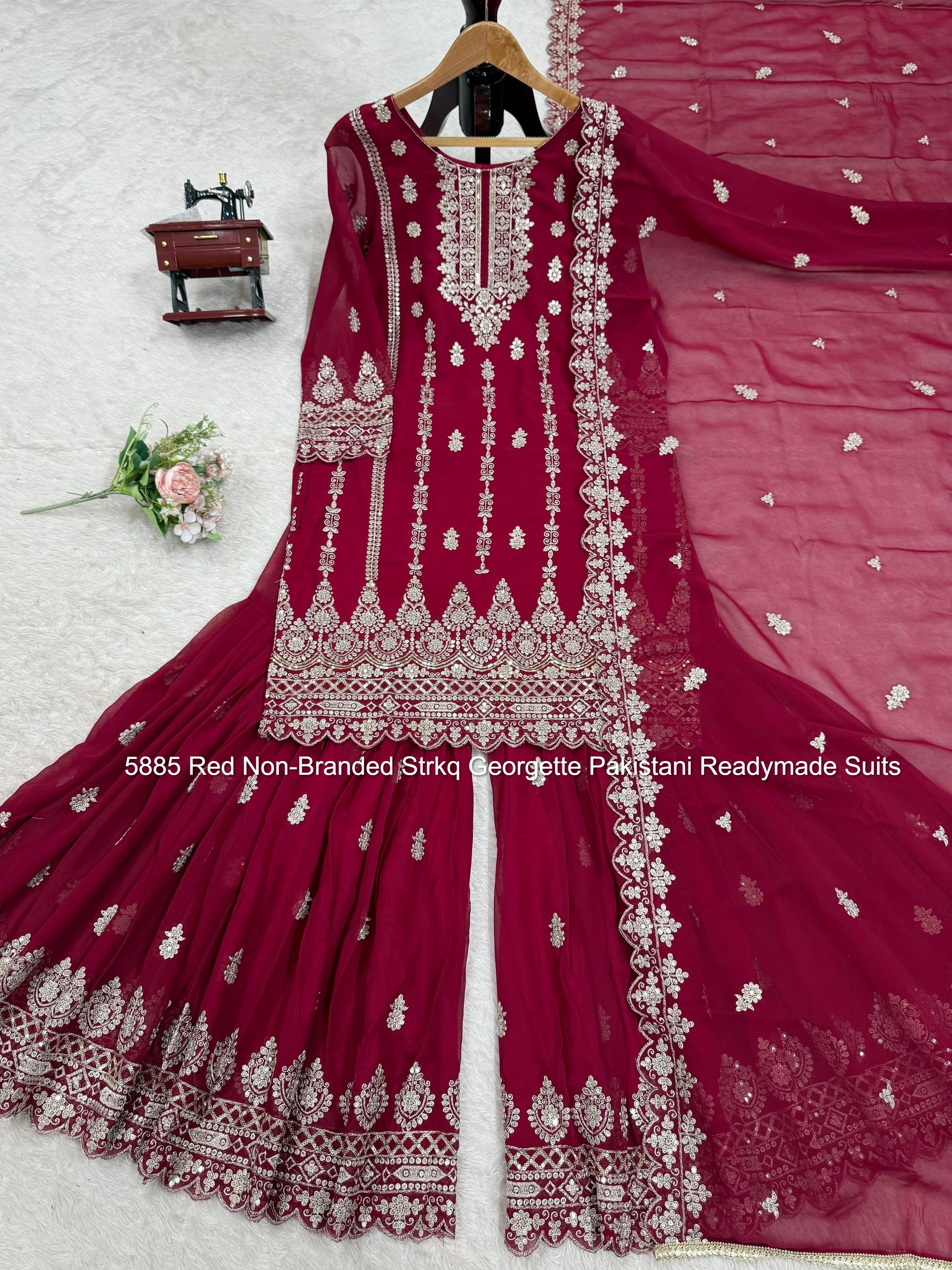 - 5885 Red Non-Branded Strkq Georgette Pakistani Readymade Suits Dealer Ahmedabad Surat Wholesale Gujarat India Lowest Price Best Quality Buy Purchase Shipping Kurta Salwaar Kameez Also free Cash on delivery
