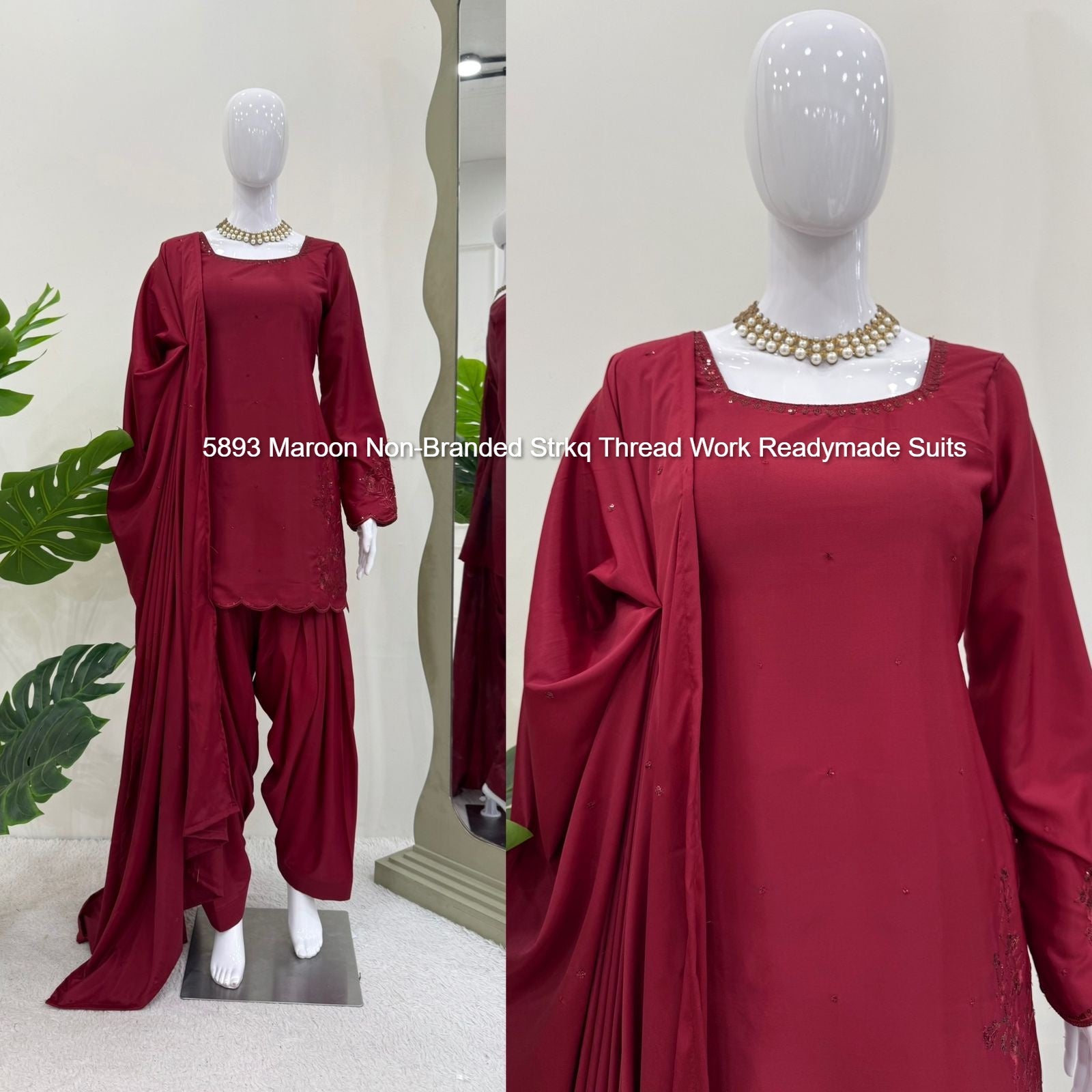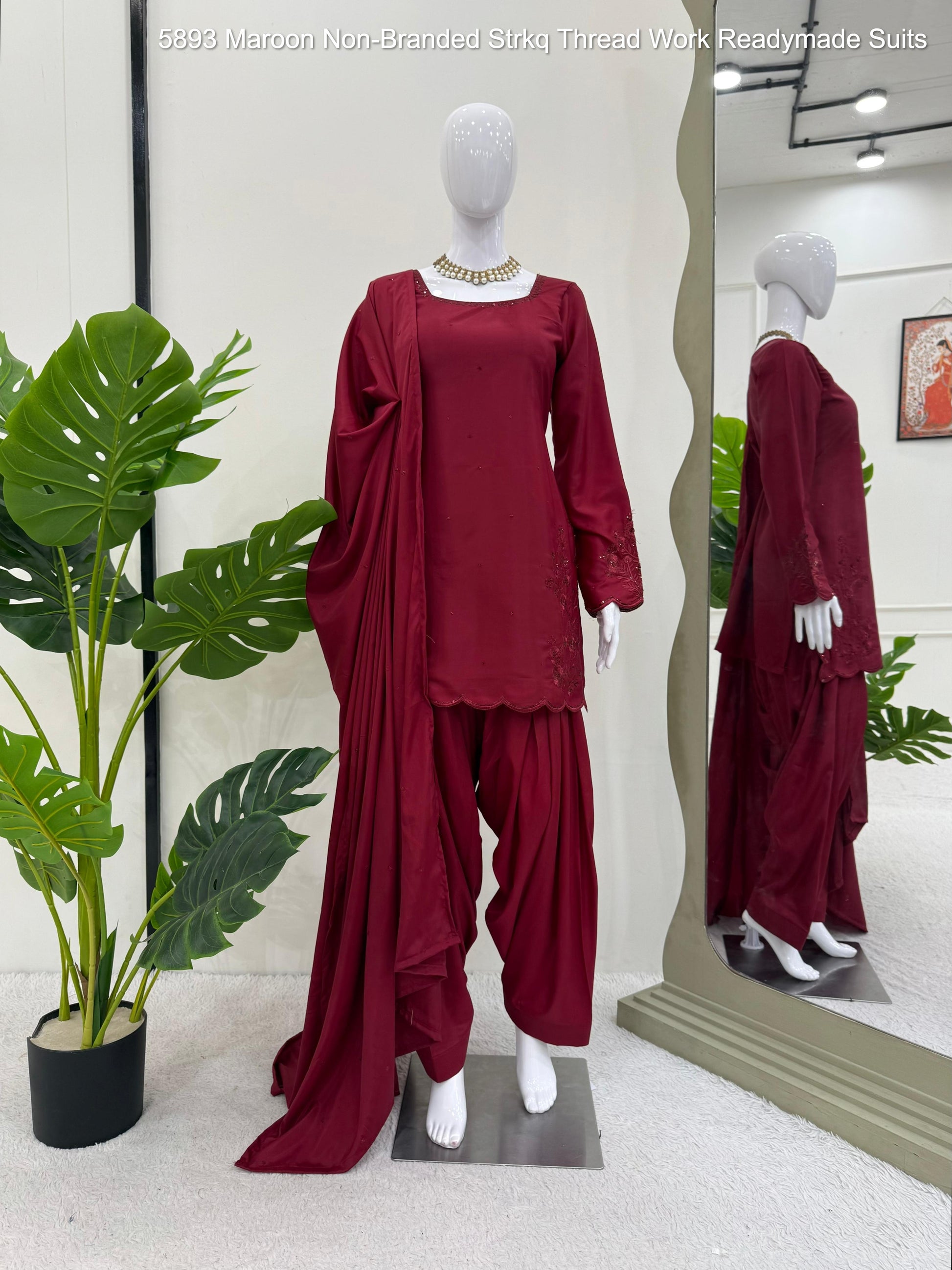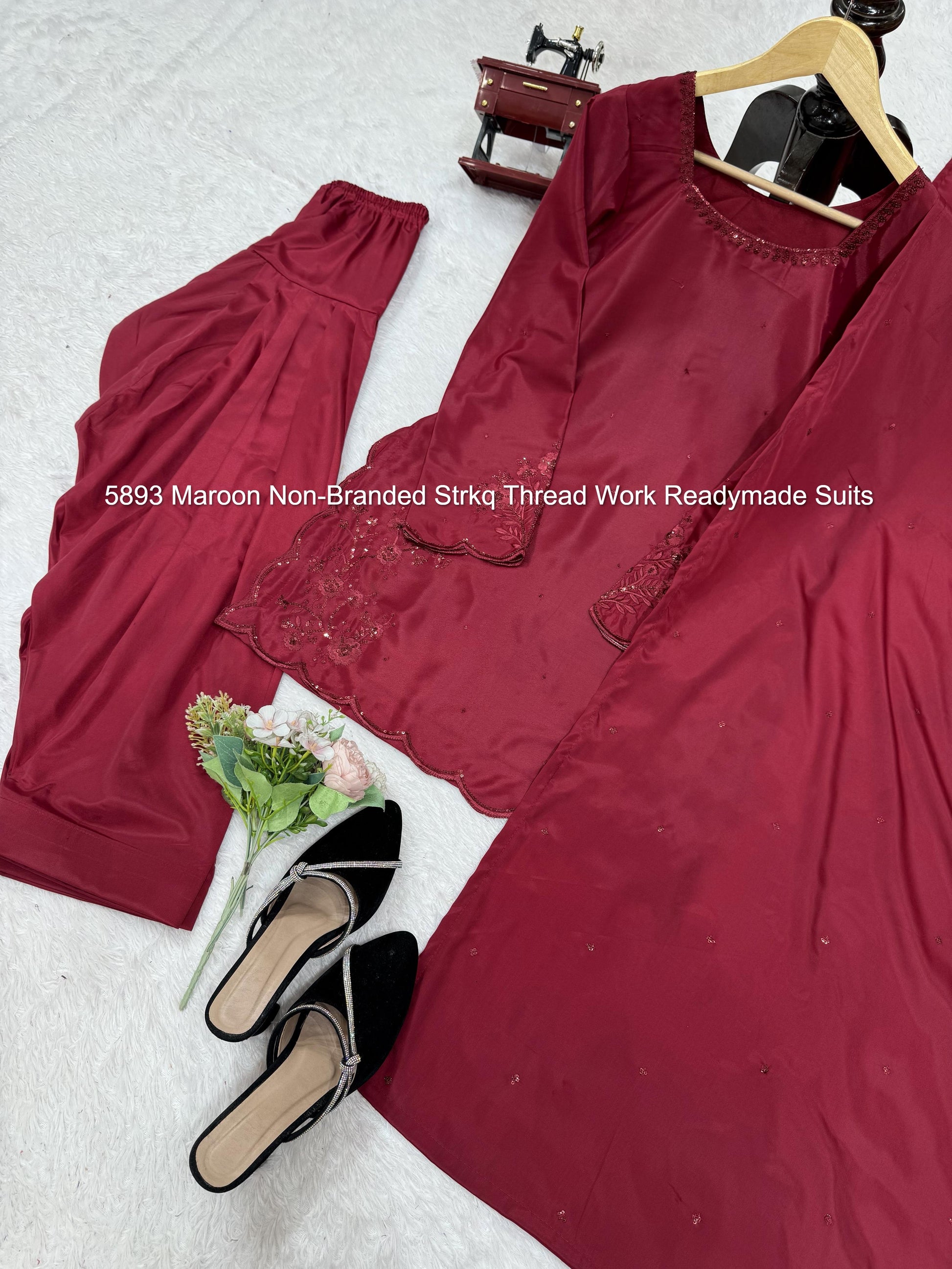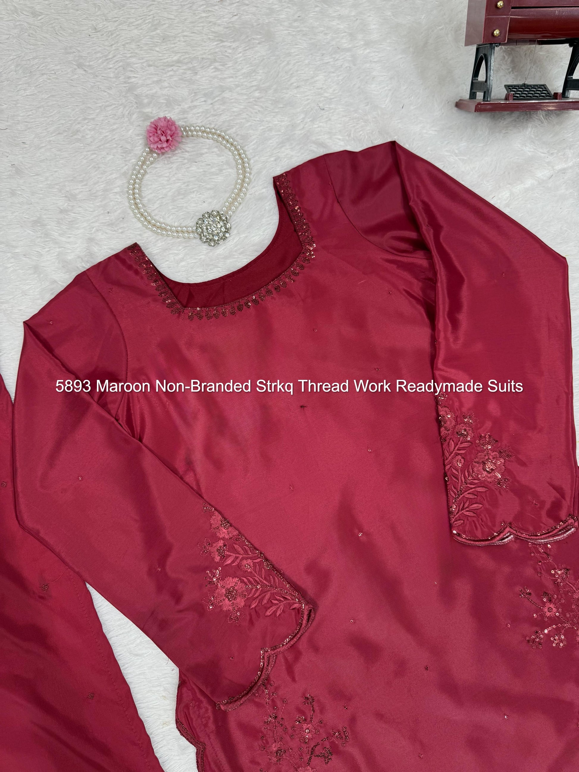 5893 Maroon Non-Branded Strkq Thread Work Readymade Suits