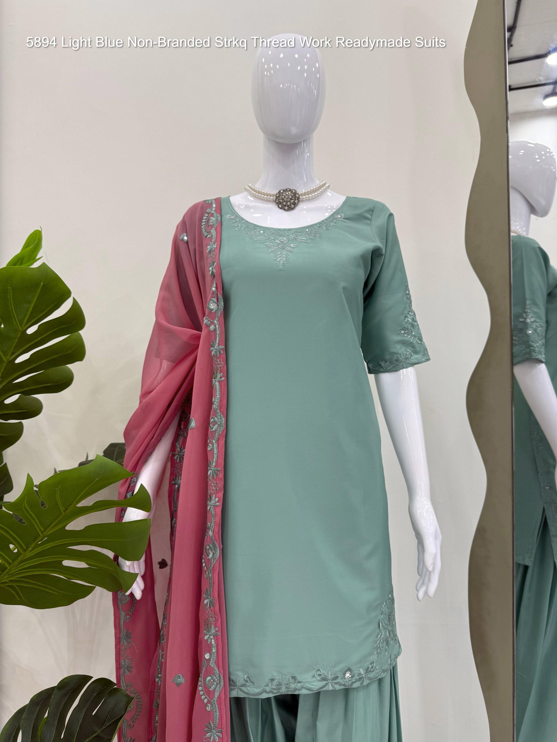 5894 Light Blue Non-Branded Strkq Thread Work Readymade Suits