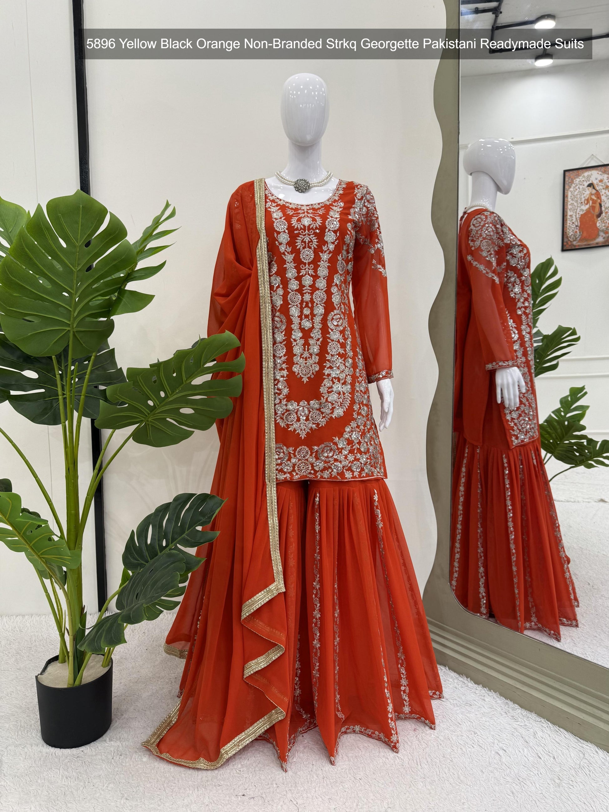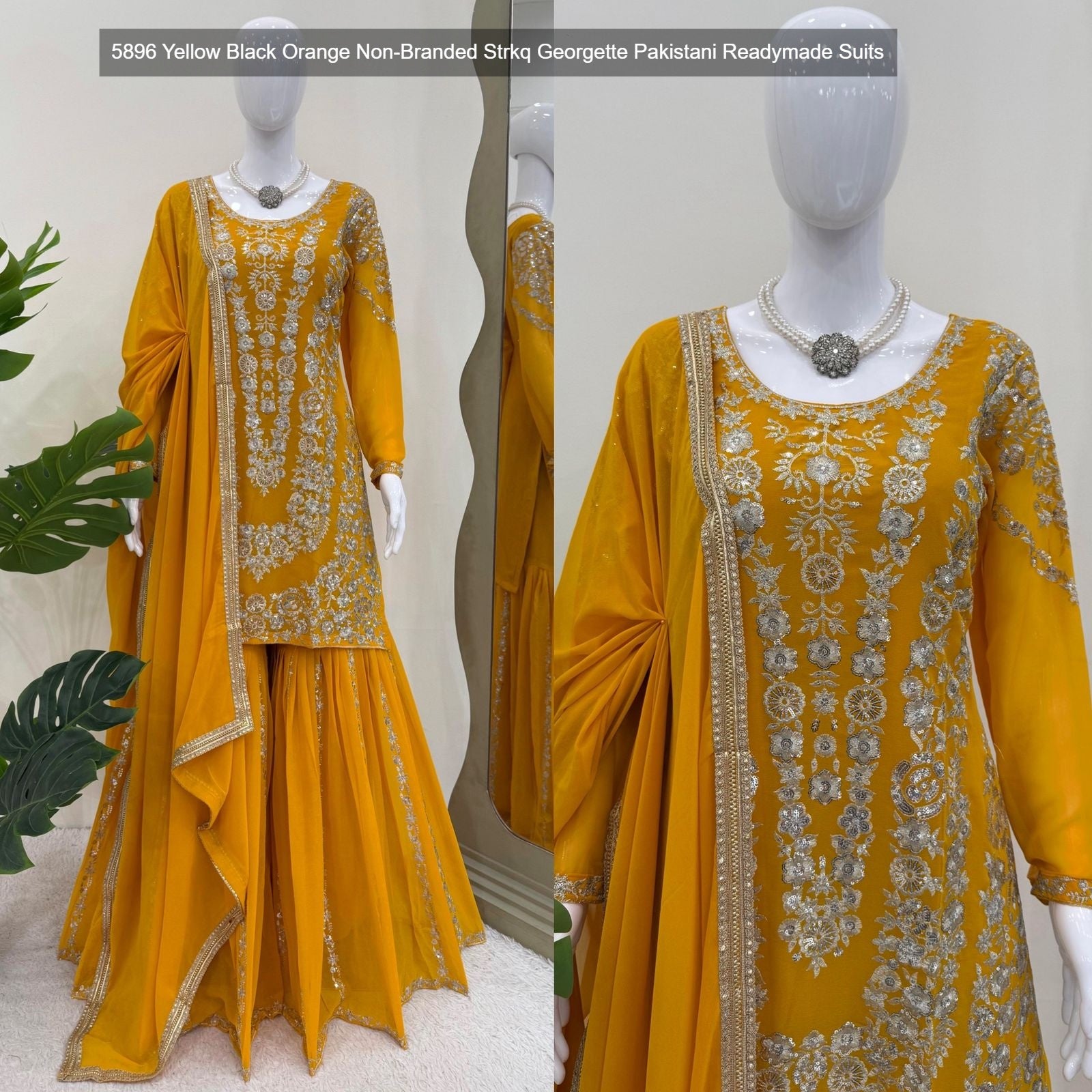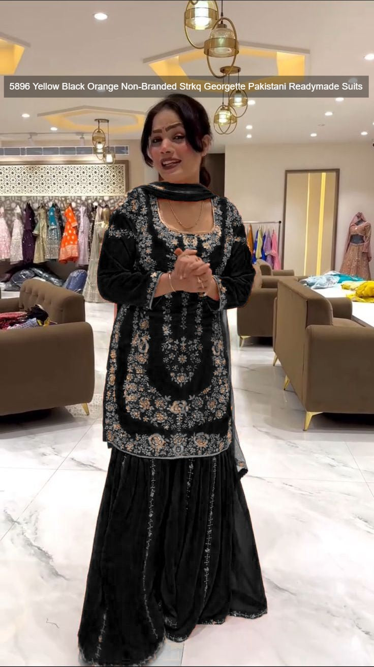 5896 Yellow Black Orange Non-Branded Strkq Georgette Pakistani Readymade Suits
