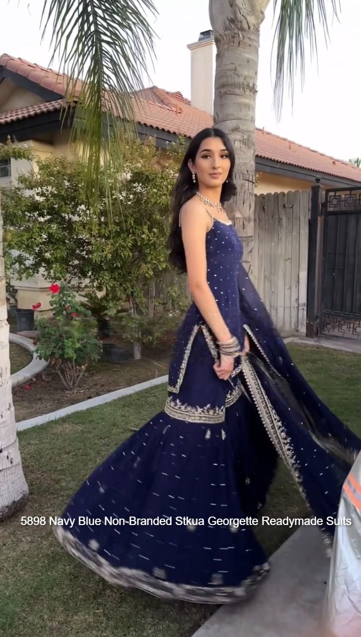 - 5898 Navy Blue Non-Branded Stkua Georgette Readymade Suits Dealer Ahmedabad Surat Wholesale Gujarat India Lowest Price Best Quality Buy Purchase Shipping Kurta Salwaar Kameez Also free Cash on delivery