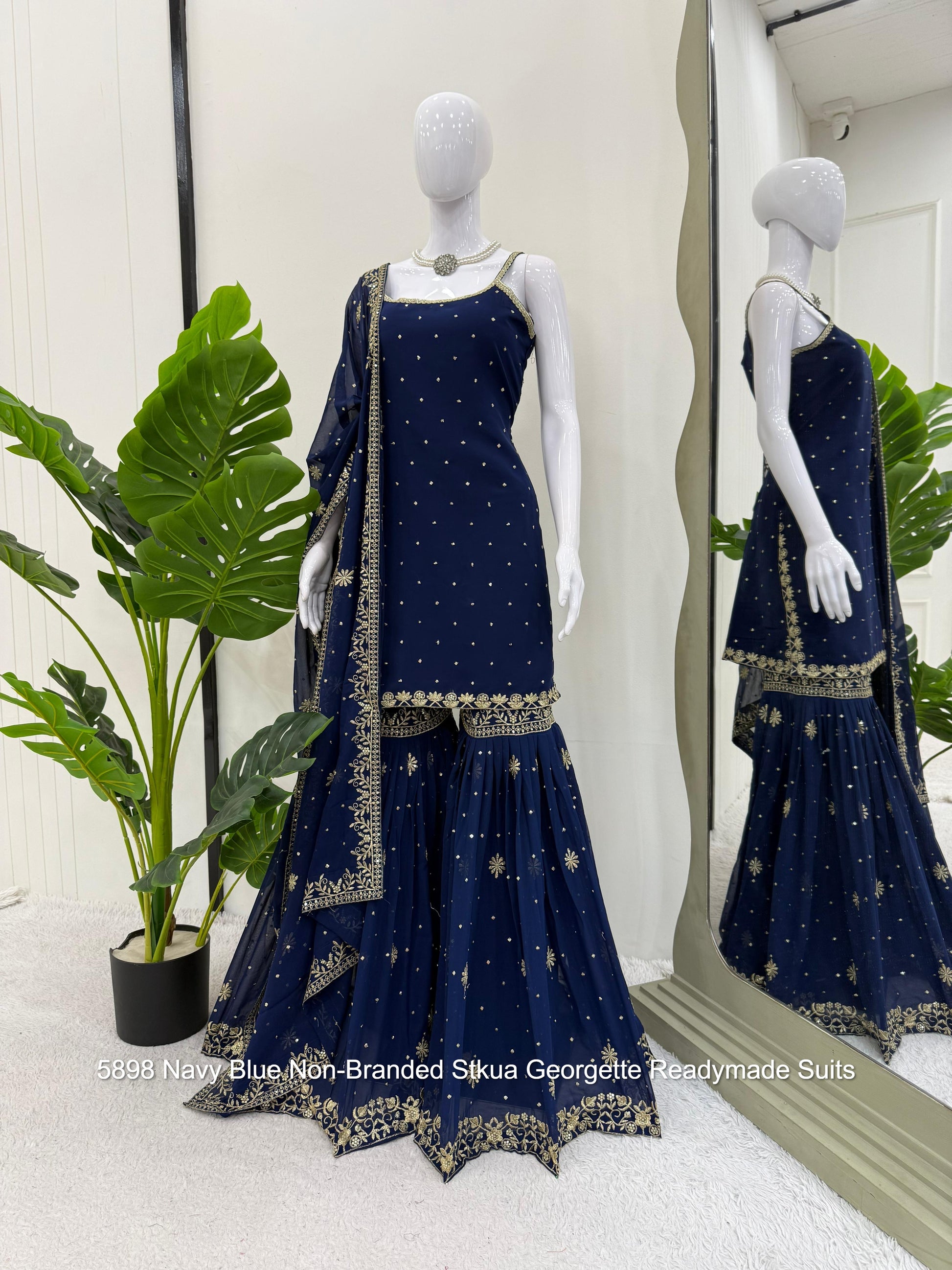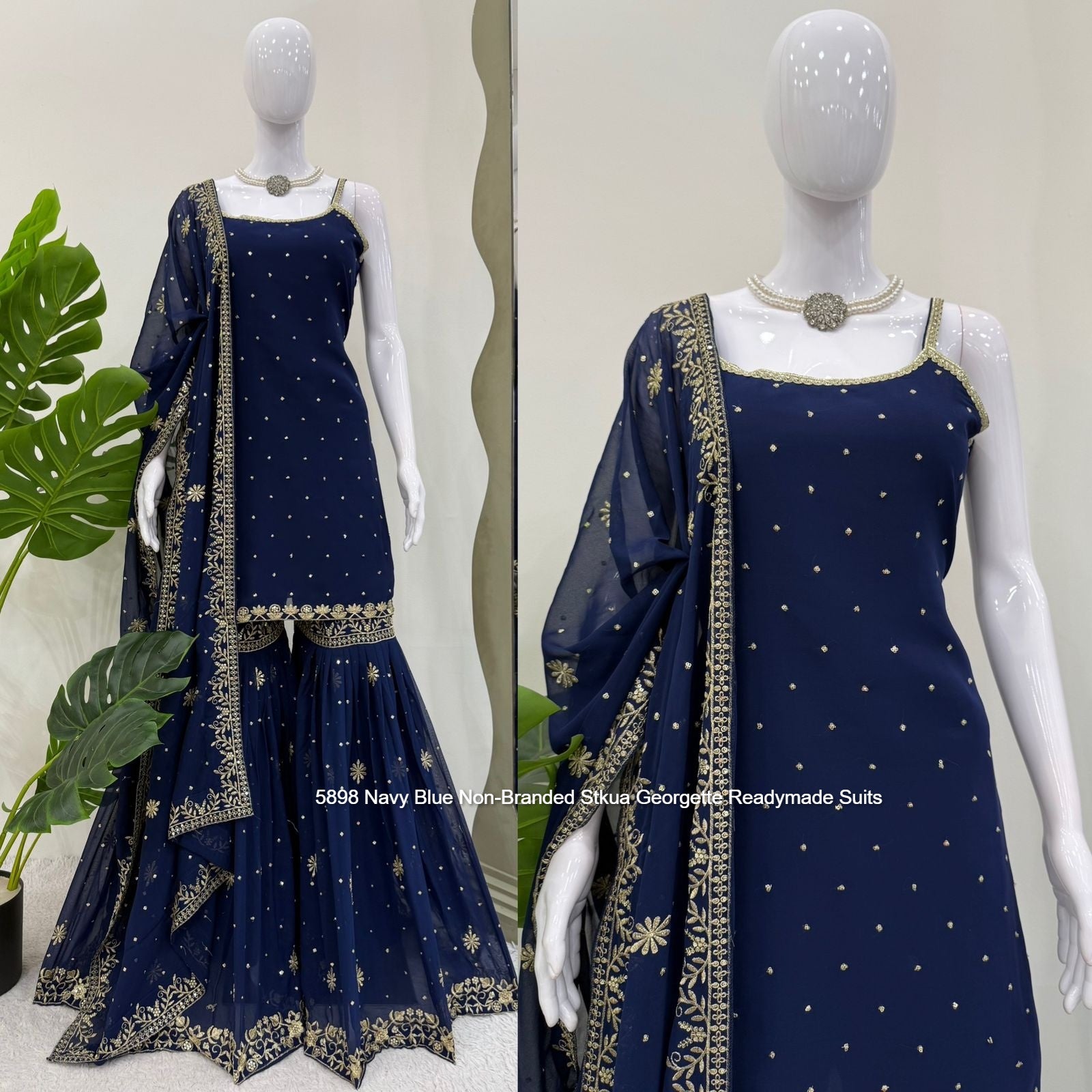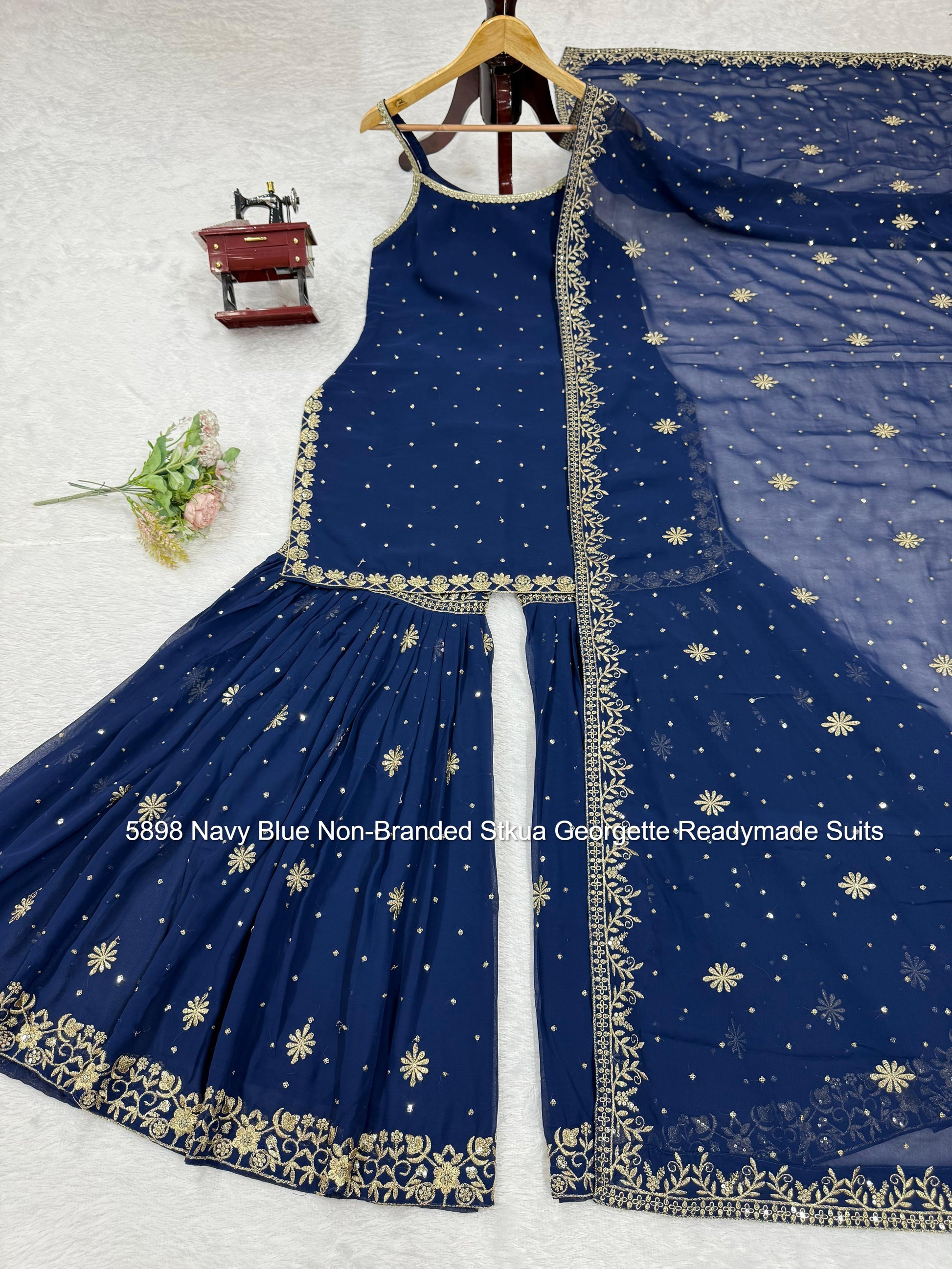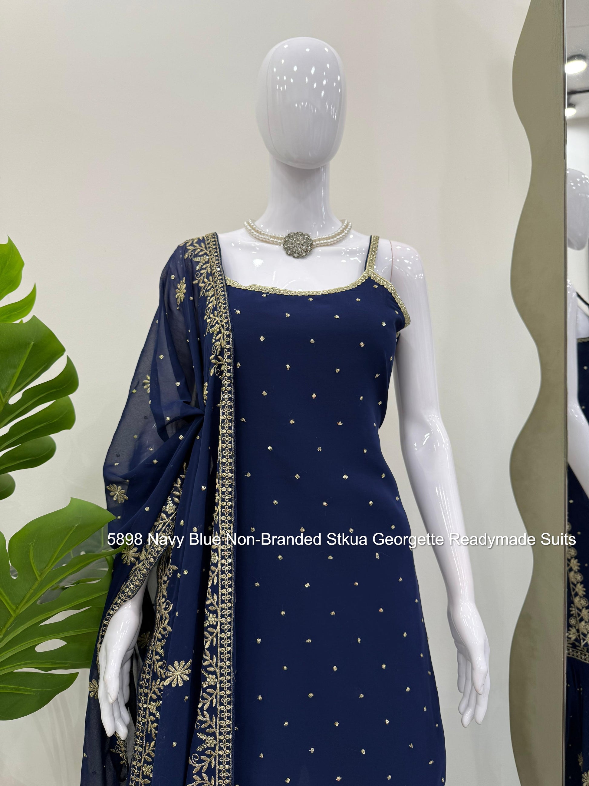 5898 Navy Blue Non-Branded Stkua Georgette Readymade Suits