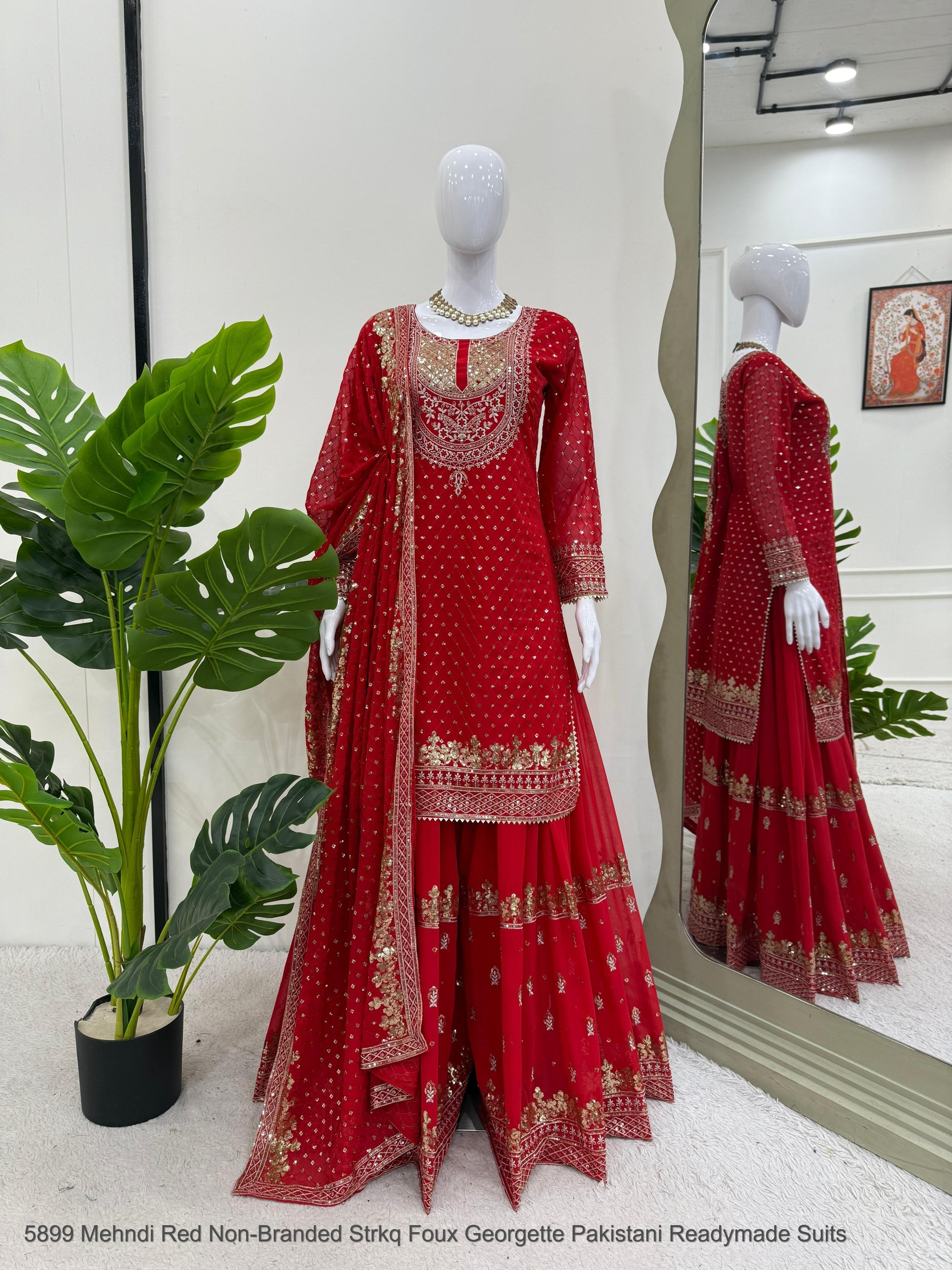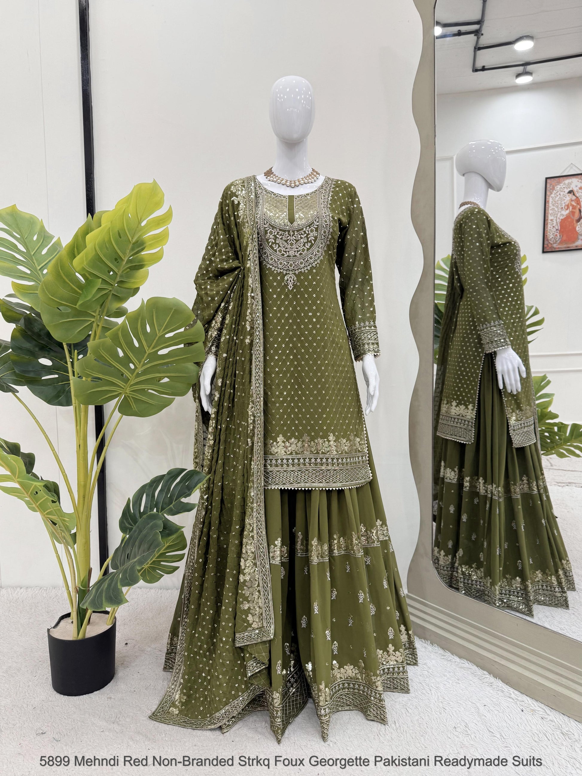5899 Mehndi Red Non-Branded Strkq Foux Georgette Pakistani Readymade Suits