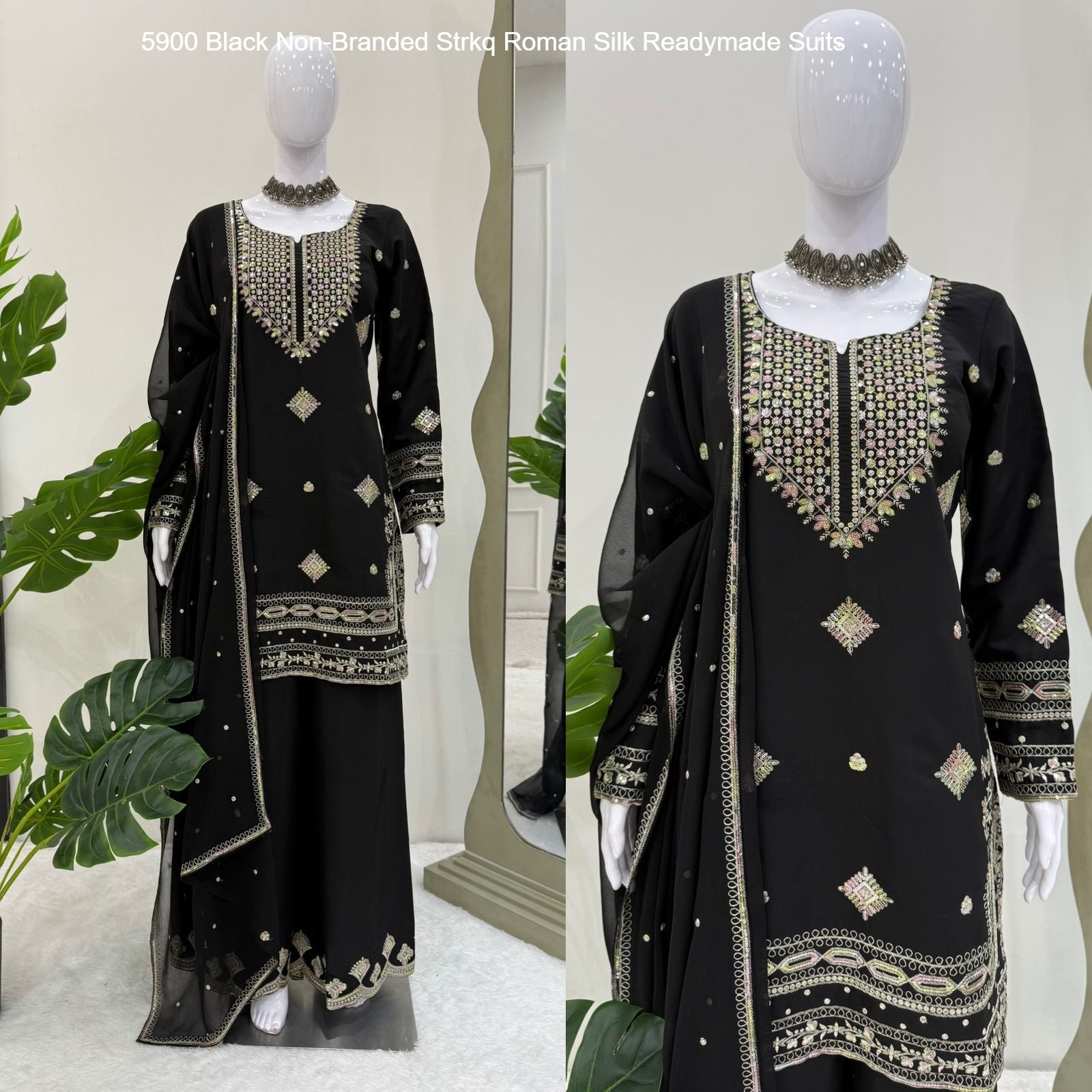 5900 Black Non-Branded Strkq Roman Silk Readymade Suits